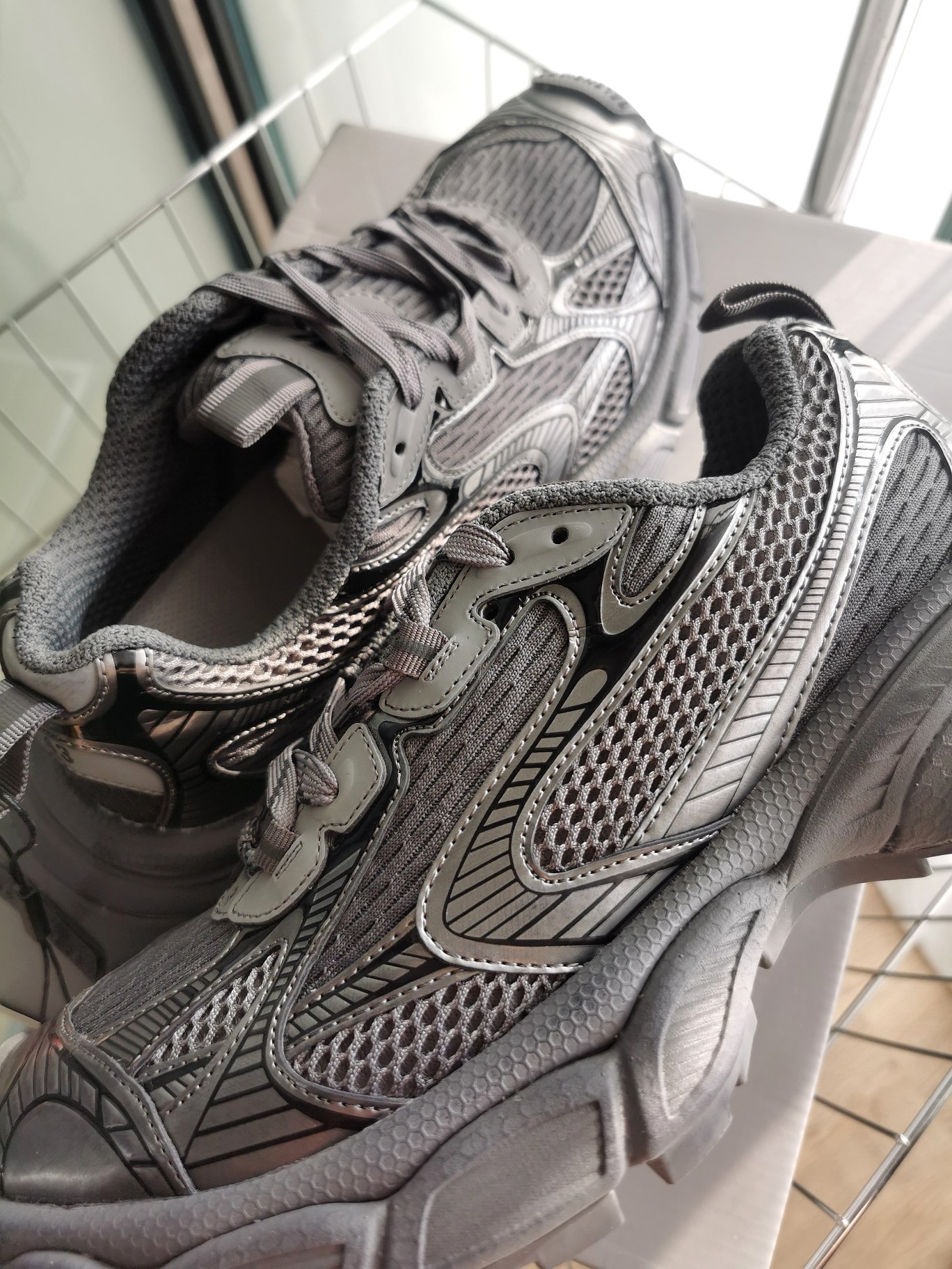 这款鞋子是AAAAA 1:1 质量 (非常棒). 使用了和原版一模一样的材料. 商标部分也保持了和巴黎世家/Balenciaga一样. 图片拍摄是实物鞋子拍摄, 您所收到的实物保证和我们图片一模一样.