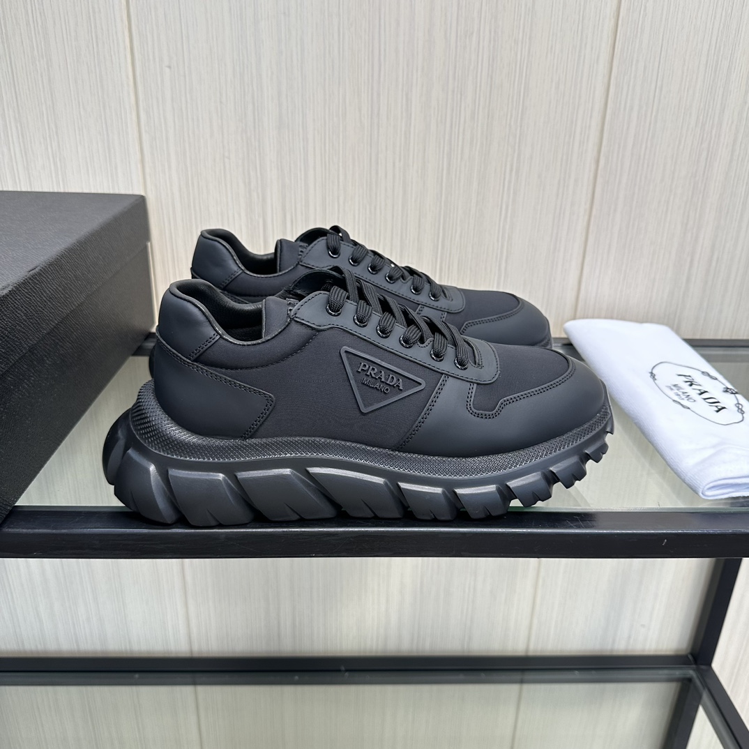 这款鞋子是AAAAA 1:1 质量 (非常棒). 使用了和原版一模一样的材料. 商标部分也保持了和普拉达/Prada一样. 图片拍摄是实物鞋子拍摄, 您所收到的实物保证和我们图片一模一样.