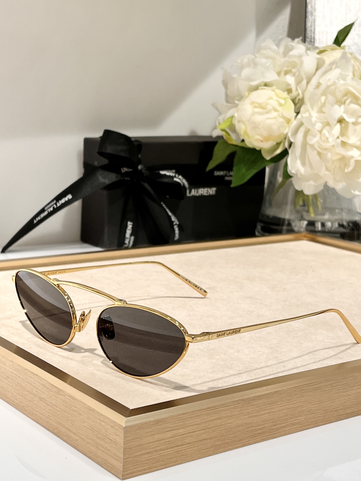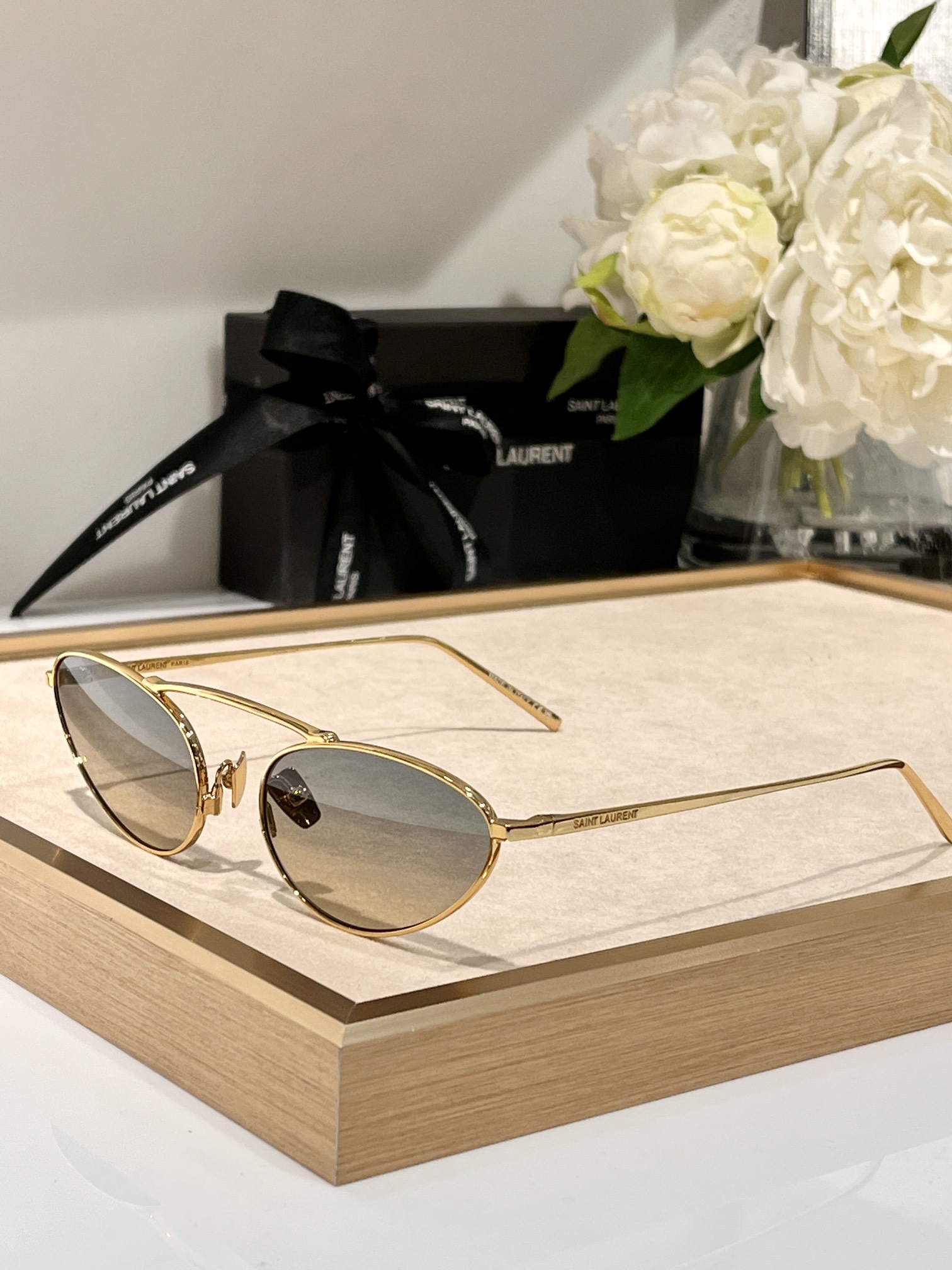 这款太阳眼镜是AAAAA 1:1 质量 (非常棒). 使用了和原版一模一样的材料. 商标部分也保持了和圣罗兰/Saint Laurent一样. 图片拍摄是实物太阳眼镜拍摄, 您所收到的实物保证和我们图片一模一样.