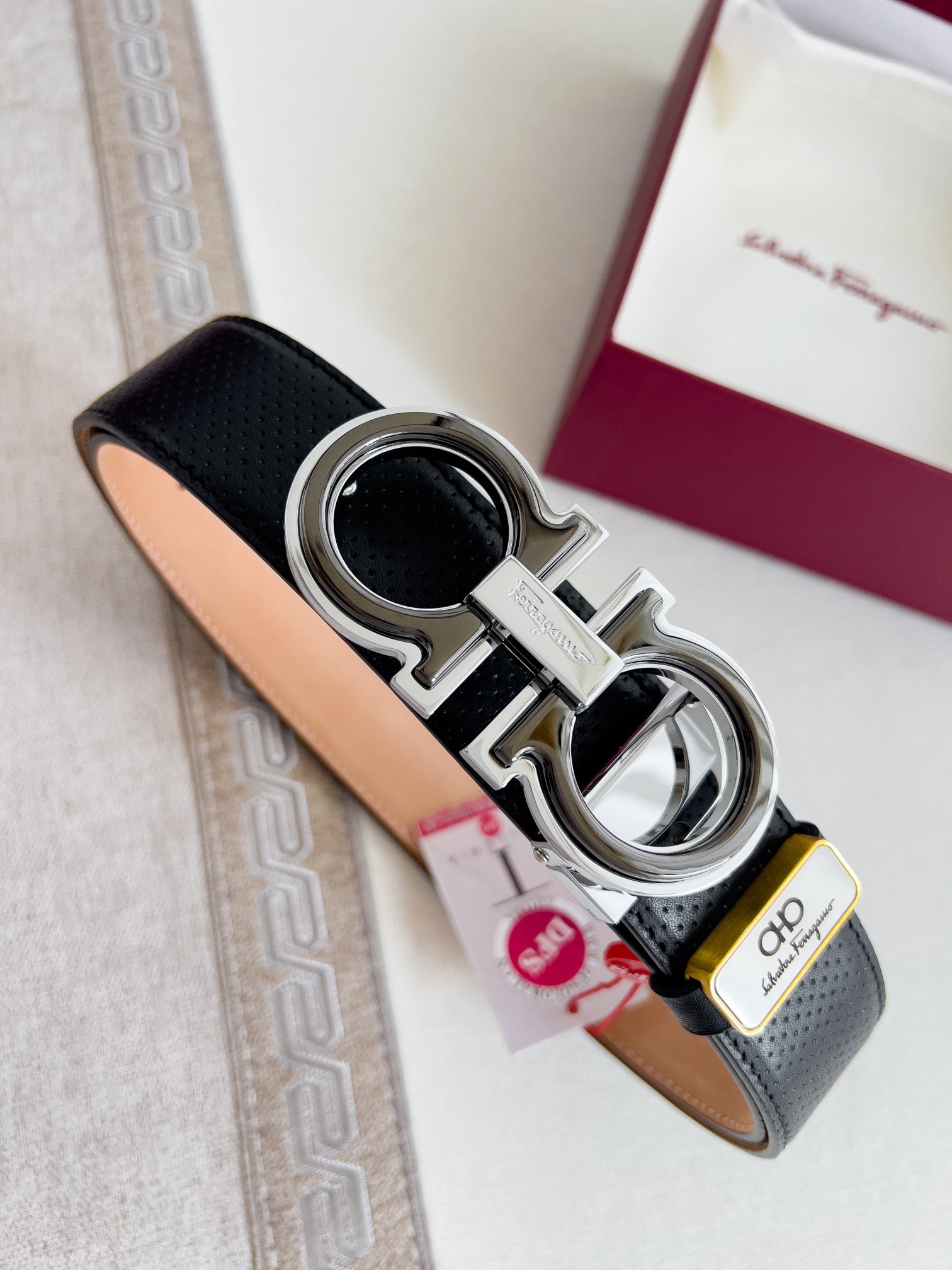 这款皮带是AAAAA 1:1 质量 (非常棒). 使用了和原版一模一样的材料. 商标部分也保持了和菲拉格慕/Salvatore Ferragamo一样. 图片拍摄是实物皮带拍摄, 您所收到的实物保证和我们图片一模一样.