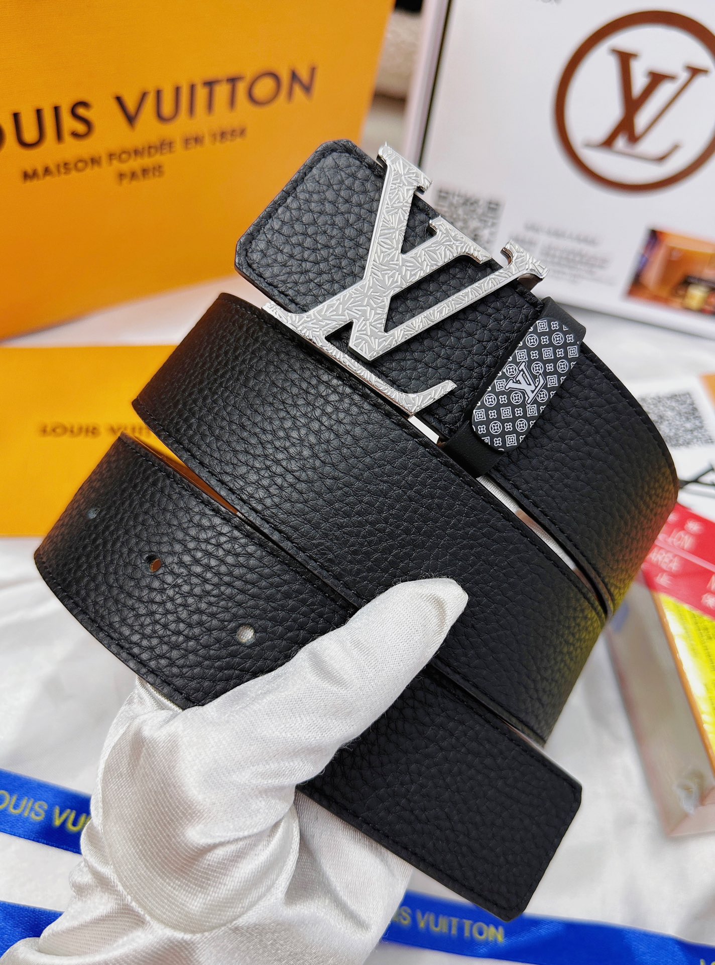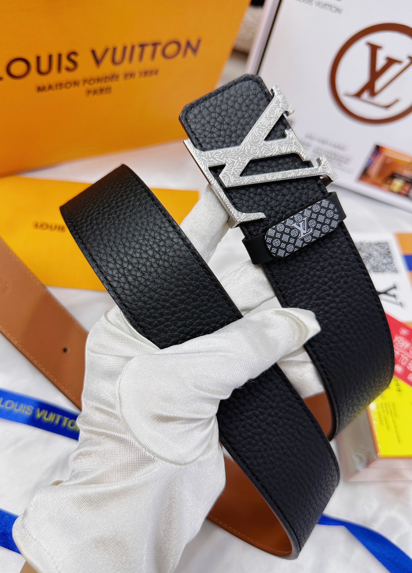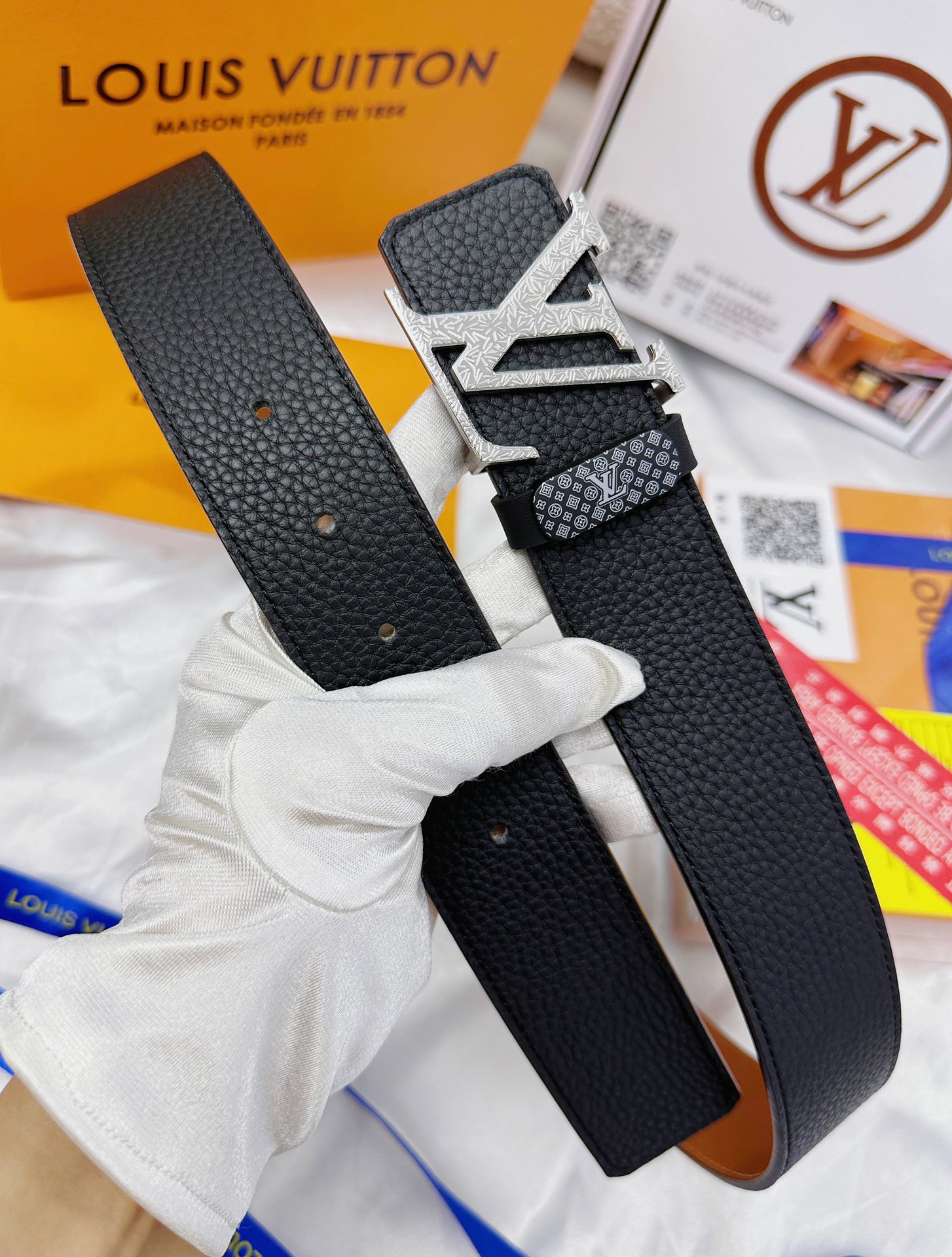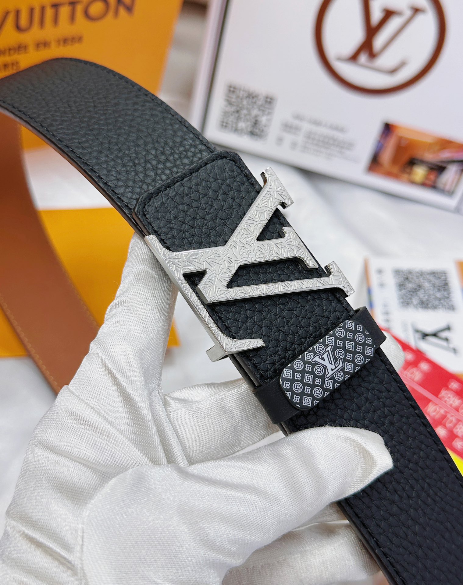 这款皮带是AAAAA 1:1 质量 (非常棒). 使用了和原版一模一样的材料. 商标部分也保持了和路易威登/Louis Vuitton一样. 图片拍摄是实物皮带拍摄, 您所收到的实物保证和我们图片一模一样.