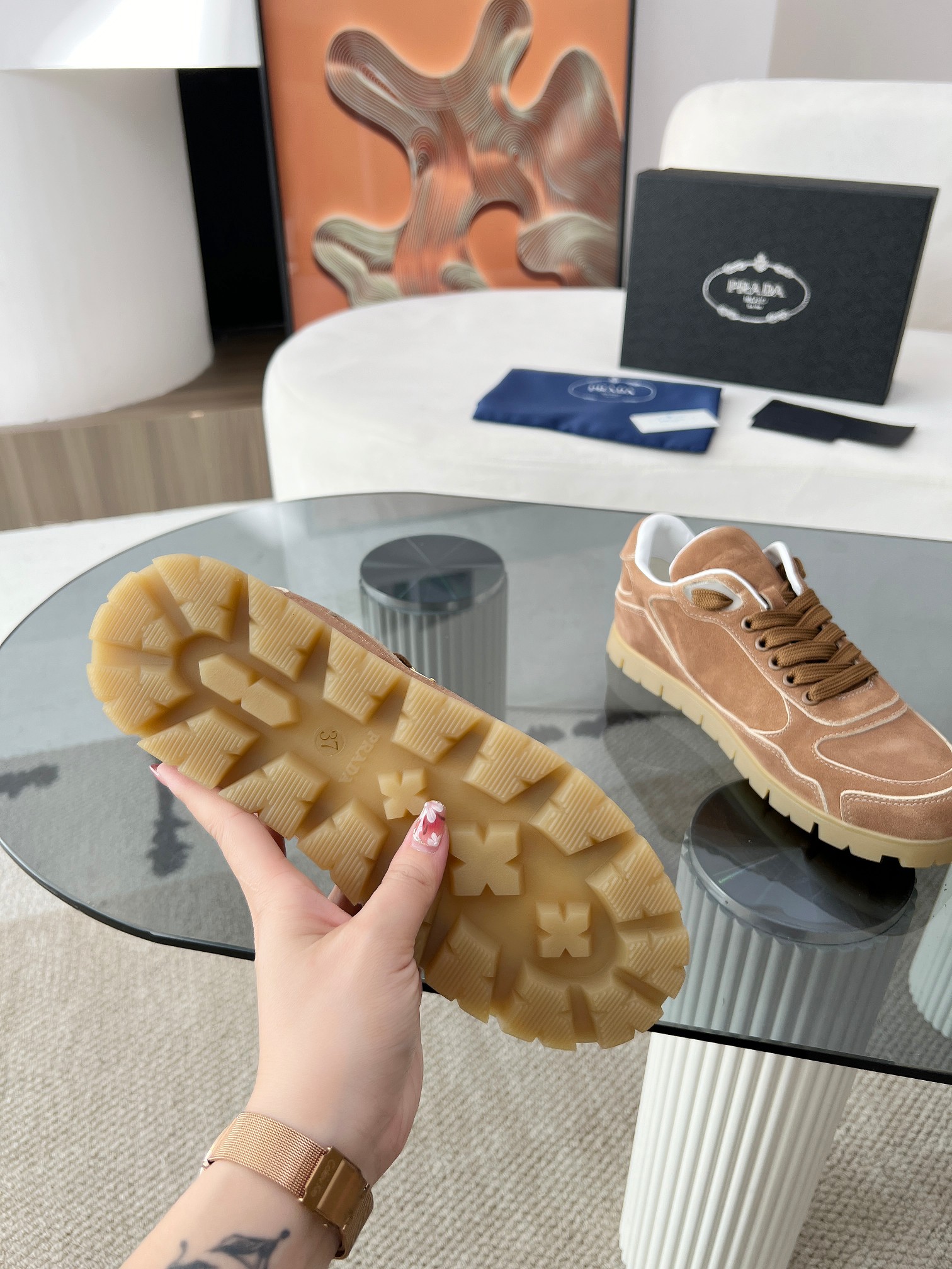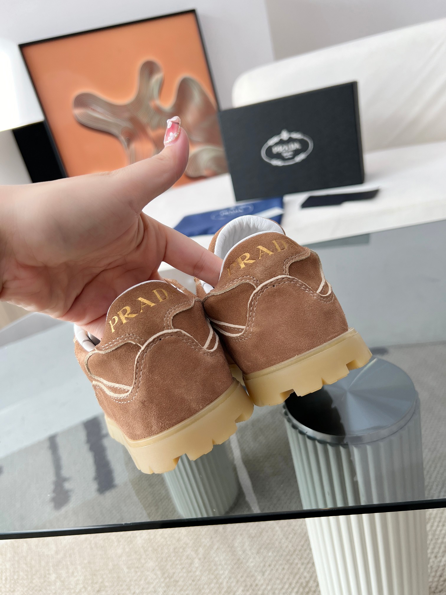 这款鞋子是AAAAA 1:1 质量 (非常棒). 使用了和原版一模一样的材料. 商标部分也保持了和普拉达/Prada一样. 图片拍摄是实物鞋子拍摄, 您所收到的实物保证和我们图片一模一样.