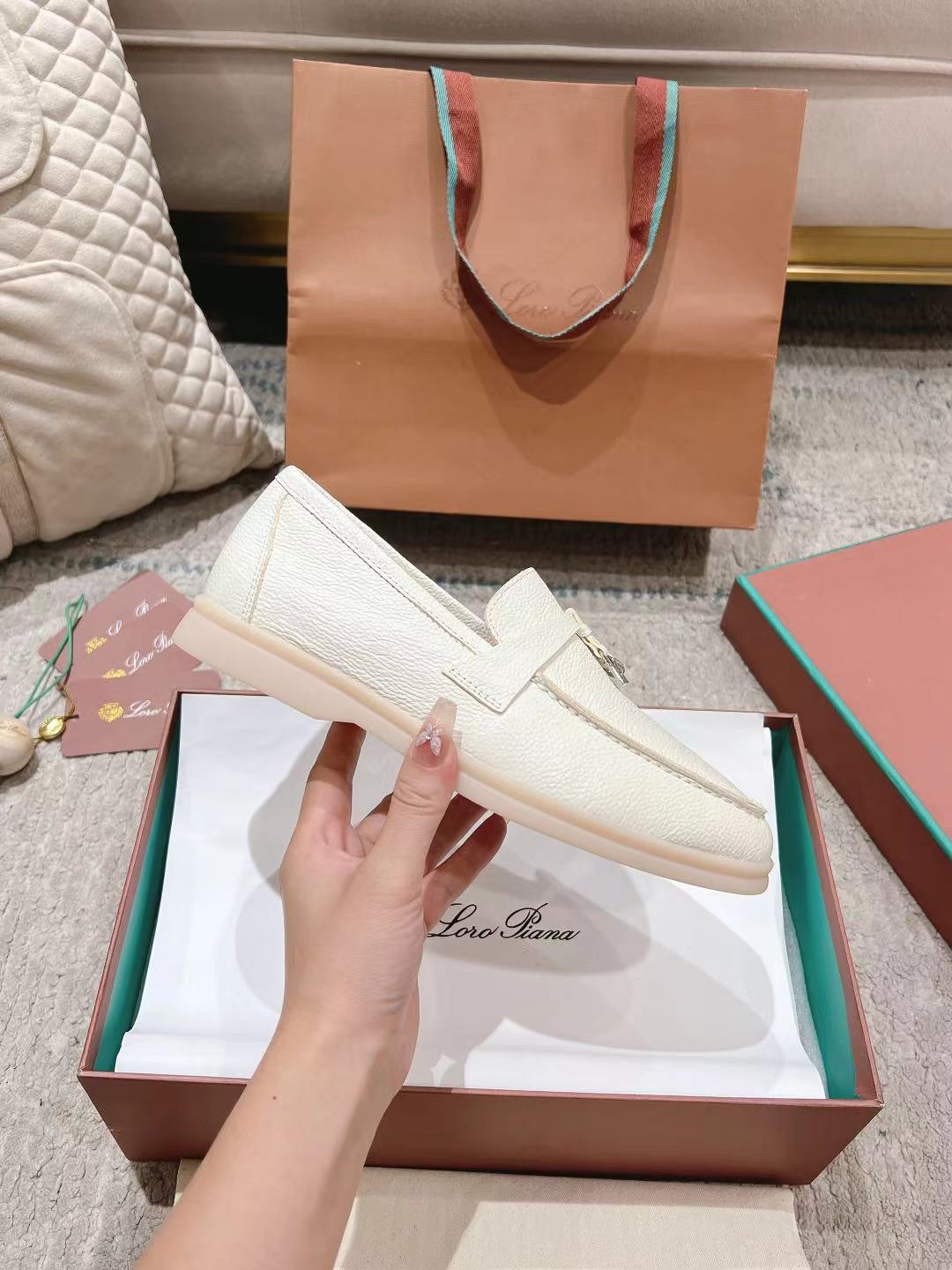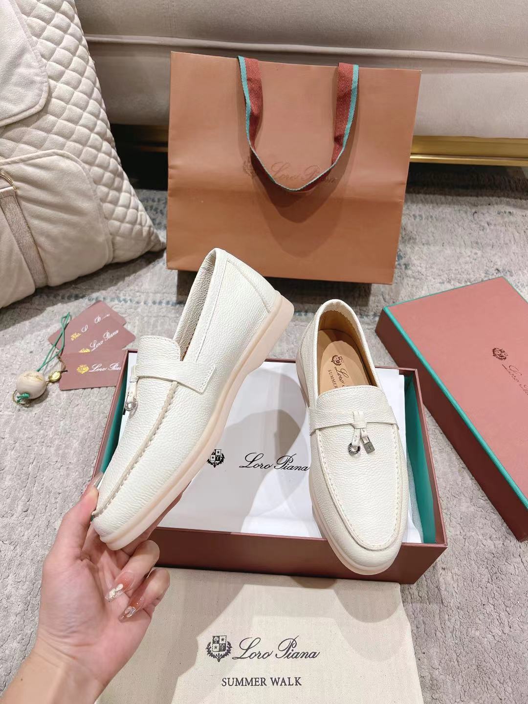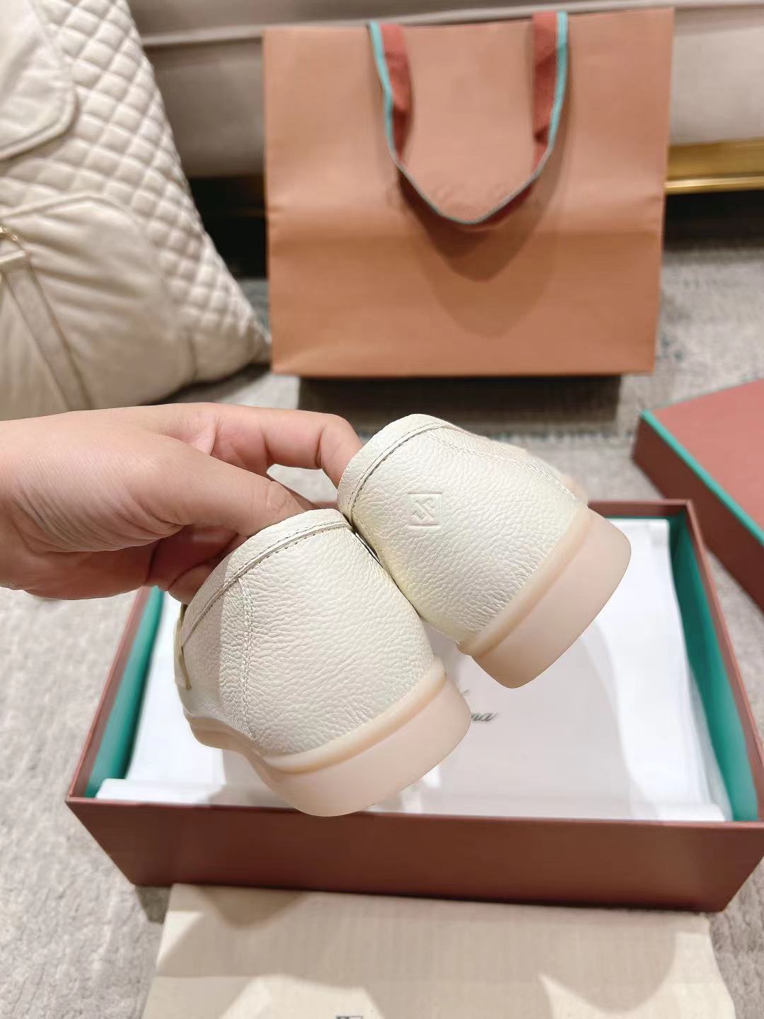 这款鞋子是AAAAA 1:1 质量 (非常棒). 使用了和原版一模一样的材料. 商标部分也保持了和洛罗皮亚纳/Loro Piana一样. 图片拍摄是实物鞋子拍摄, 您所收到的实物保证和我们图片一模一样.