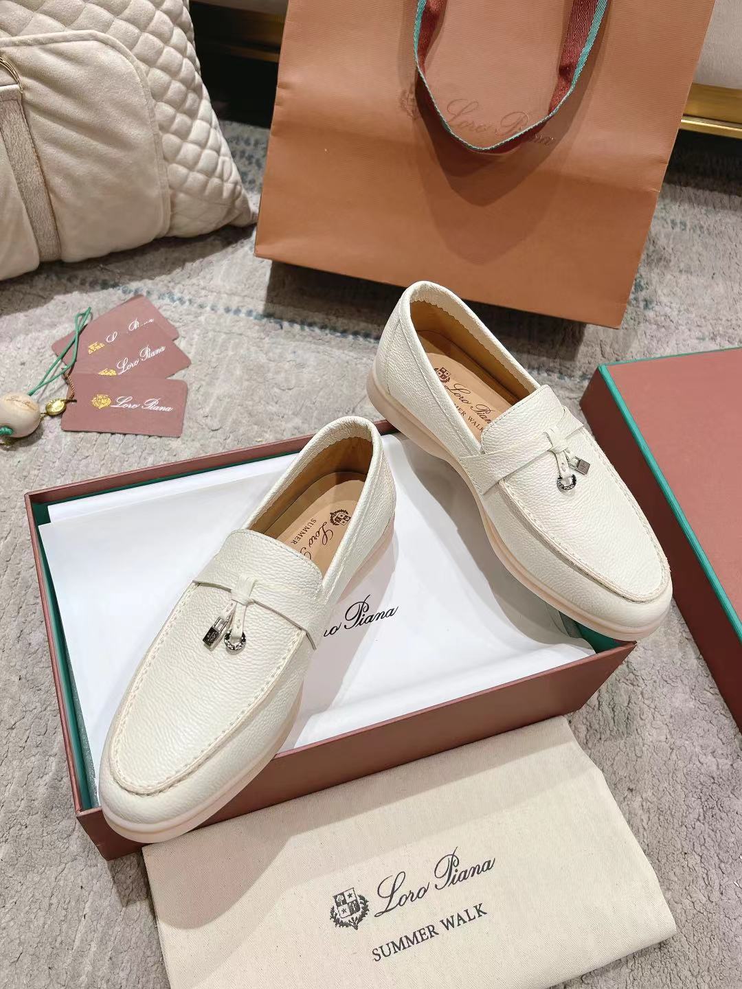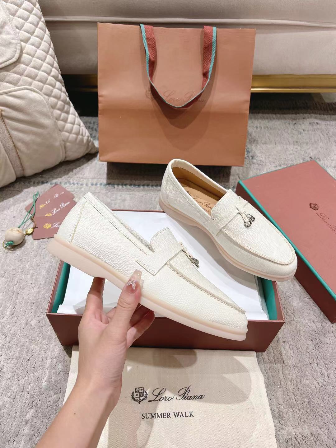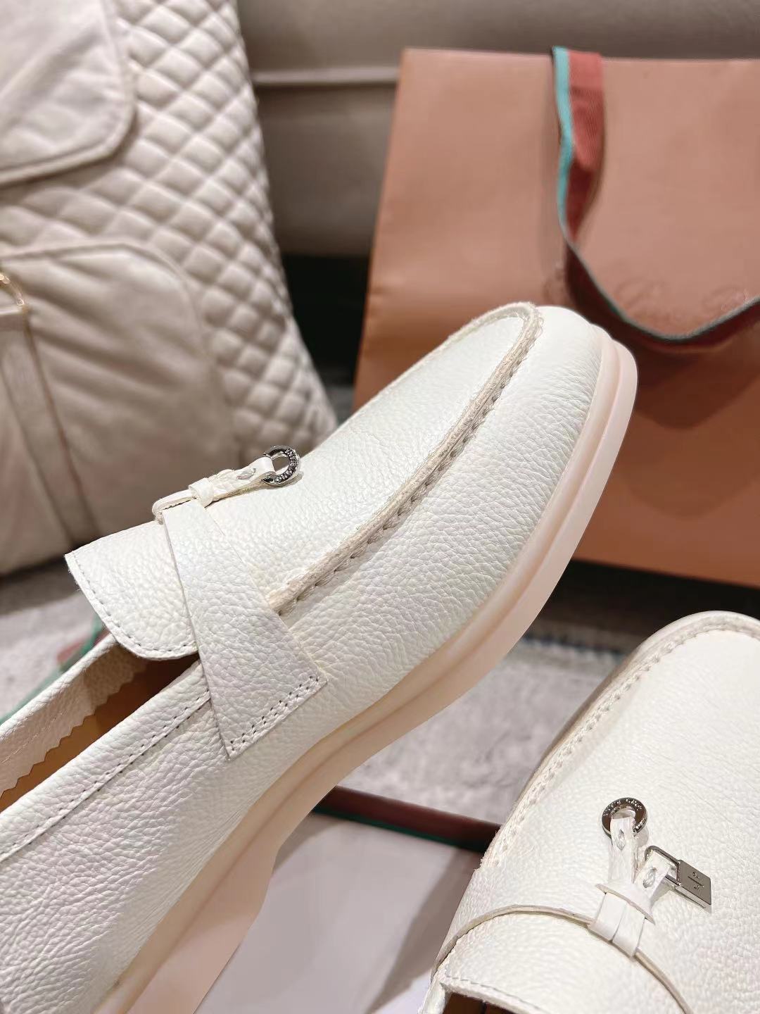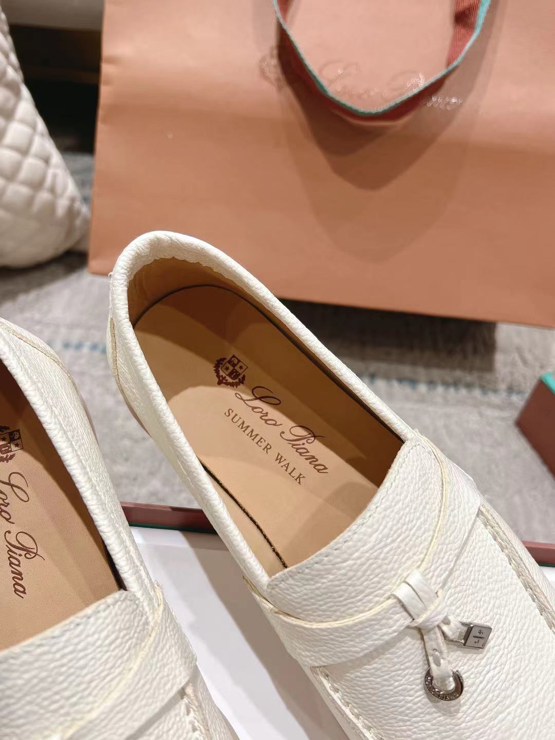 这款鞋子是AAAAA 1:1 质量 (非常棒). 使用了和原版一模一样的材料. 商标部分也保持了和洛罗皮亚纳/Loro Piana一样. 图片拍摄是实物鞋子拍摄, 您所收到的实物保证和我们图片一模一样.
