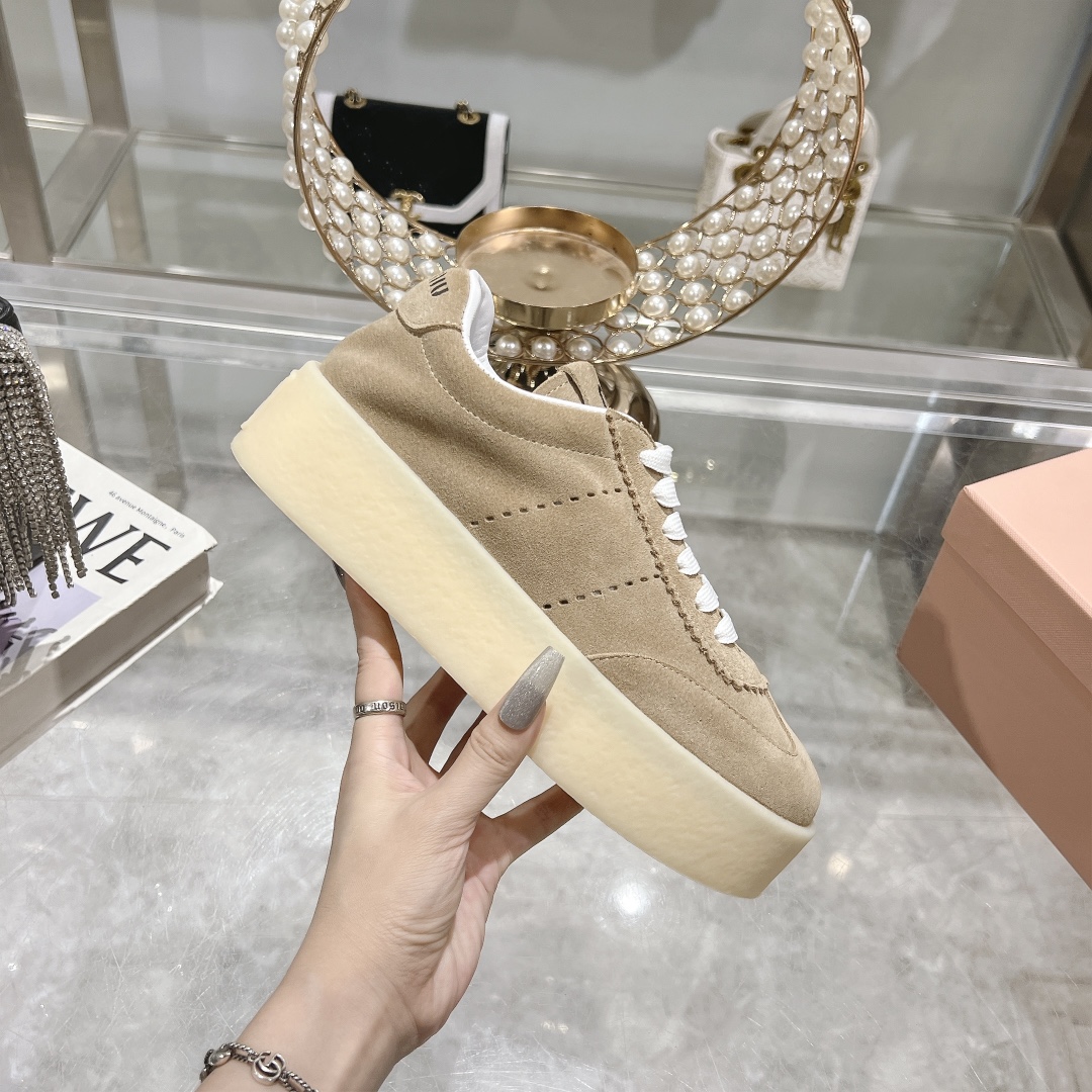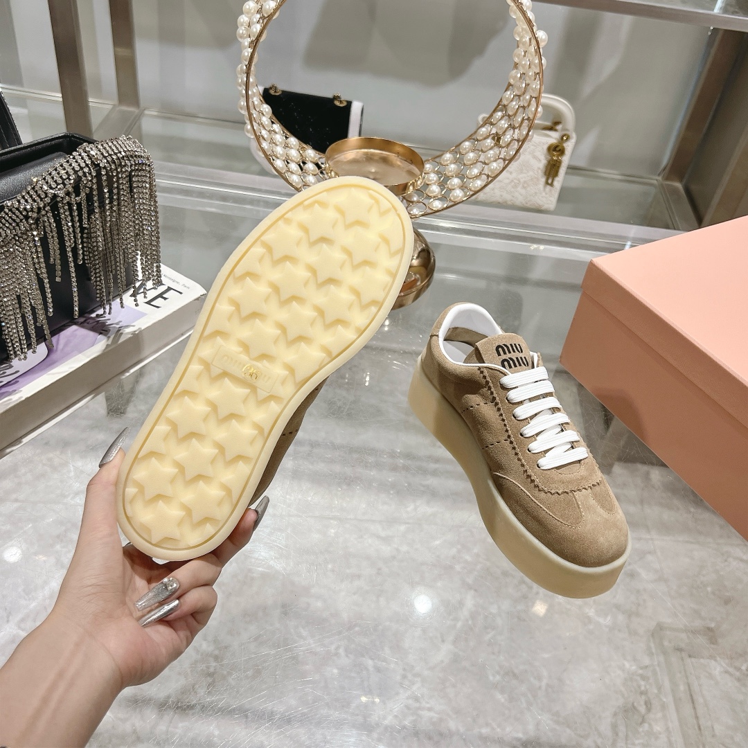 这款鞋子是AAAAA 1:1 质量 (非常棒). 使用了和原版一模一样的材料. 商标部分也保持了和缪缪/Miu Miu一样. 图片拍摄是实物鞋子拍摄, 您所收到的实物保证和我们图片一模一样.