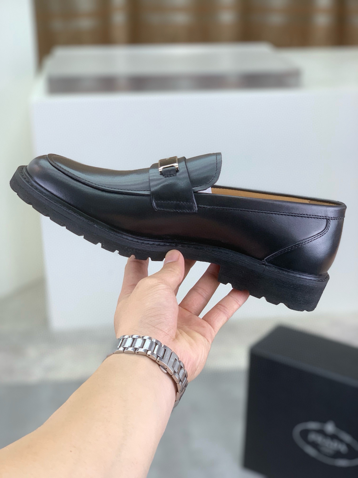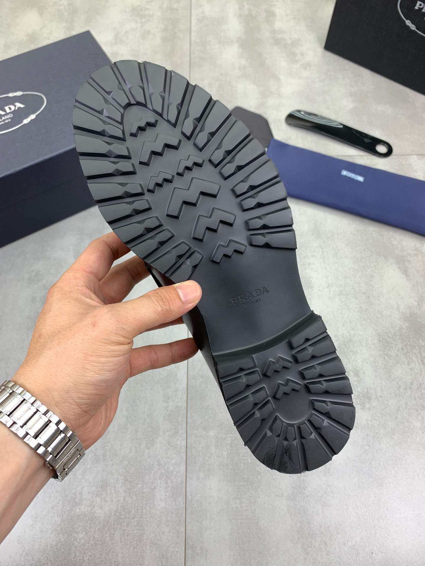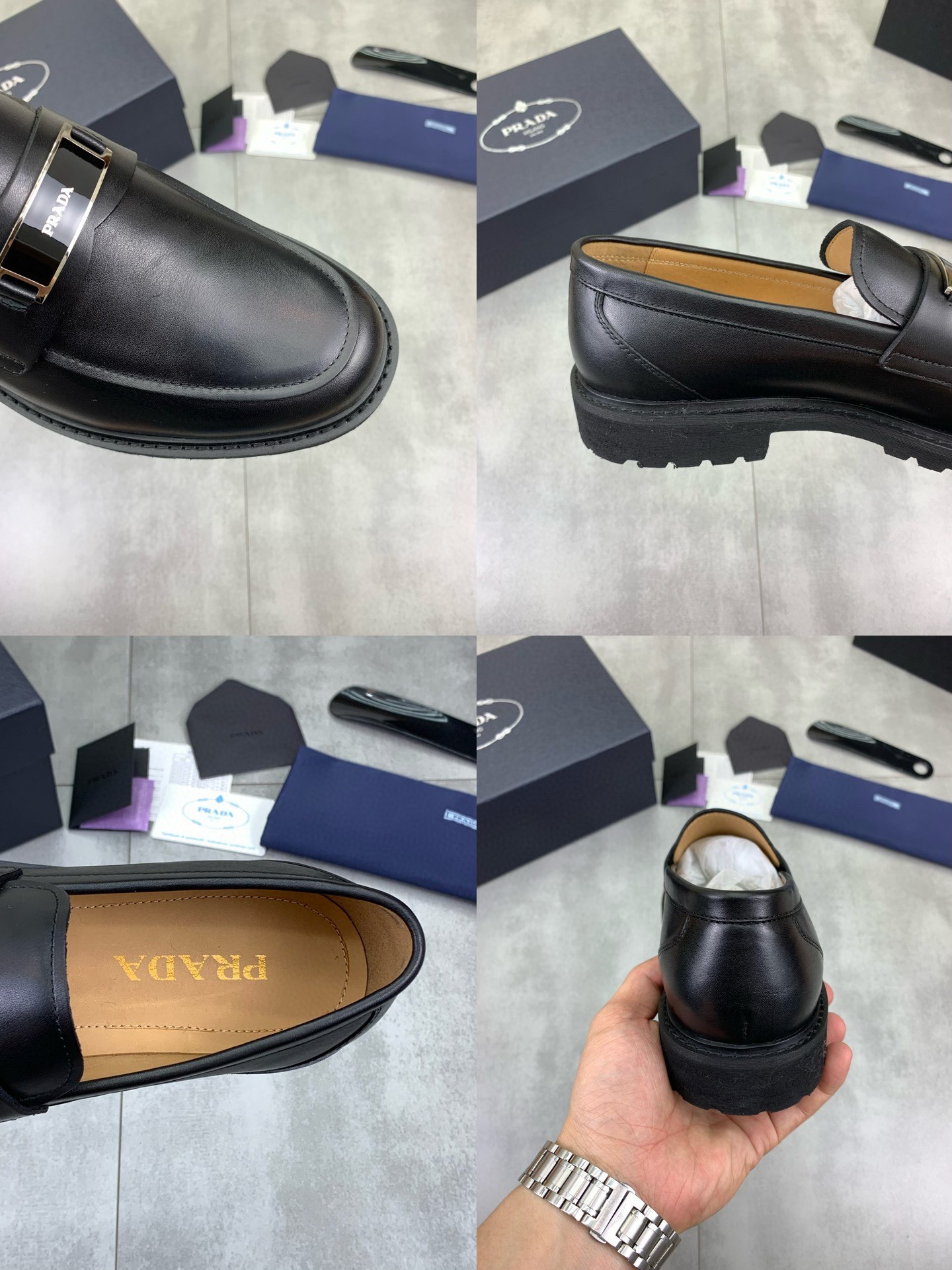 这款鞋子是AAAAA 1:1 质量 (非常棒). 使用了和原版一模一样的材料. 商标部分也保持了和普拉达/Prada一样. 图片拍摄是实物鞋子拍摄, 您所收到的实物保证和我们图片一模一样.