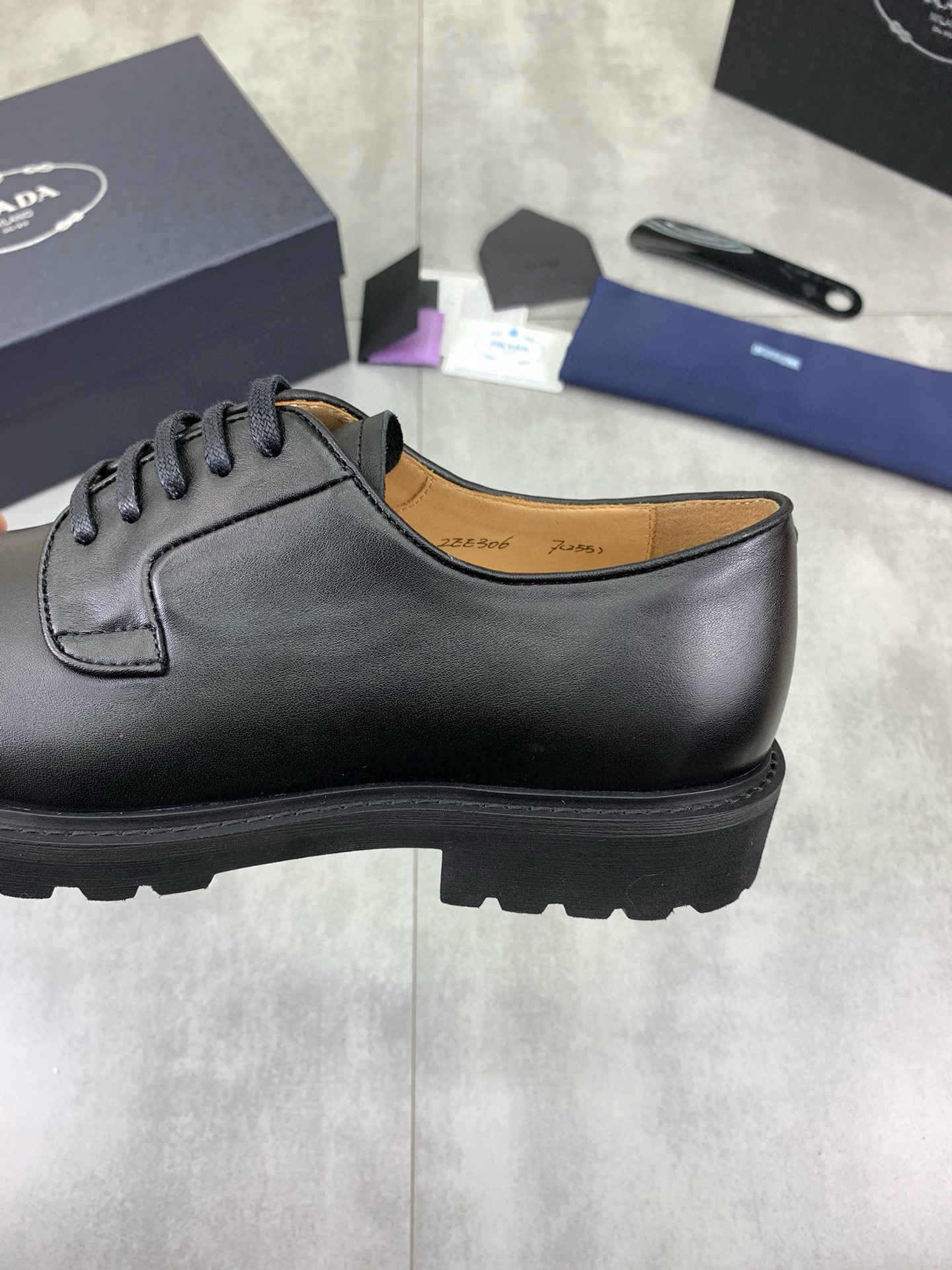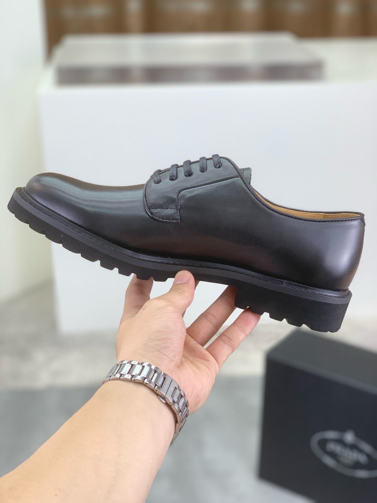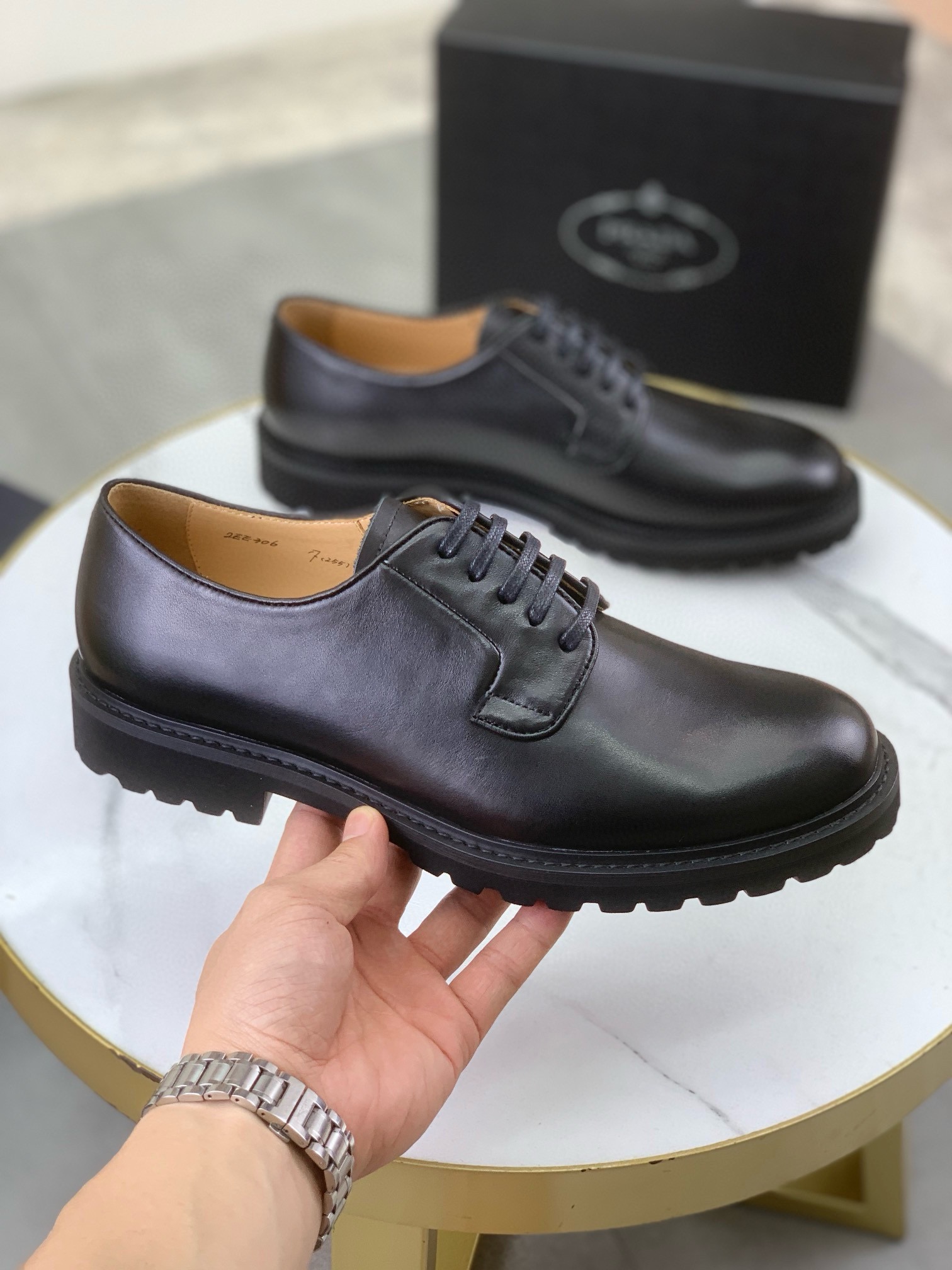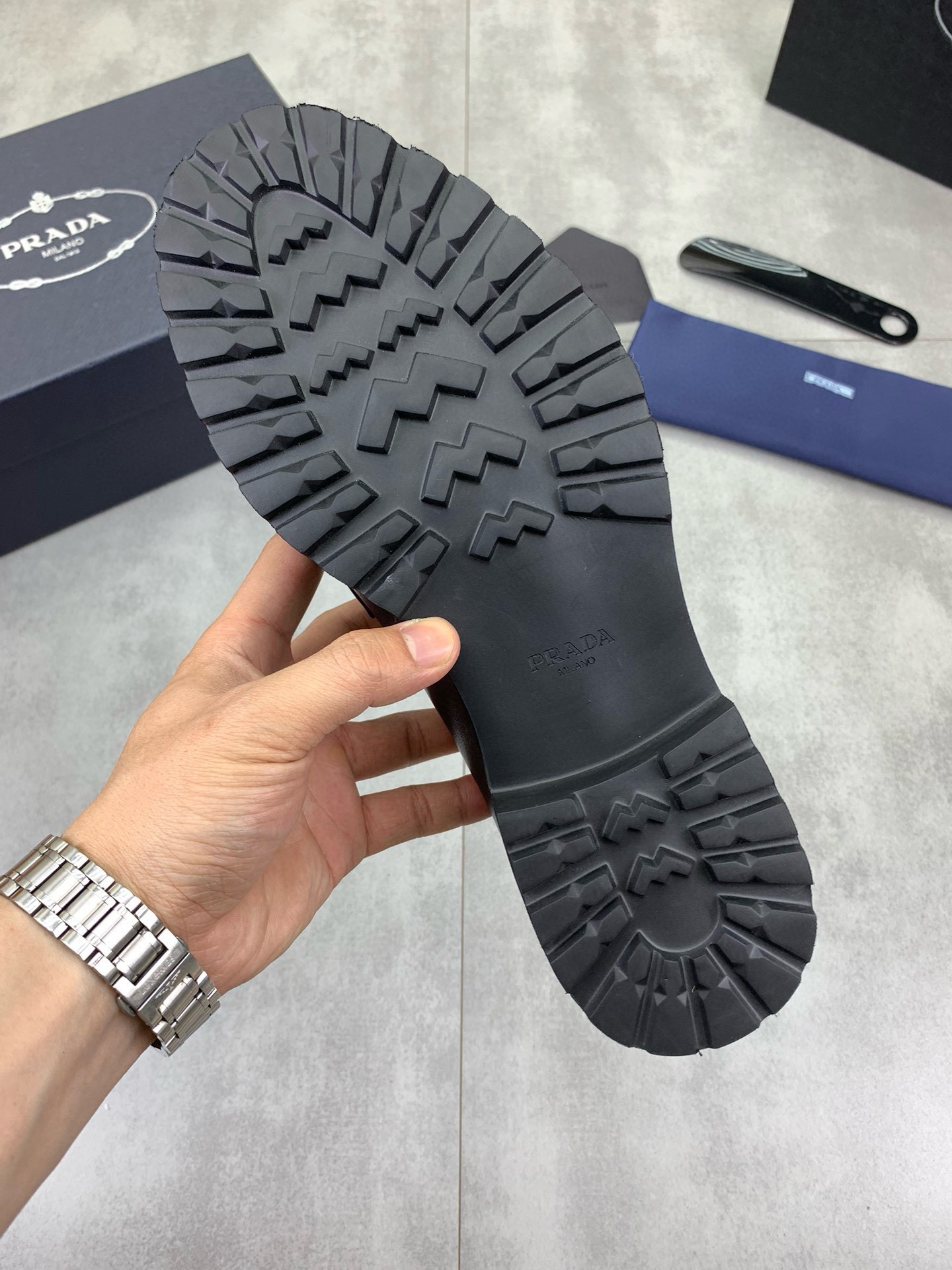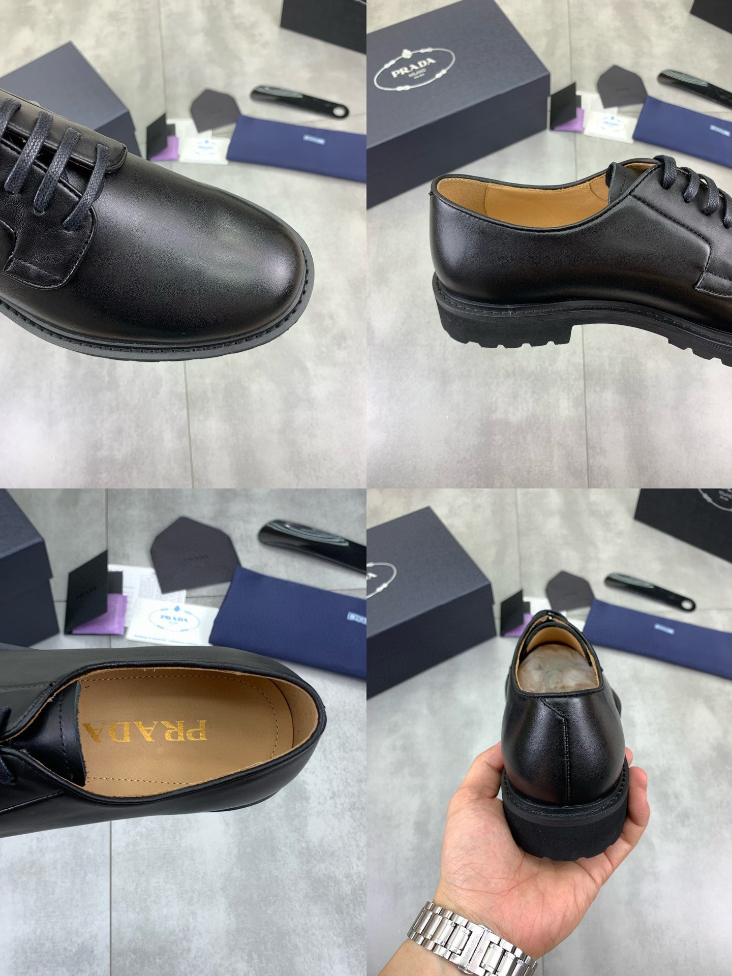 这款鞋子是AAAAA 1:1 质量 (非常棒). 使用了和原版一模一样的材料. 商标部分也保持了和普拉达/Prada一样. 图片拍摄是实物鞋子拍摄, 您所收到的实物保证和我们图片一模一样.