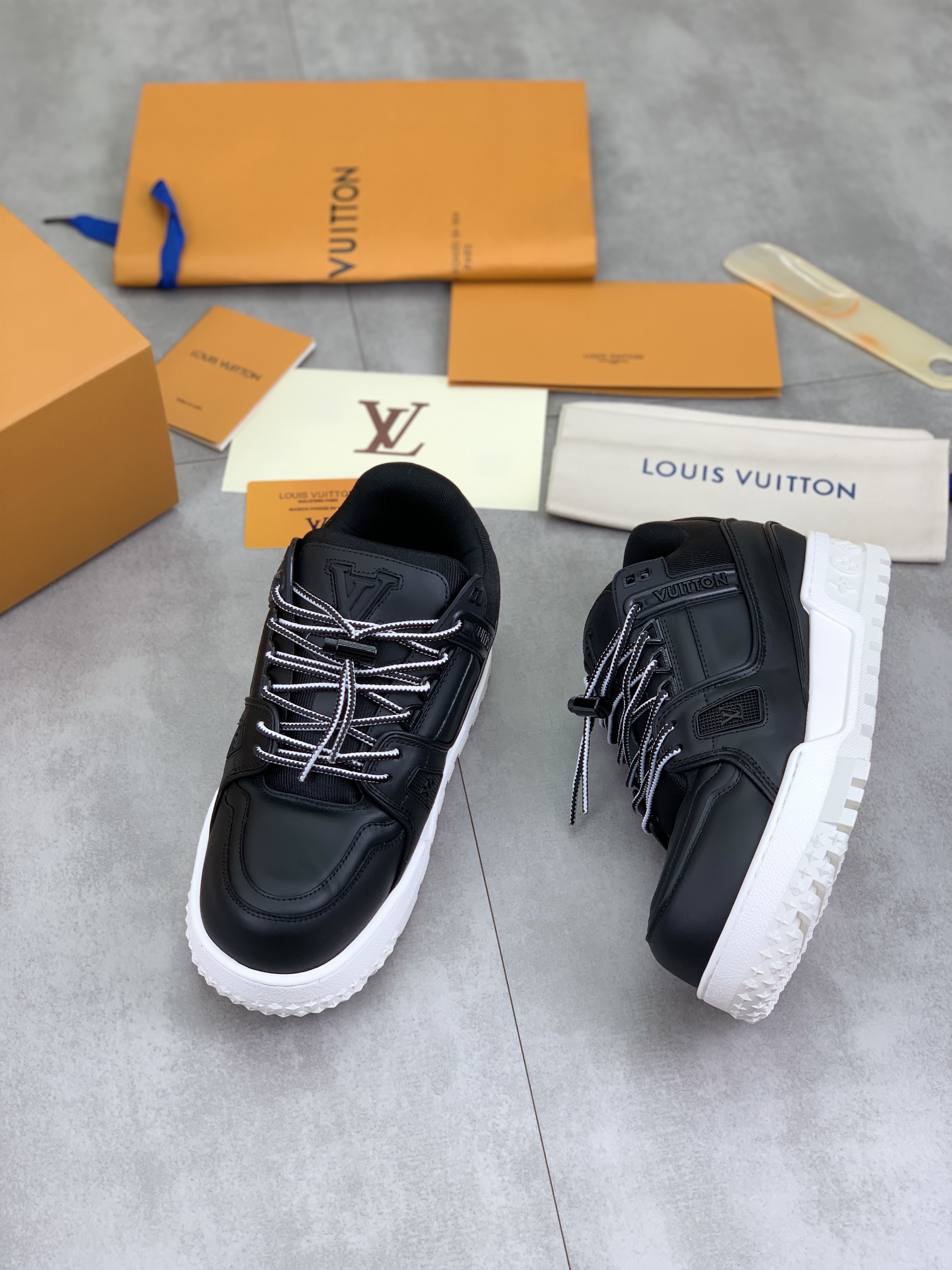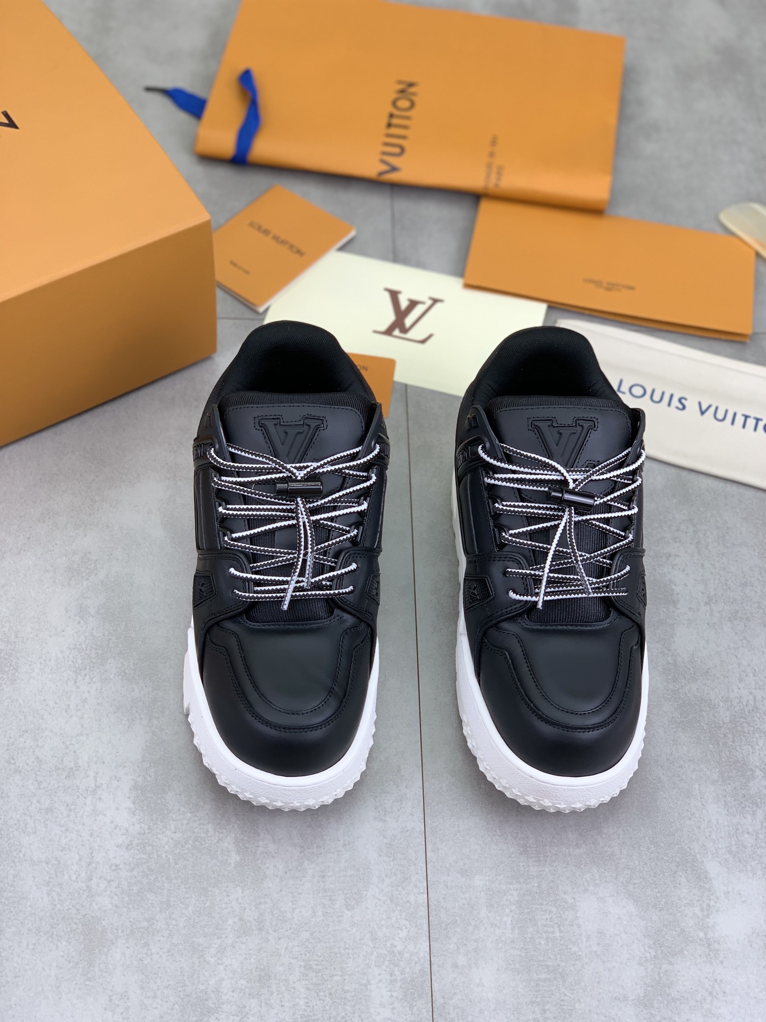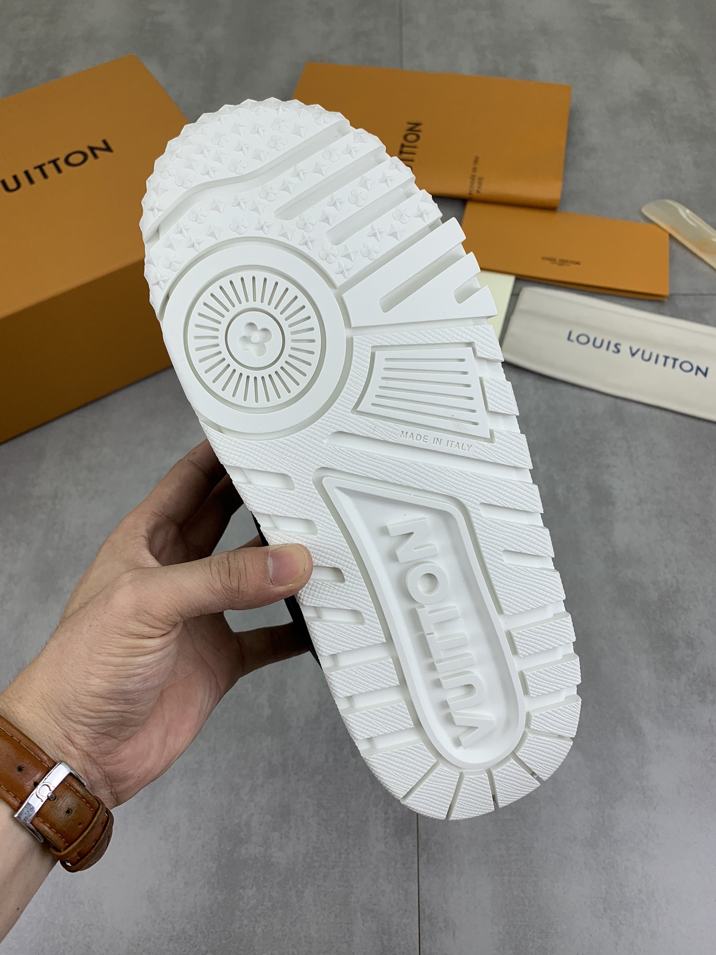 这款鞋子是AAAAA 1:1 质量 (非常棒). 使用了和原版一模一样的材料. 商标部分也保持了和路易威登/Louis Vuitton一样. 图片拍摄是实物鞋子拍摄, 您所收到的实物保证和我们图片一模一样.
