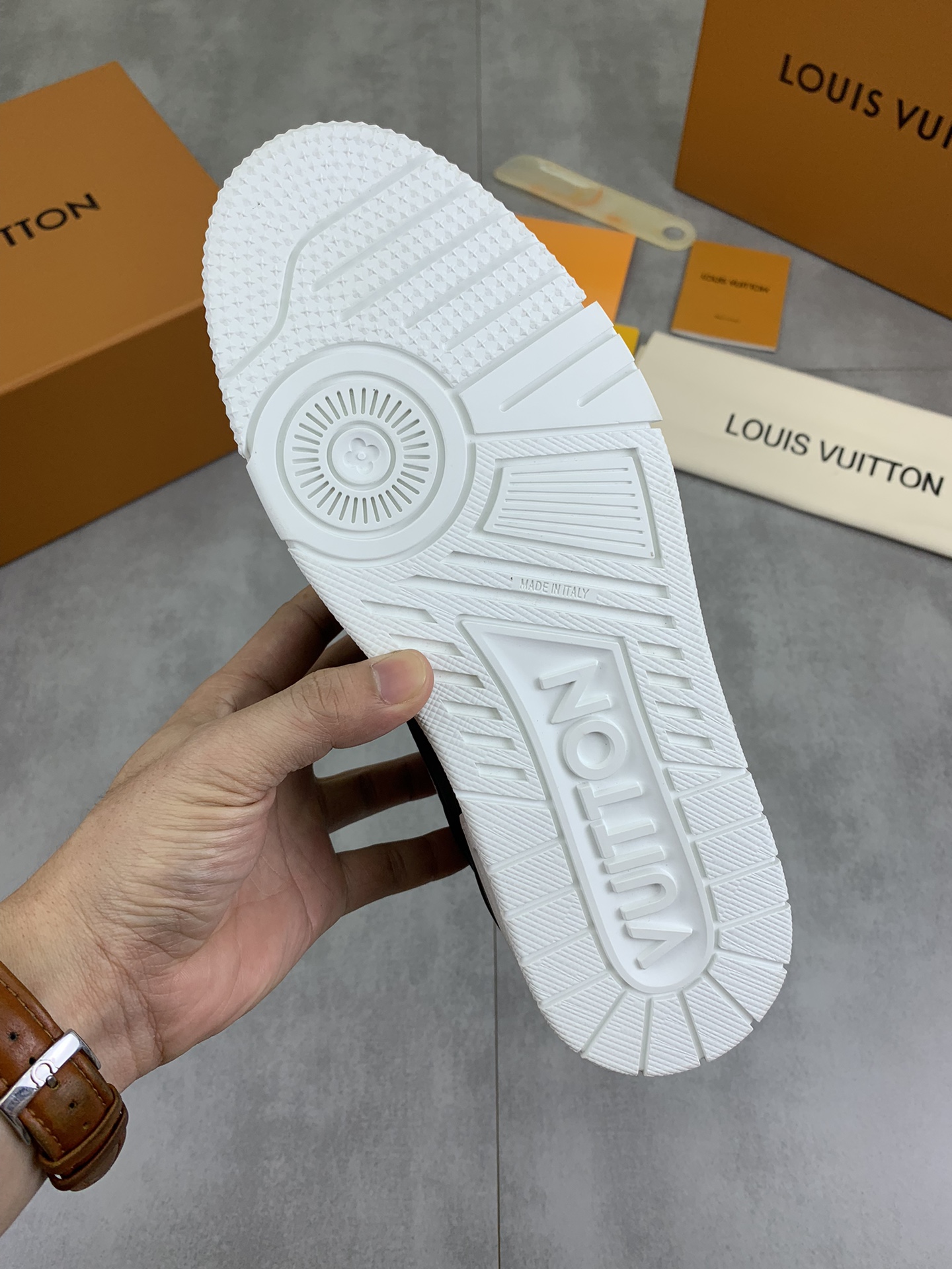 这款鞋子是AAAAA 1:1 质量 (非常棒). 使用了和原版一模一样的材料. 商标部分也保持了和路易威登/Louis Vuitton一样. 图片拍摄是实物鞋子拍摄, 您所收到的实物保证和我们图片一模一样.