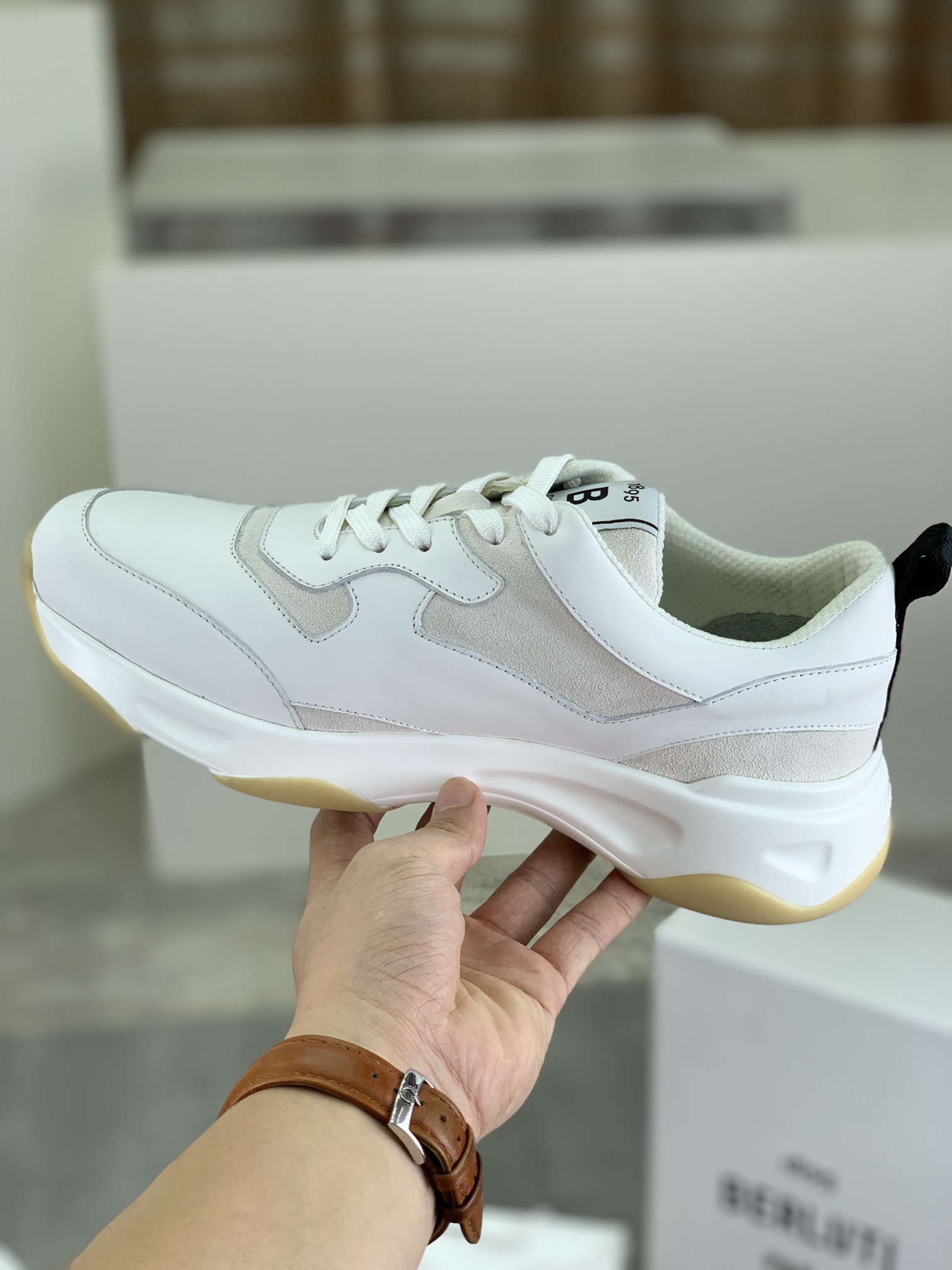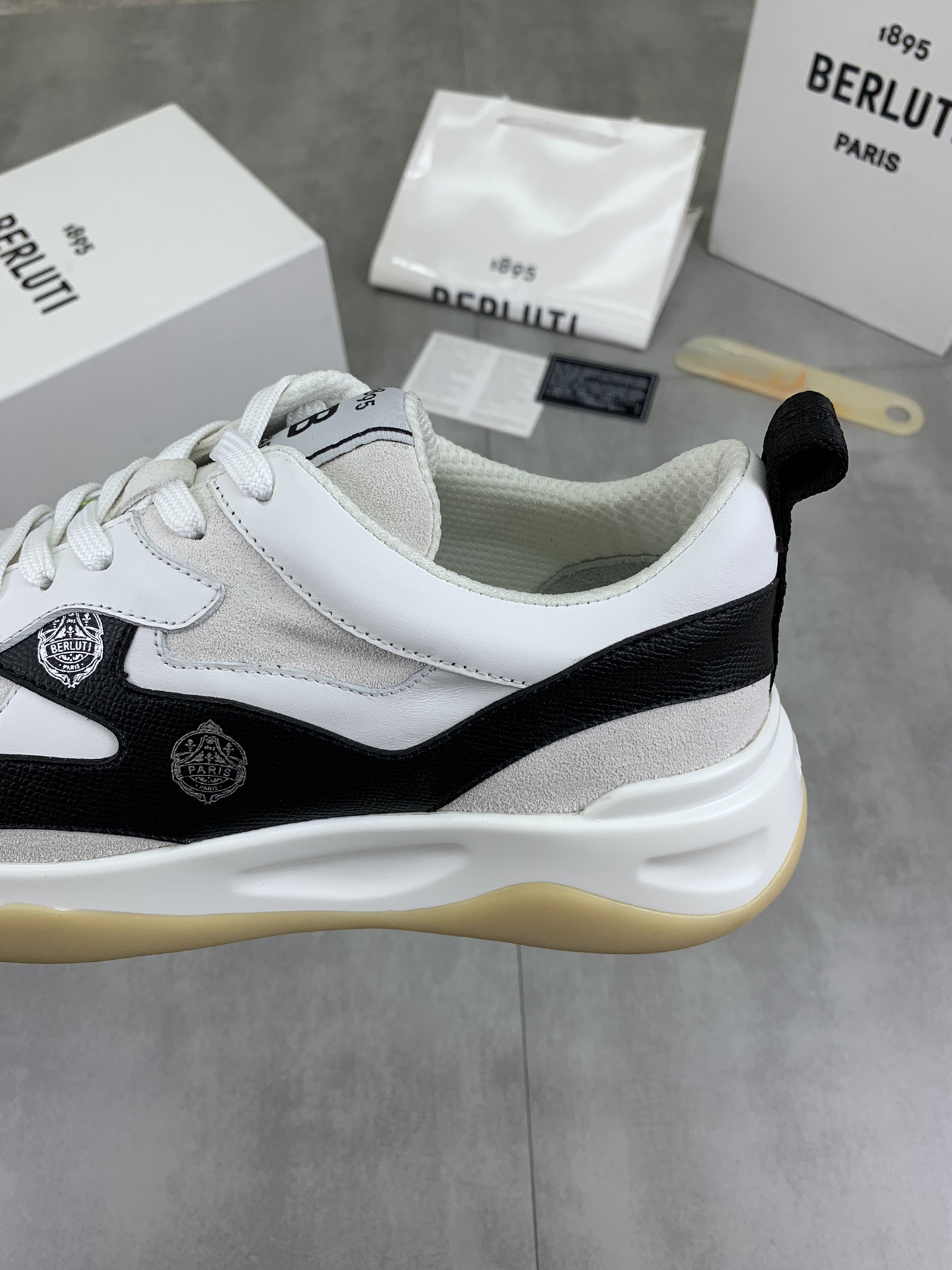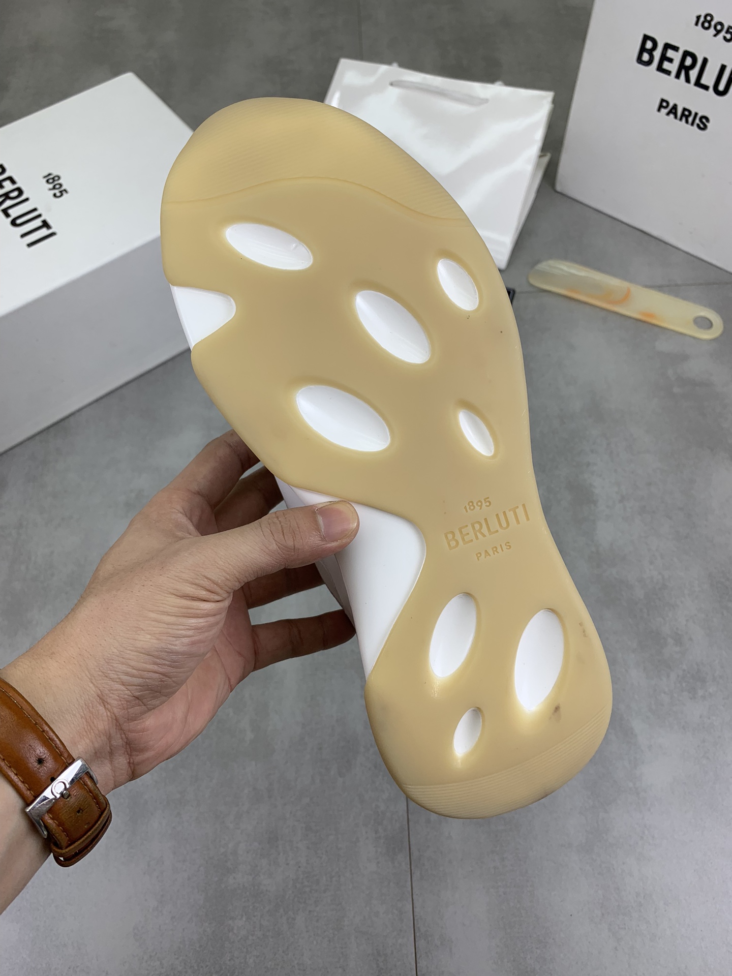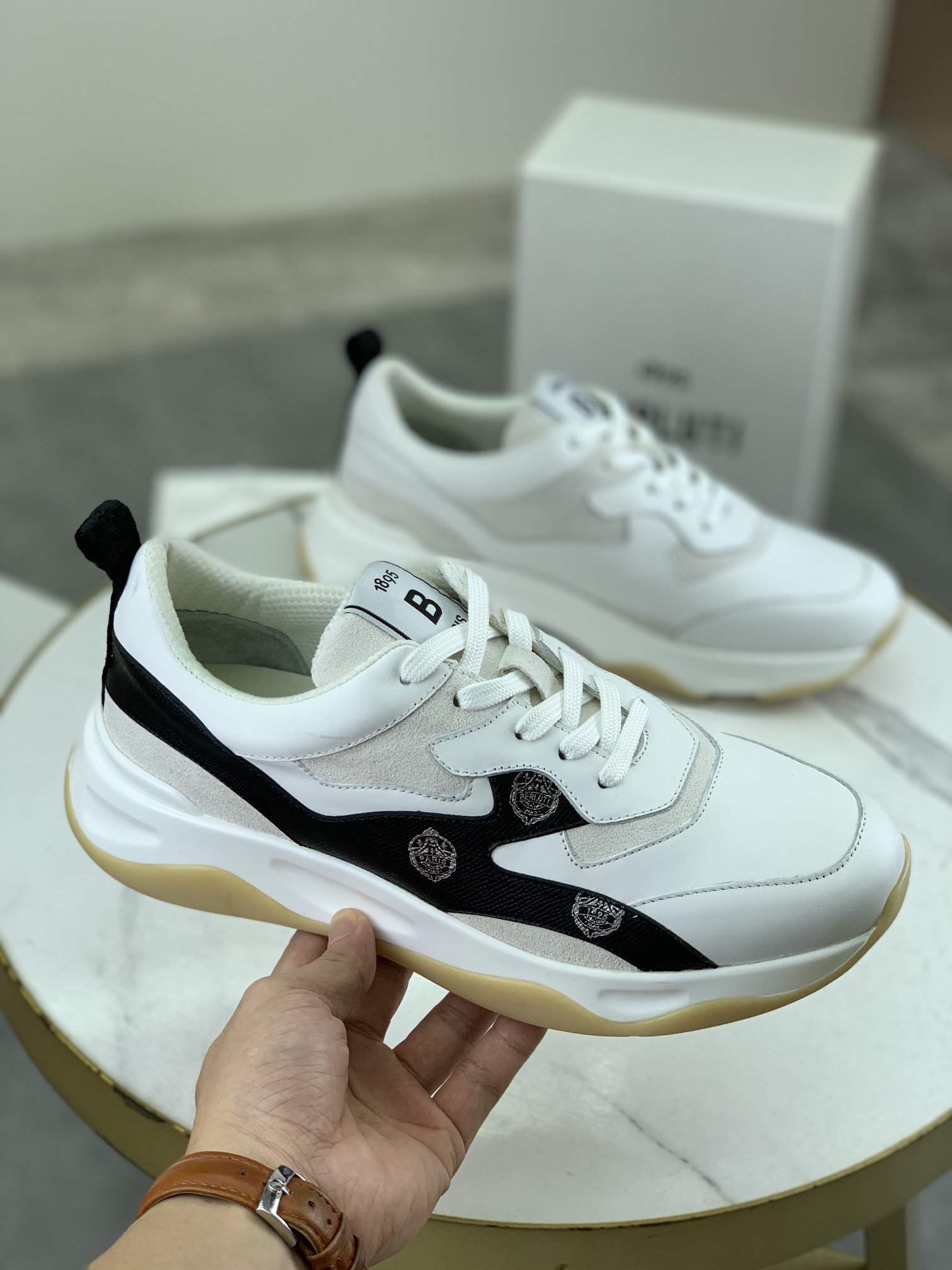 这款鞋子是AAAAA 1:1 质量 (非常棒). 使用了和原版一模一样的材料. 商标部分也保持了和Berluti一样. 图片拍摄是实物鞋子拍摄, 您所收到的实物保证和我们图片一模一样.