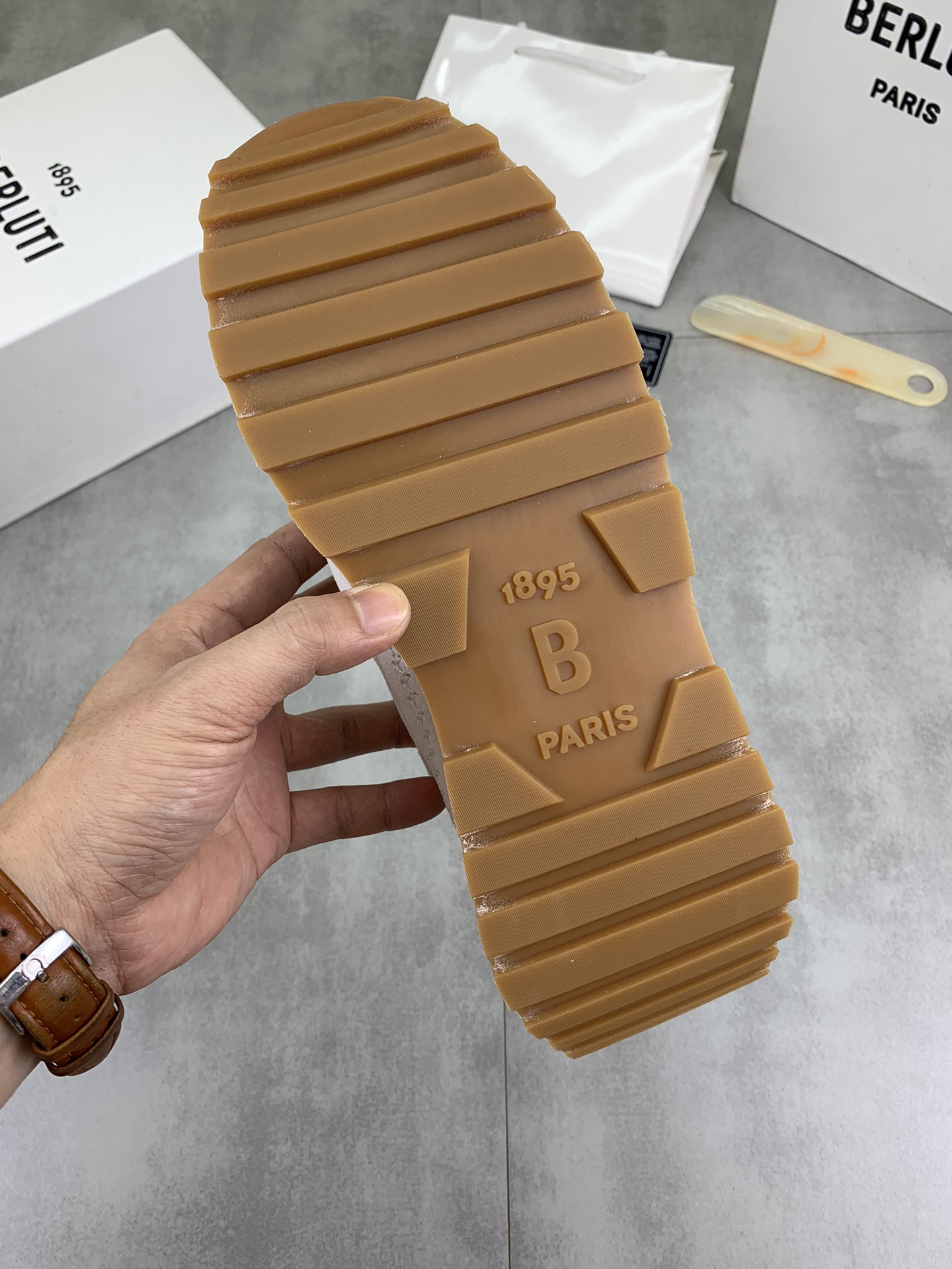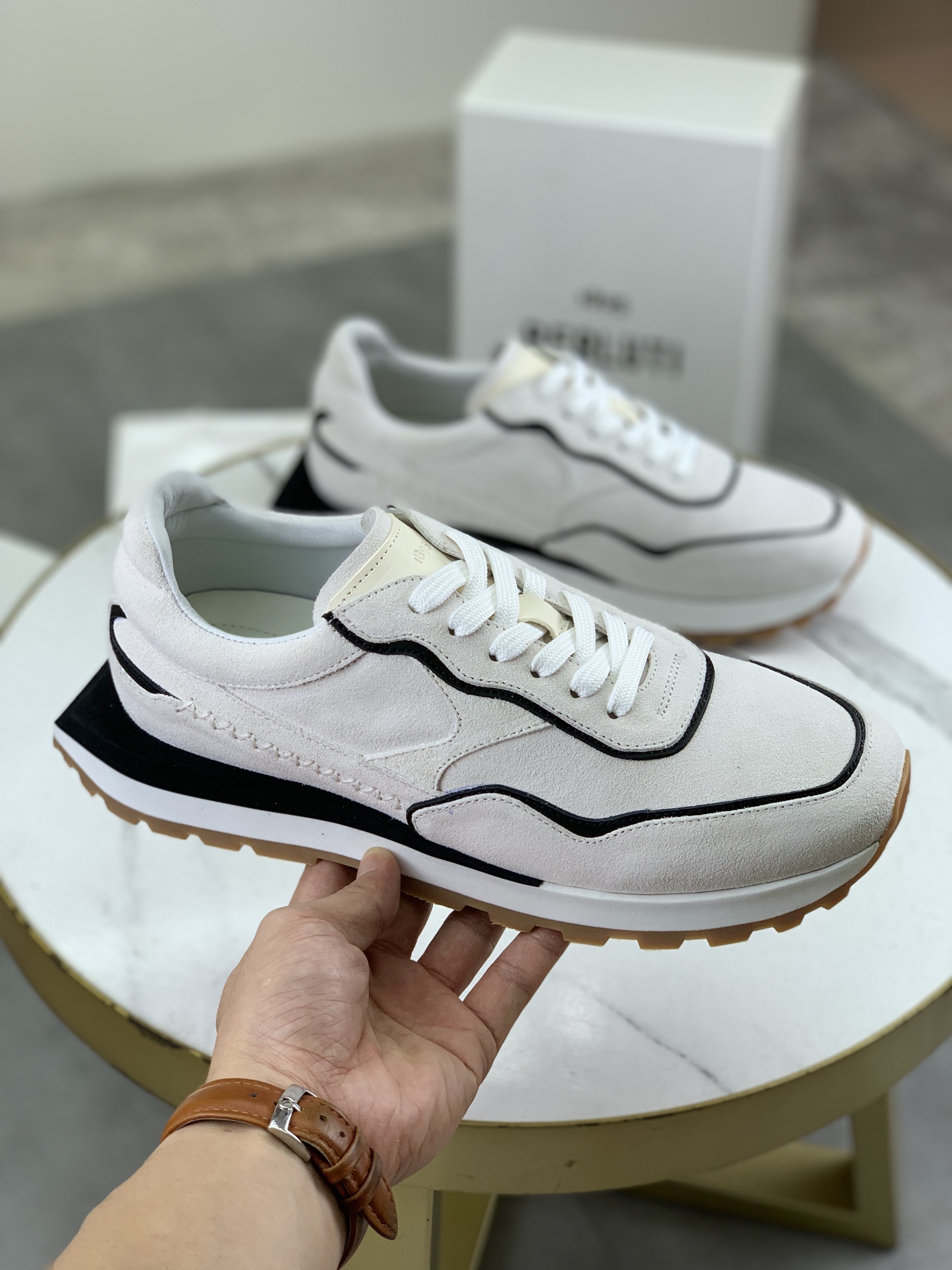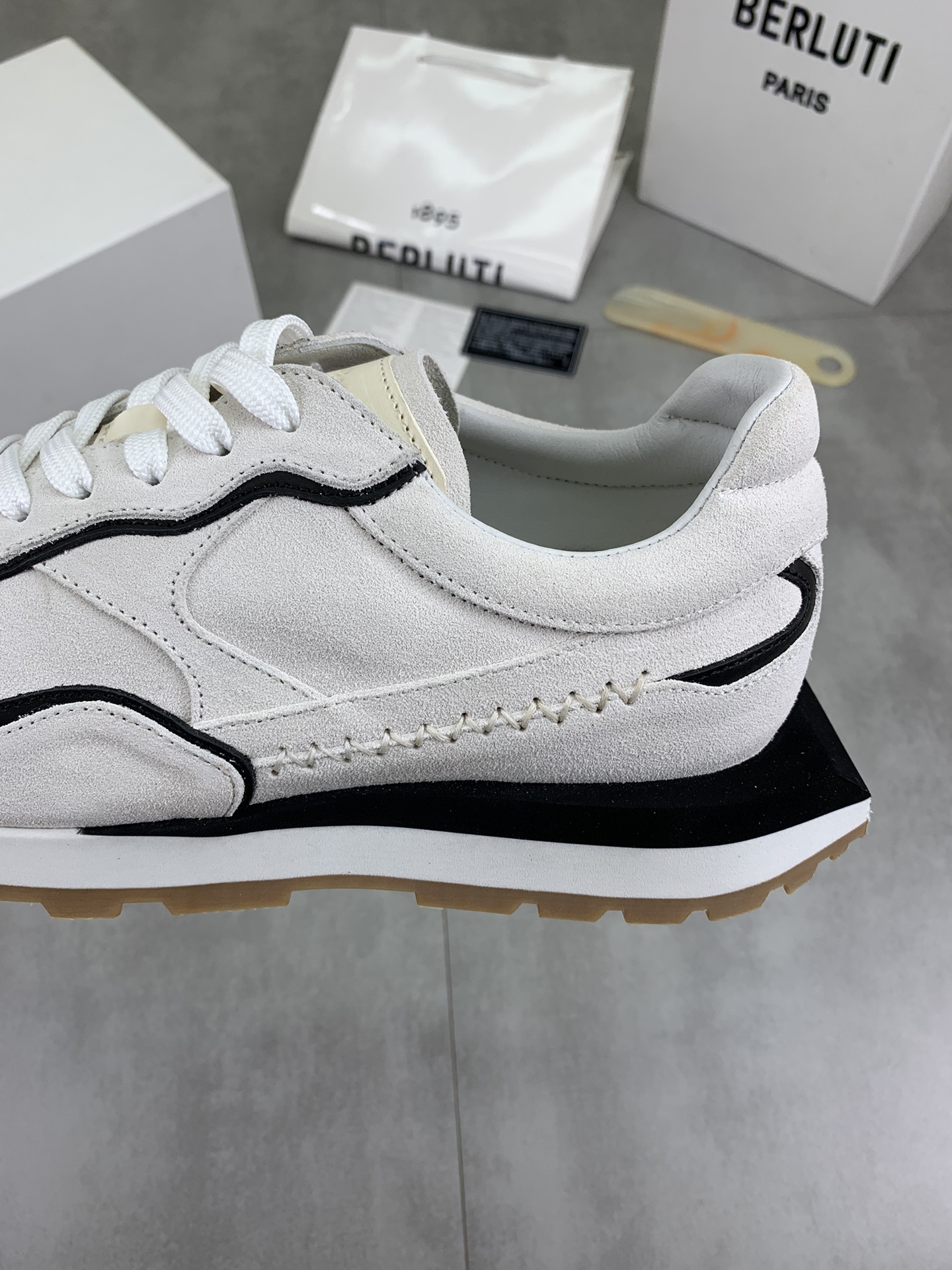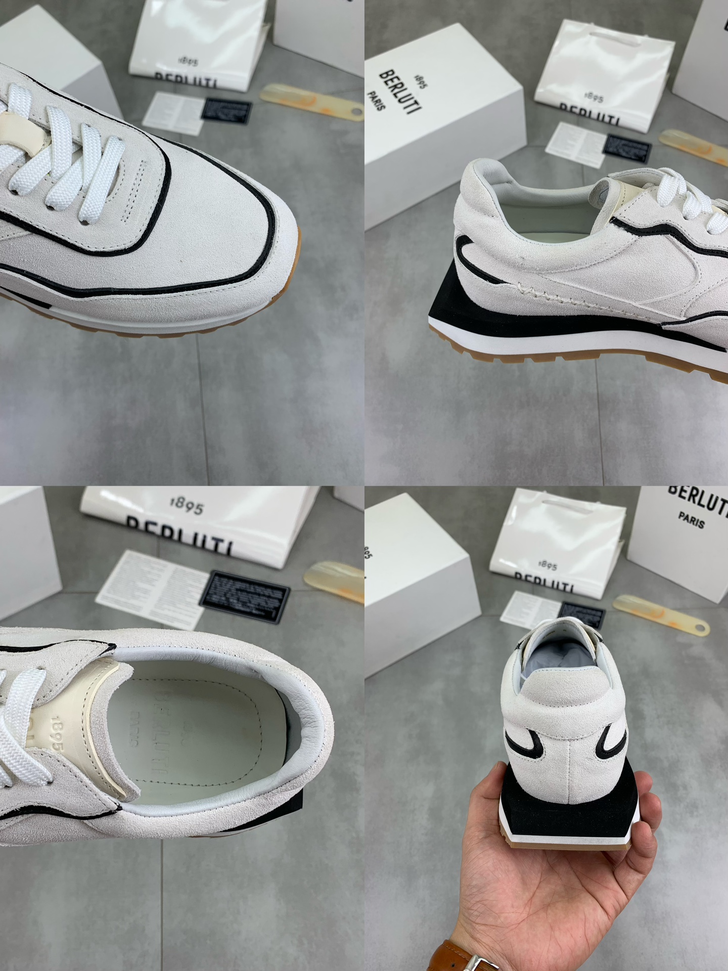 这款鞋子是AAAAA 1:1 质量 (非常棒). 使用了和原版一模一样的材料. 商标部分也保持了和Berluti一样. 图片拍摄是实物鞋子拍摄, 您所收到的实物保证和我们图片一模一样.