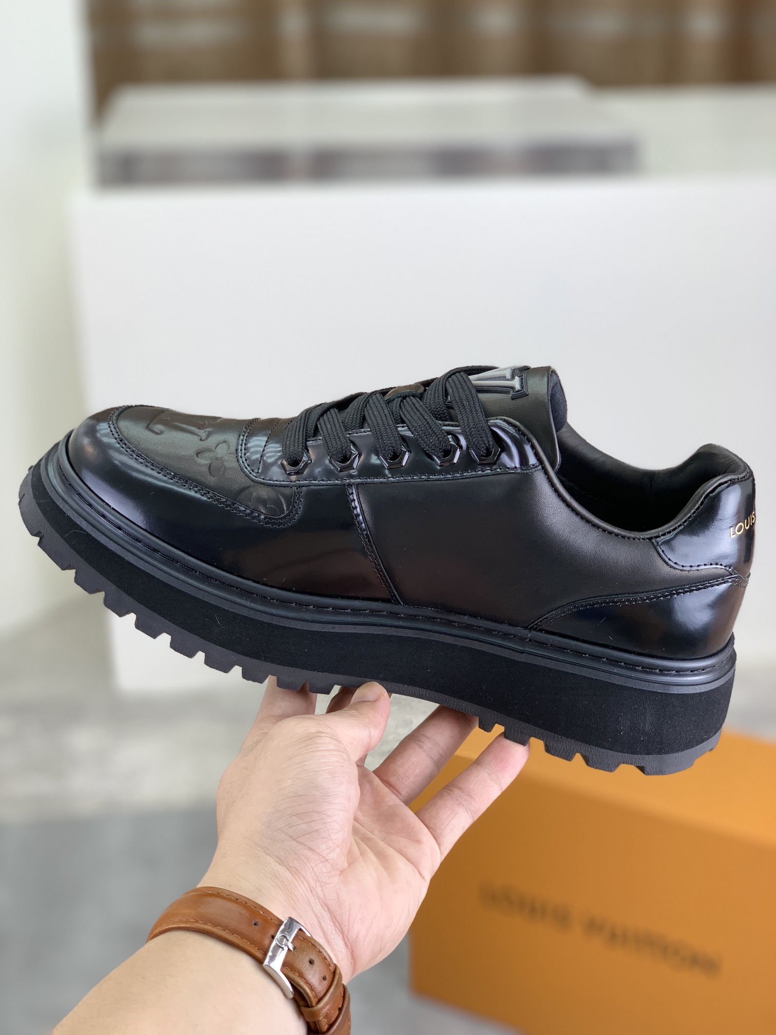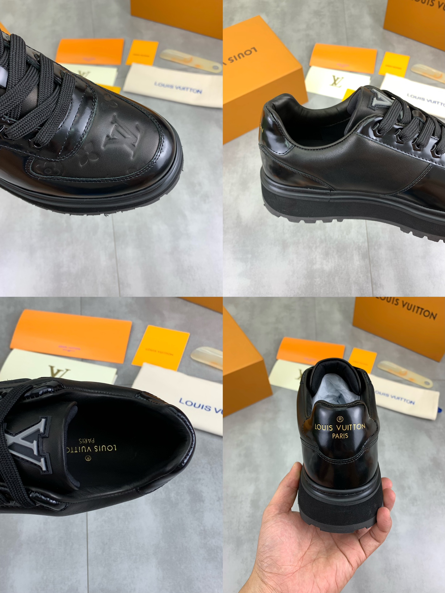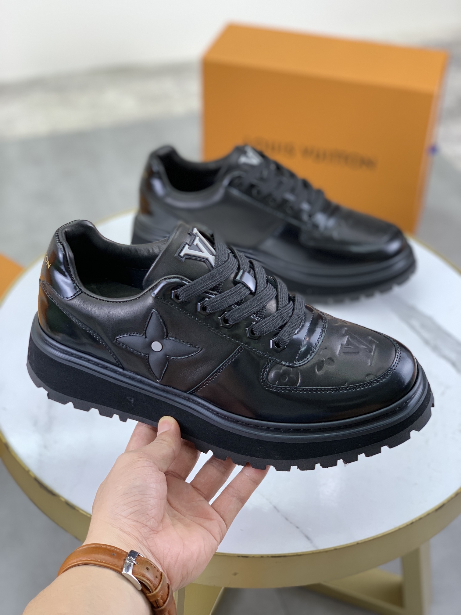 这款鞋子是AAAAA 1:1 质量 (非常棒). 使用了和原版一模一样的材料. 商标部分也保持了和路易威登/Louis Vuitton一样. 图片拍摄是实物鞋子拍摄, 您所收到的实物保证和我们图片一模一样.