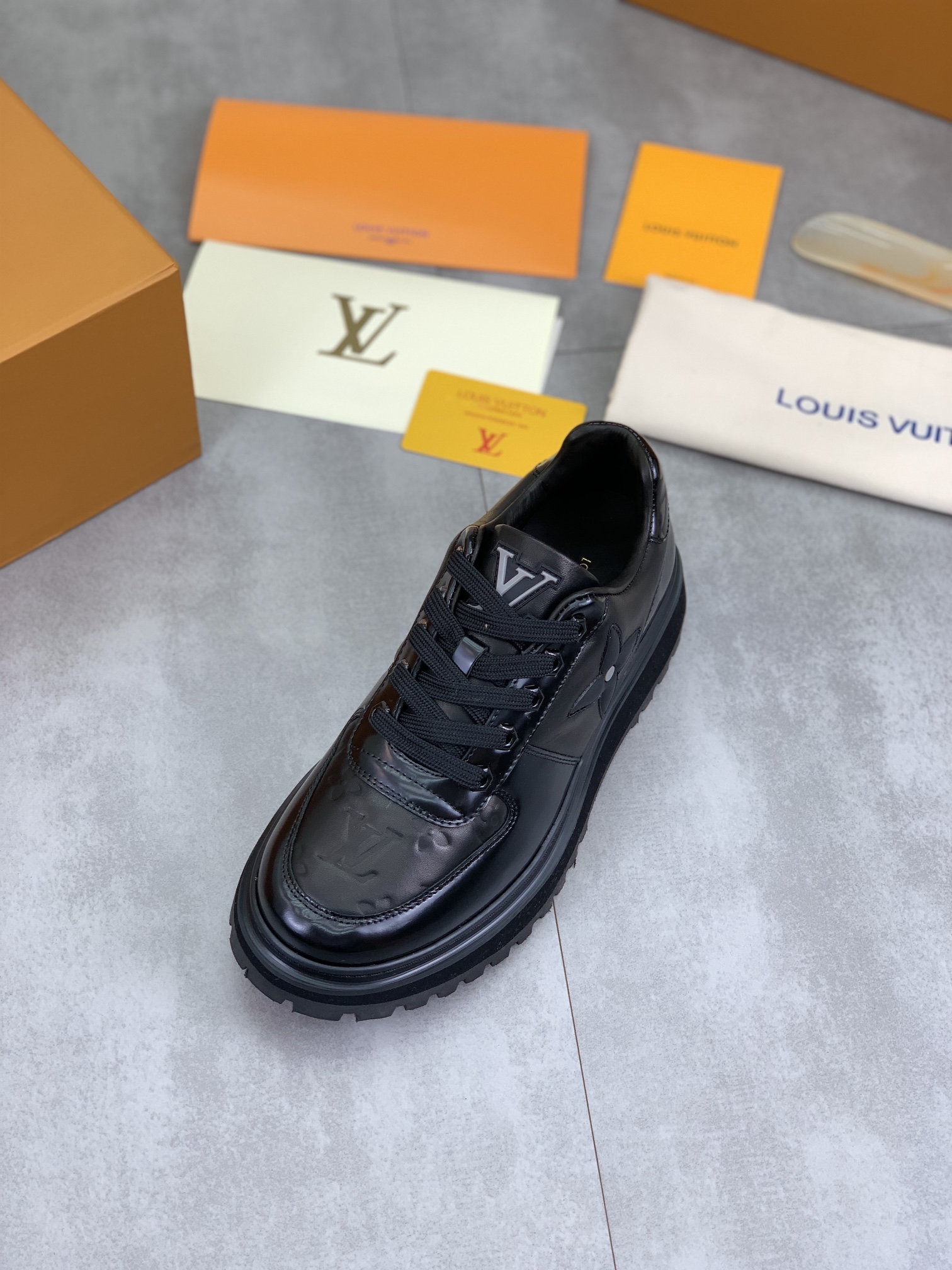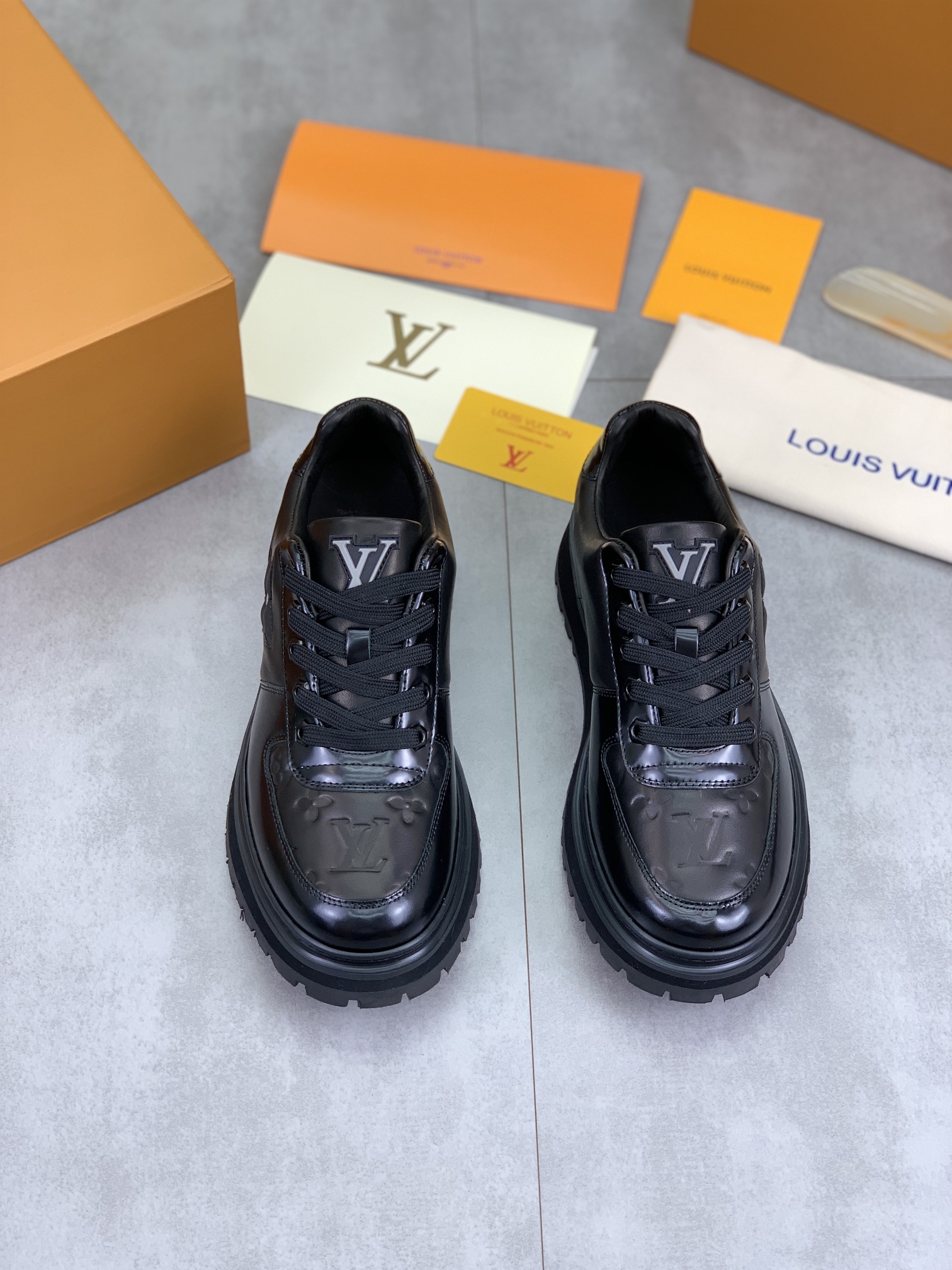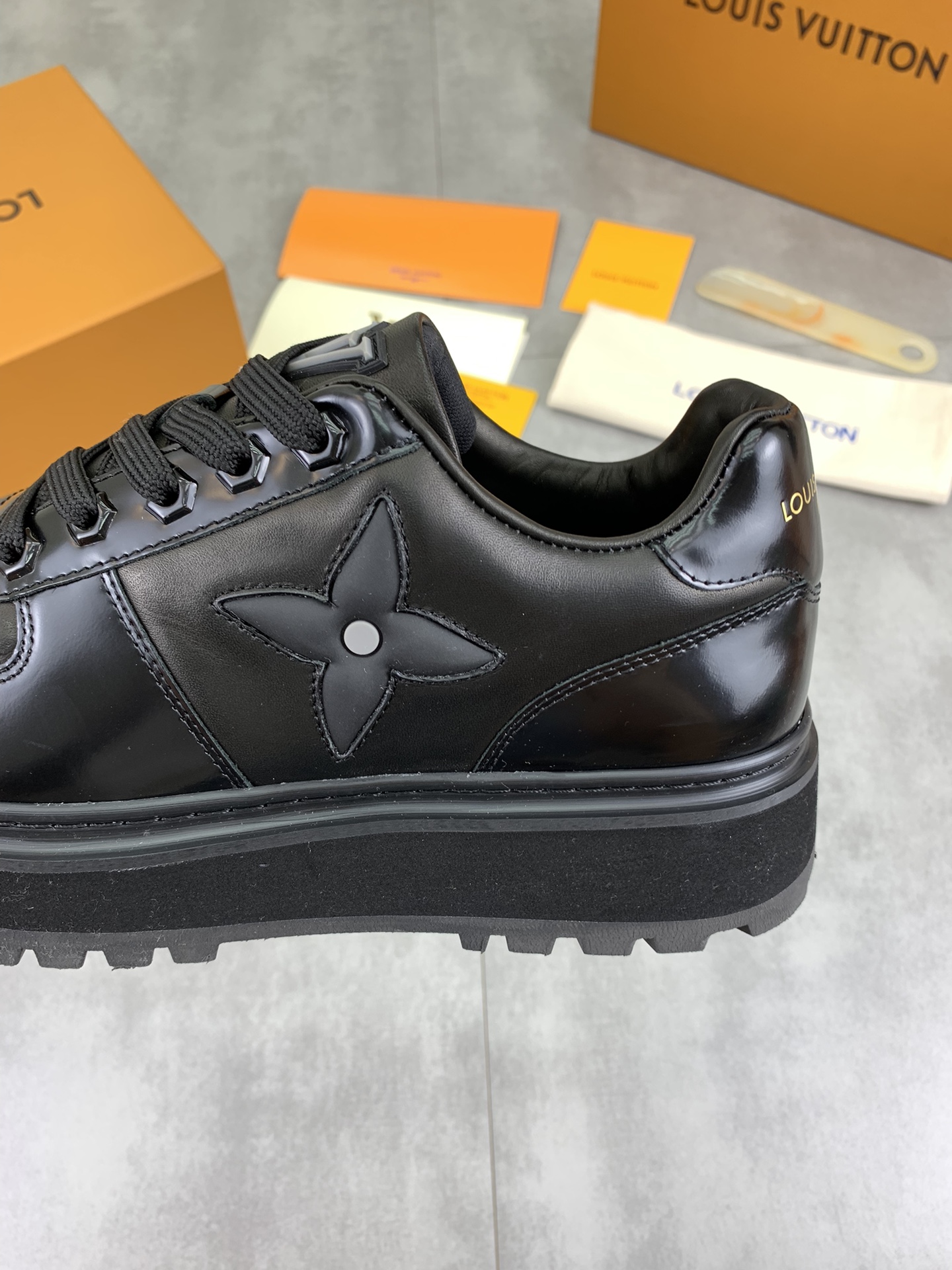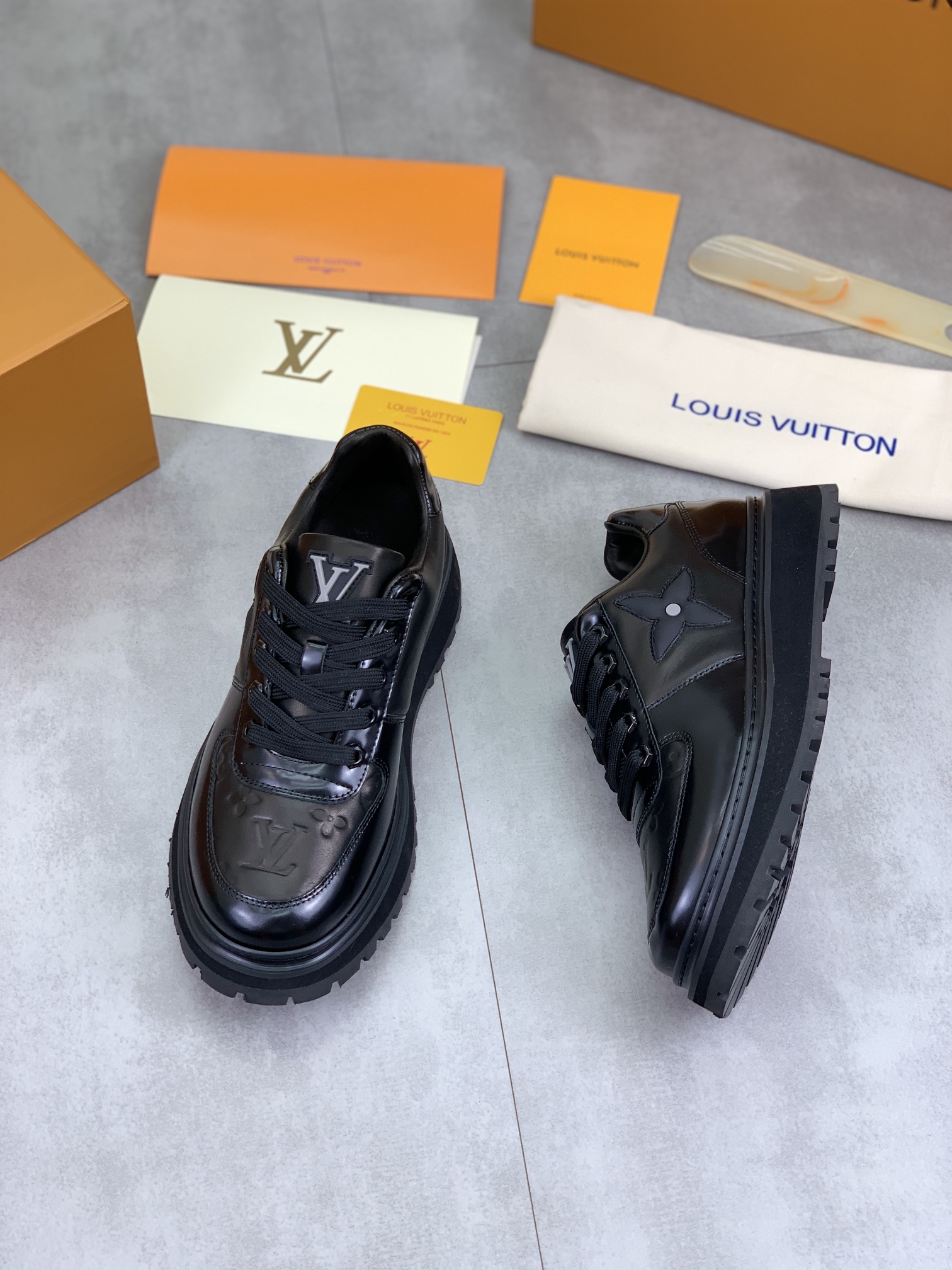 这款鞋子是AAAAA 1:1 质量 (非常棒). 使用了和原版一模一样的材料. 商标部分也保持了和路易威登/Louis Vuitton一样. 图片拍摄是实物鞋子拍摄, 您所收到的实物保证和我们图片一模一样.