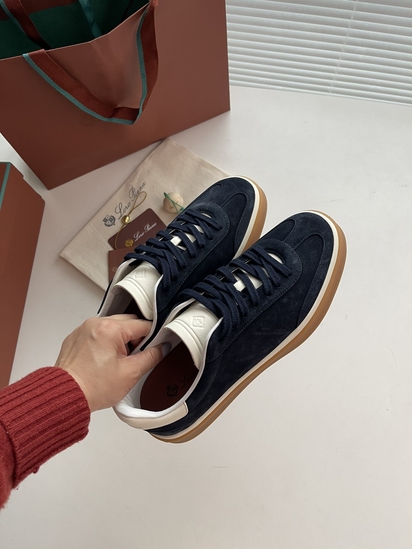 这款鞋子是AAAAA 1:1 质量 (非常棒). 使用了和原版一模一样的材料. 商标部分也保持了和洛罗皮亚纳/Loro Piana一样. 图片拍摄是实物鞋子拍摄, 您所收到的实物保证和我们图片一模一样.