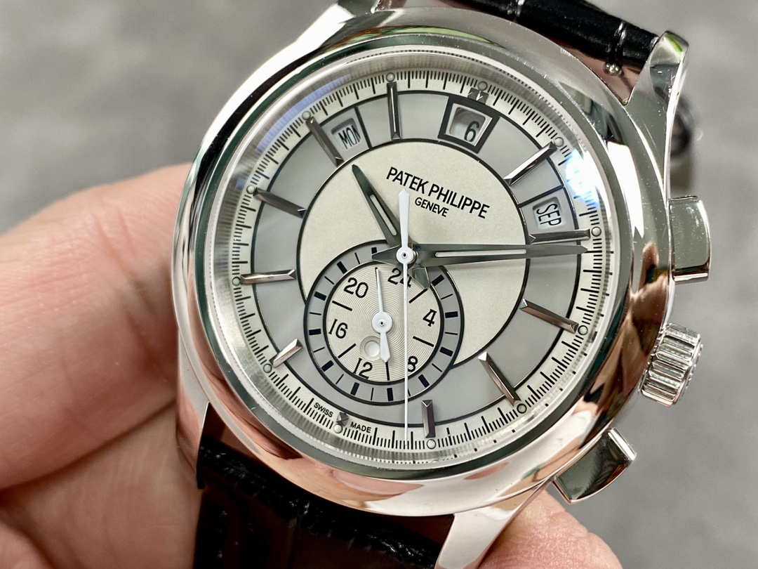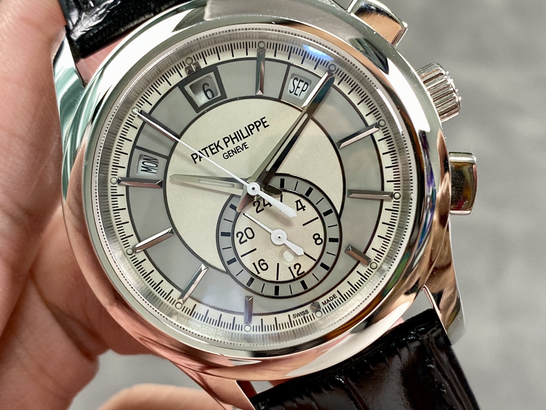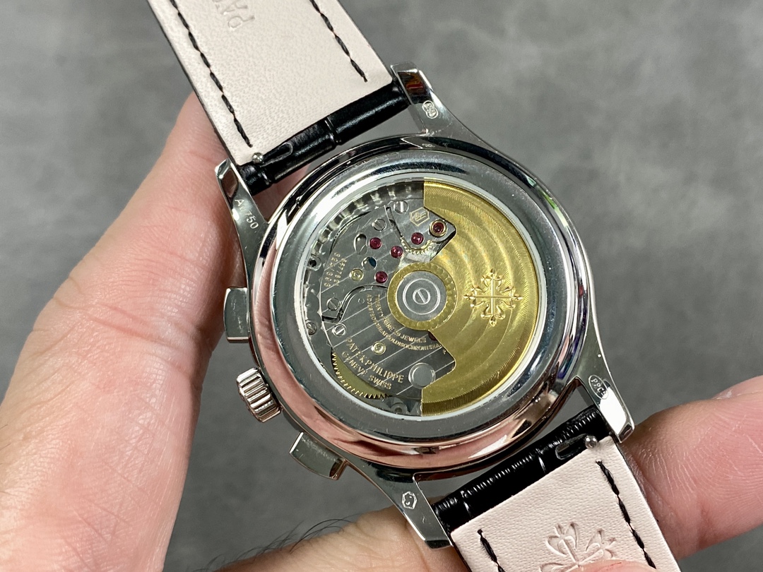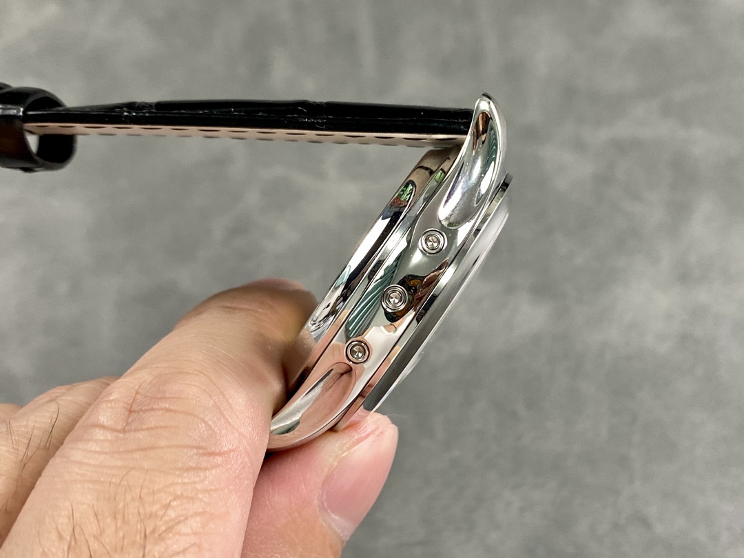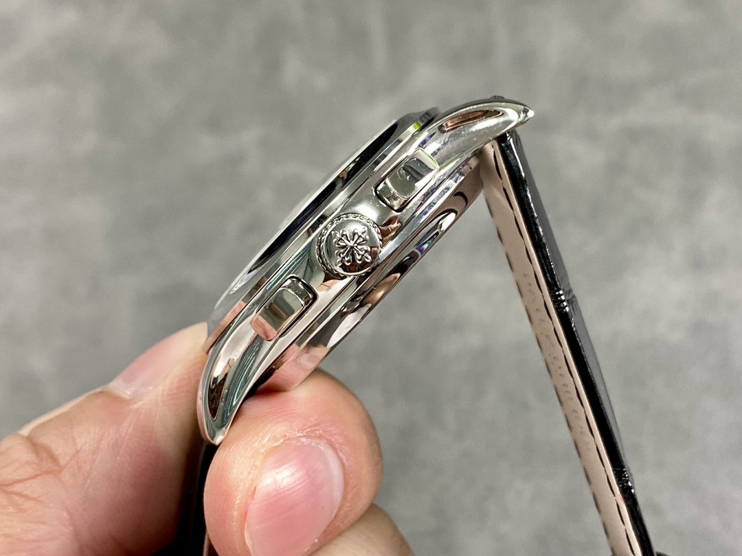 这款手表是AAAAA 1:1 质量 (非常棒). 使用了和原版一模一样的材料. 商标部分也保持了和百达翡丽/Patek Philippe一样. 图片拍摄是实物手表拍摄, 您所收到的实物保证和我们图片一模一样.