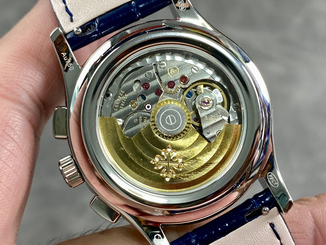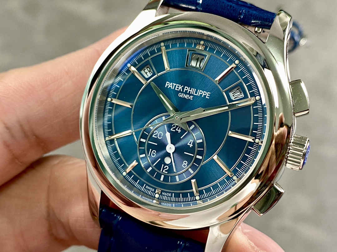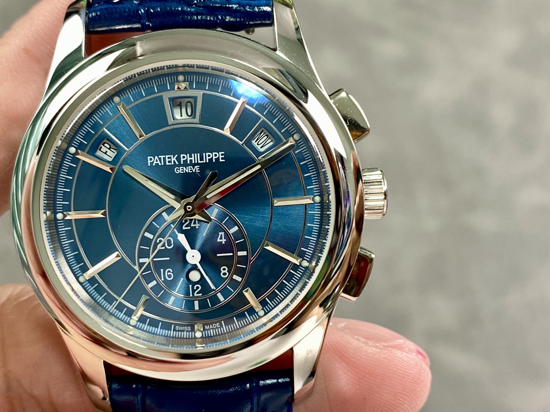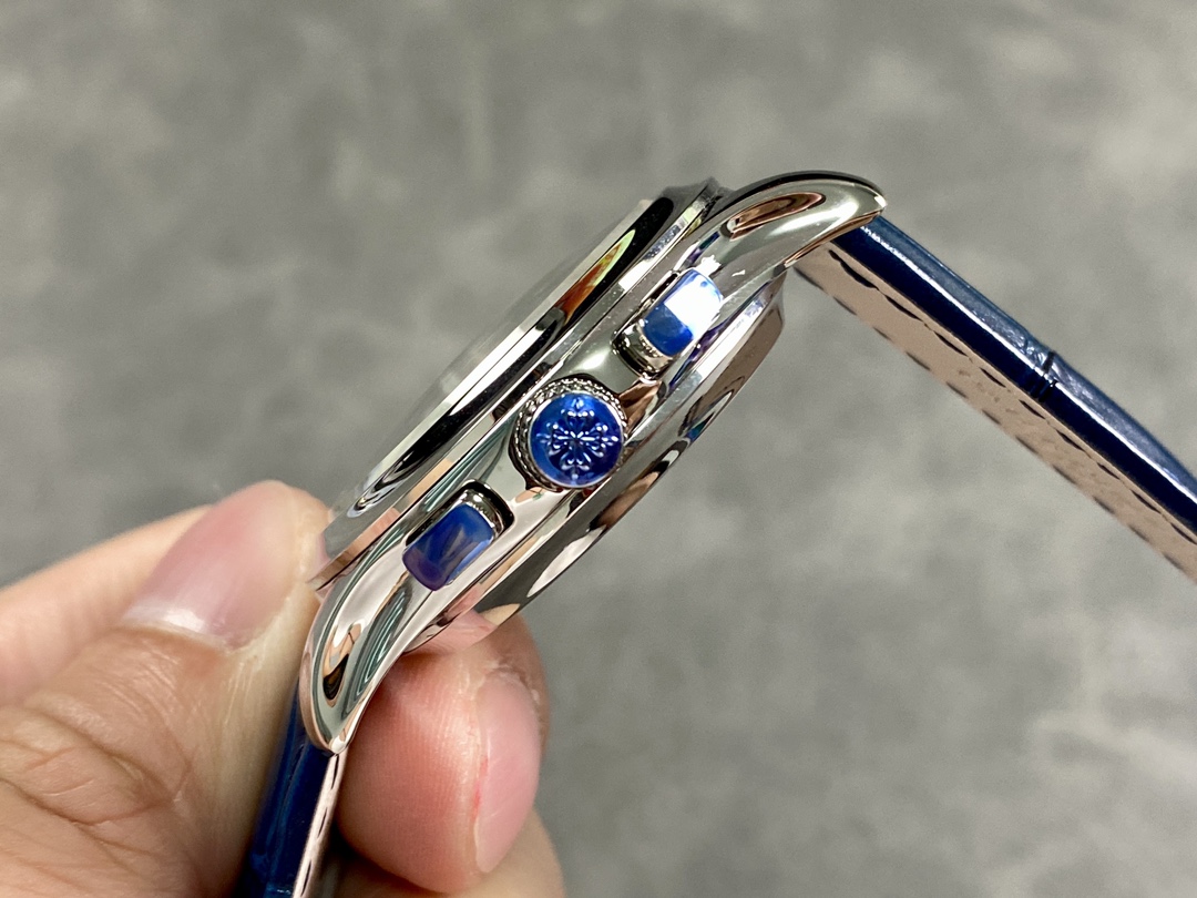 这款手表是AAAAA 1:1 质量 (非常棒). 使用了和原版一模一样的材料. 商标部分也保持了和百达翡丽/Patek Philippe一样. 图片拍摄是实物手表拍摄, 您所收到的实物保证和我们图片一模一样.