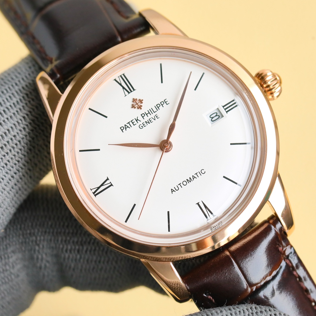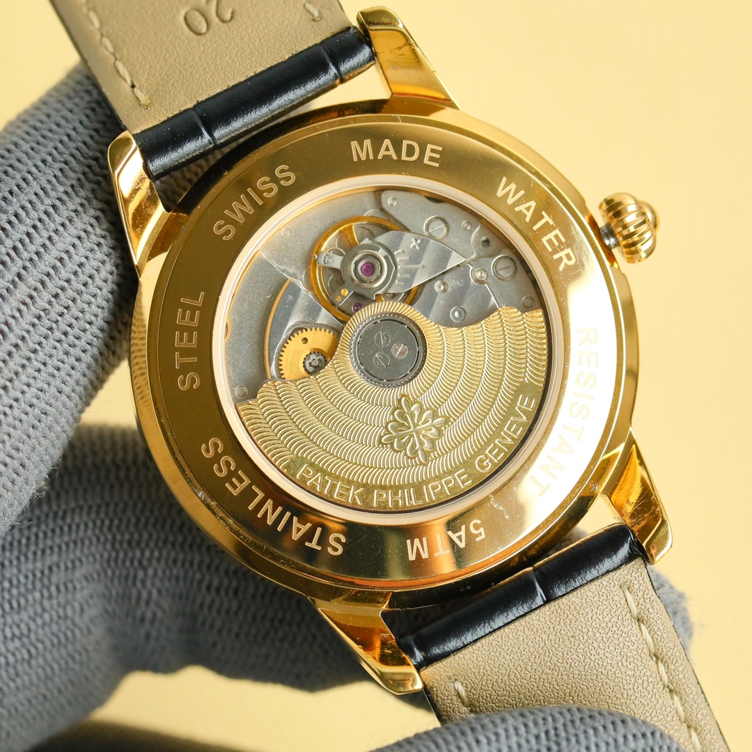 这款手表是AAAAA 1:1 质量 (非常棒). 使用了和原版一模一样的材料. 商标部分也保持了和百达翡丽/Patek Philippe一样. 图片拍摄是实物手表拍摄, 您所收到的实物保证和我们图片一模一样.