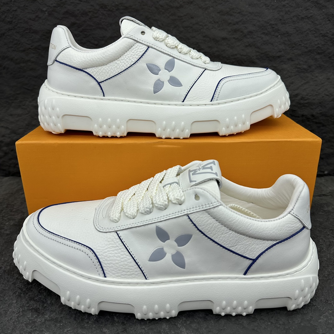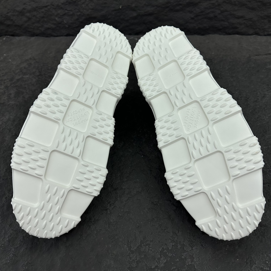 这款鞋子是AAAAA 1:1 质量 (非常棒). 使用了和原版一模一样的材料. 商标部分也保持了和路易威登/Louis Vuitton一样. 图片拍摄是实物鞋子拍摄, 您所收到的实物保证和我们图片一模一样.