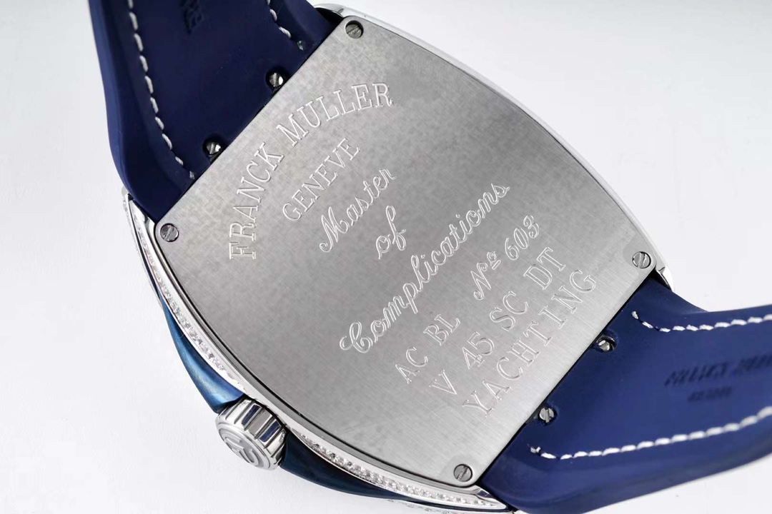 这款手表是AAAAA 1:1 质量 (非常棒). 使用了和原版一模一样的材料. 商标部分也保持了和Franck Mulle一样. 图片拍摄是实物手表拍摄, 您所收到的实物保证和我们图片一模一样.