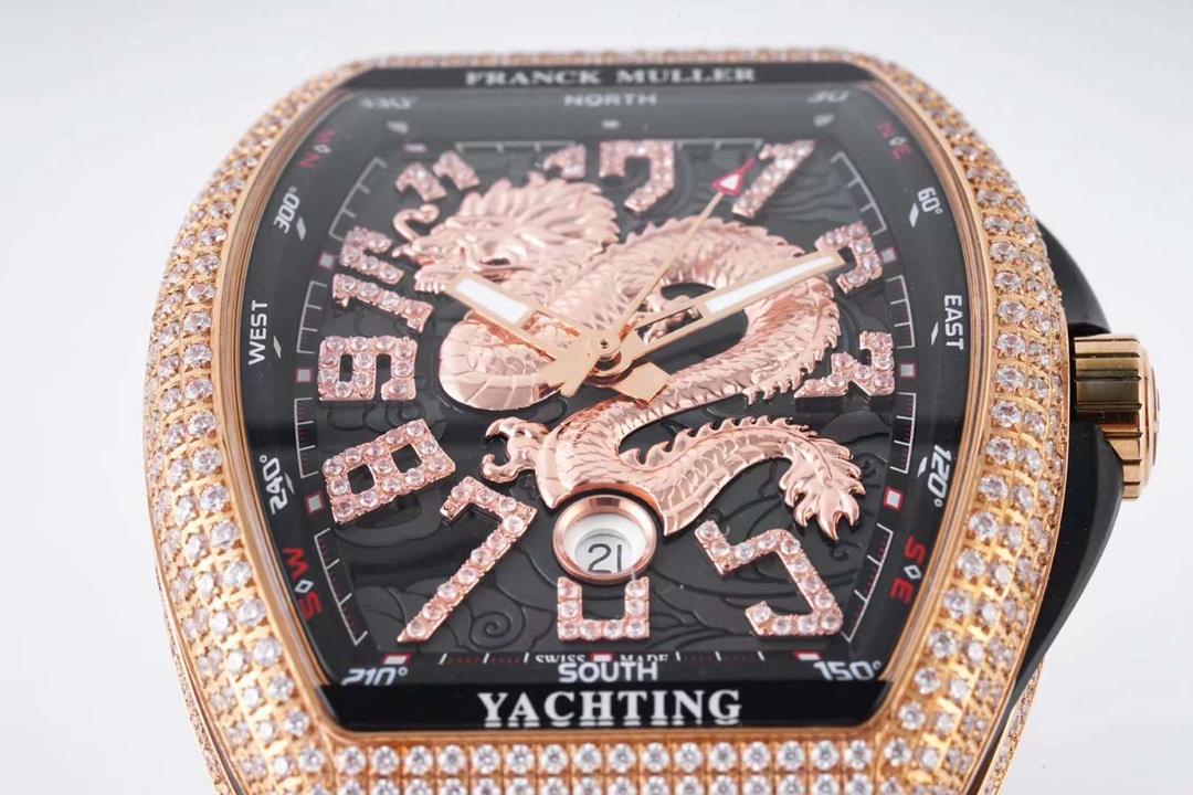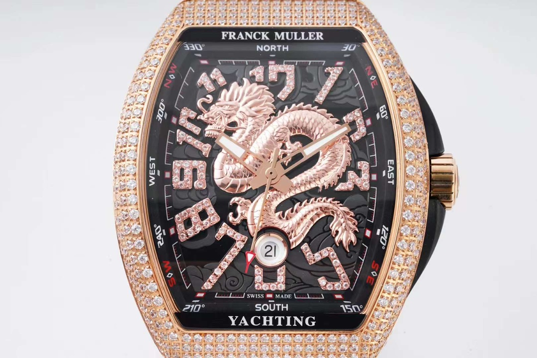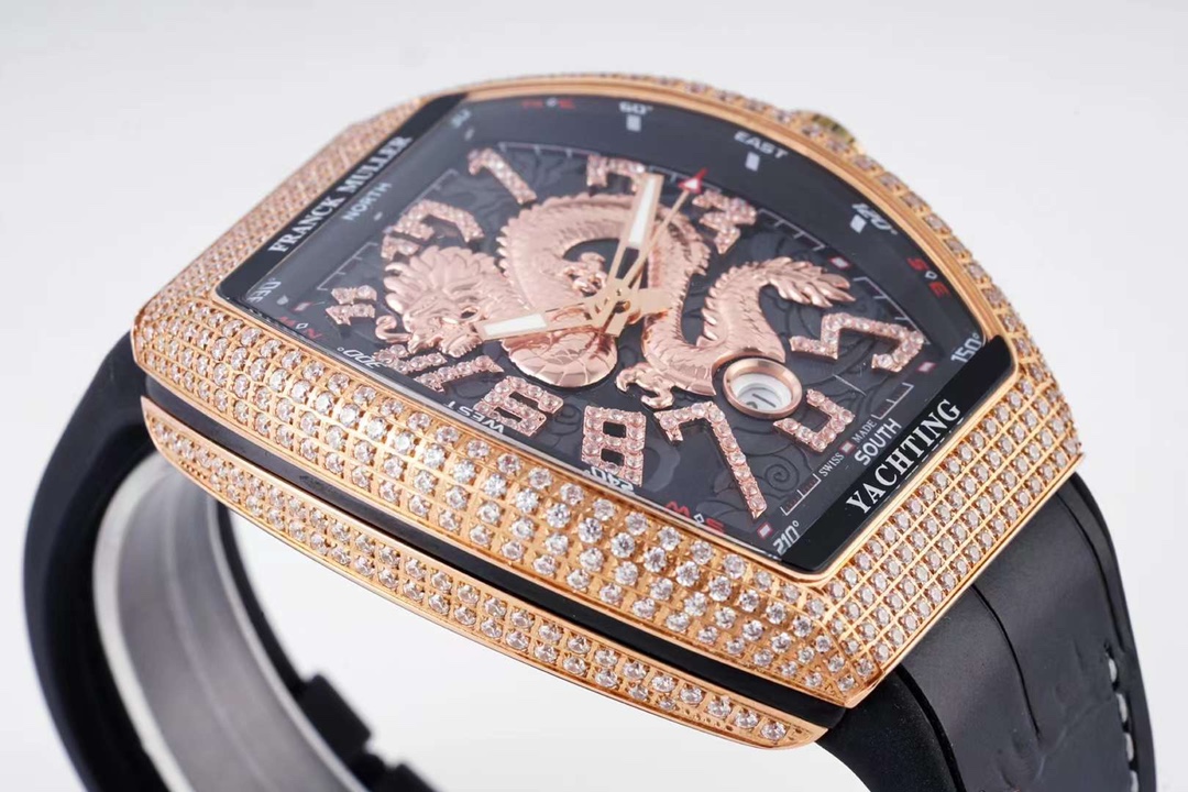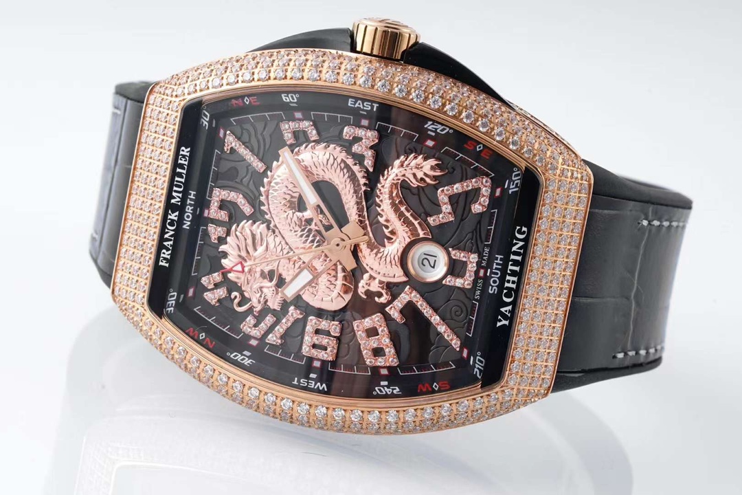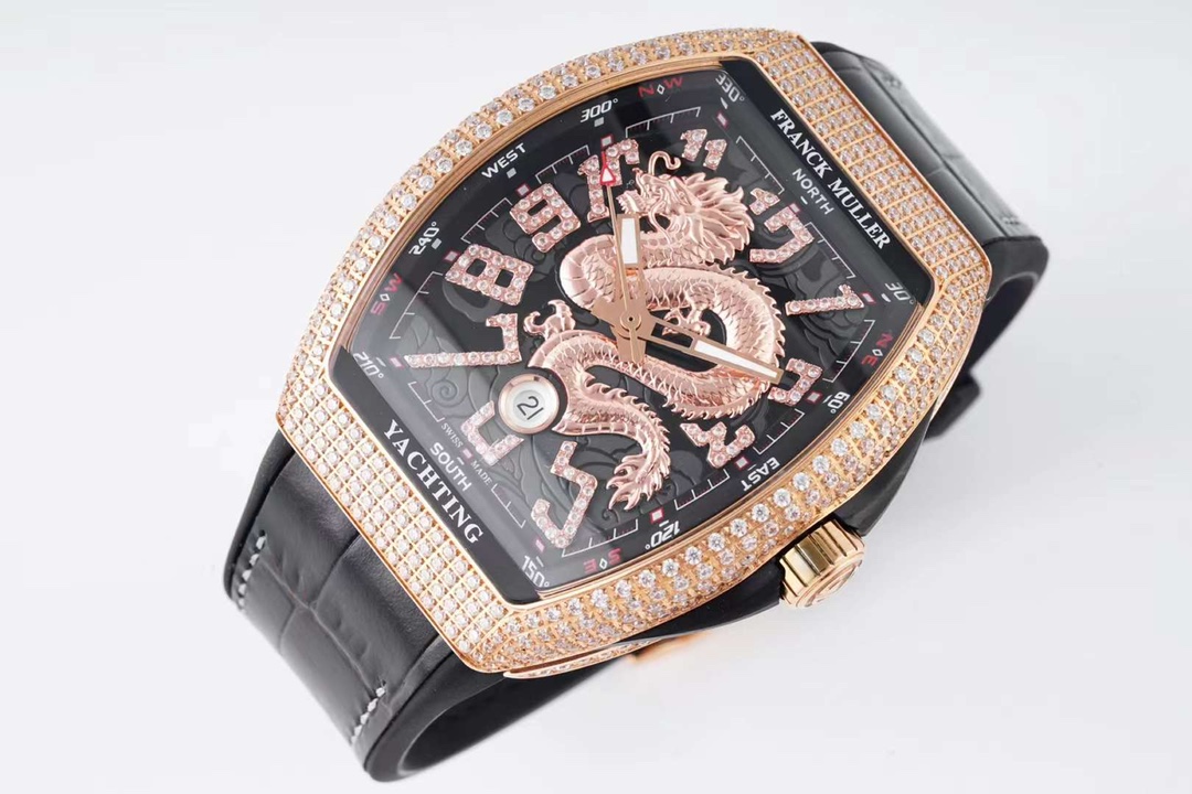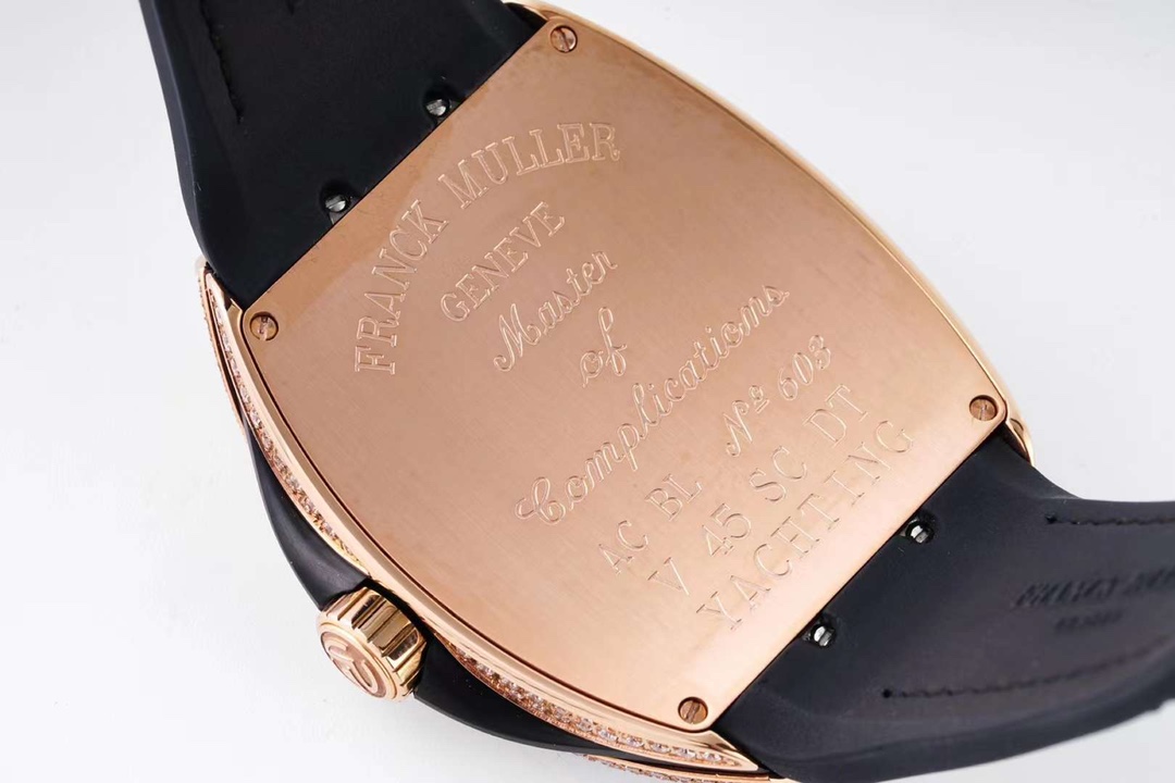 这款手表是AAAAA 1:1 质量 (非常棒). 使用了和原版一模一样的材料. 商标部分也保持了和Franck Mulle一样. 图片拍摄是实物手表拍摄, 您所收到的实物保证和我们图片一模一样.