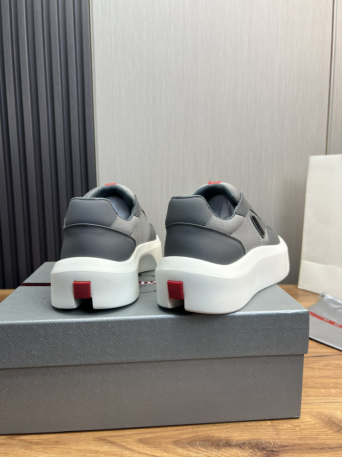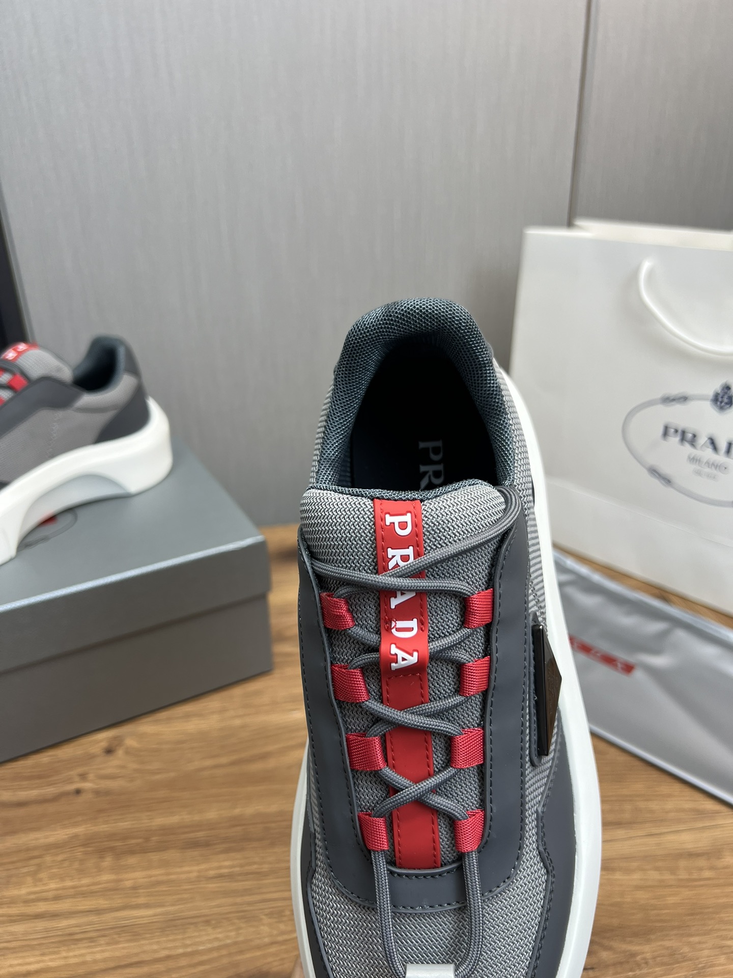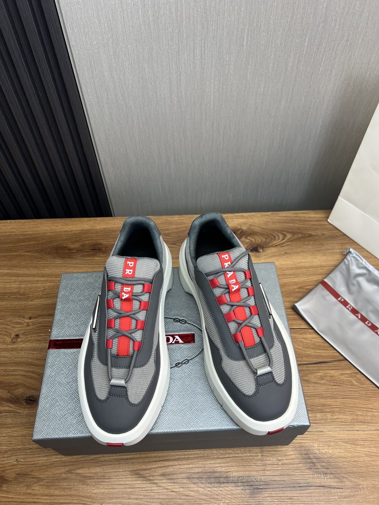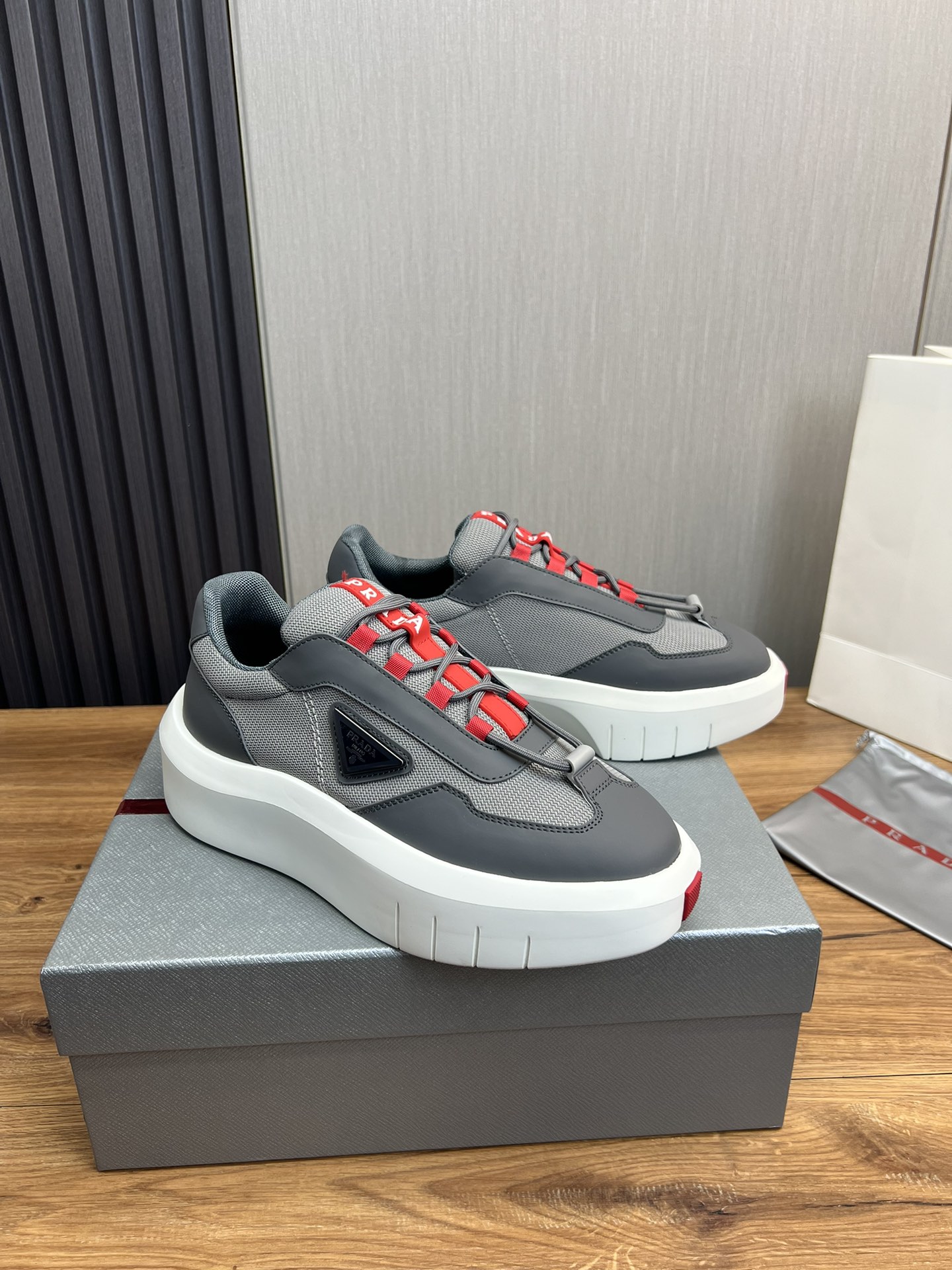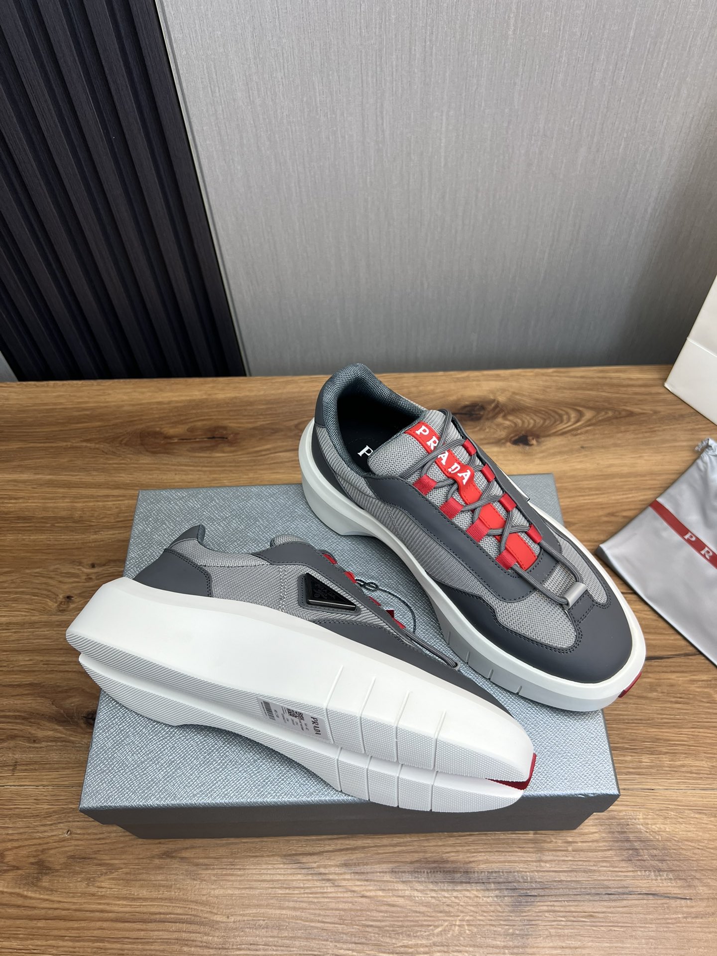 这款鞋子是AAAAA 1:1 质量 (非常棒). 使用了和原版一模一样的材料. 商标部分也保持了和普拉达/Prada一样. 图片拍摄是实物鞋子拍摄, 您所收到的实物保证和我们图片一模一样.