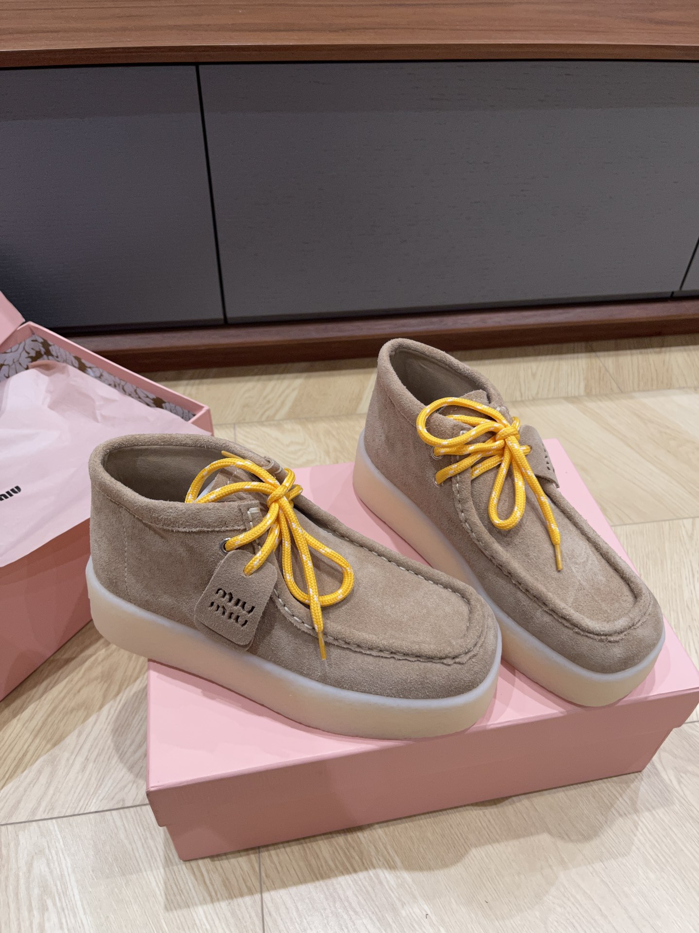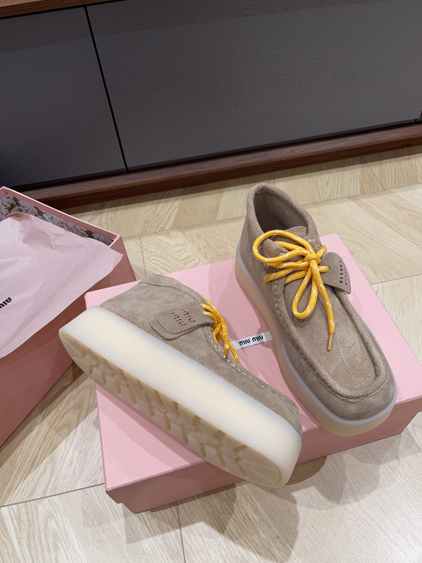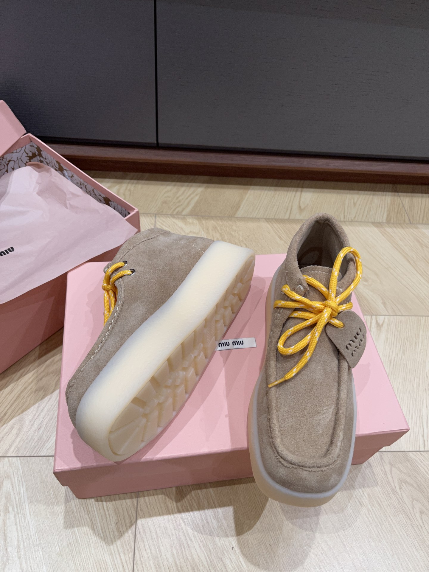 这款鞋子是AAAAA 1:1 质量 (非常棒). 使用了和原版一模一样的材料. 商标部分也保持了和缪缪/Miu Miu一样. 图片拍摄是实物鞋子拍摄, 您所收到的实物保证和我们图片一模一样.