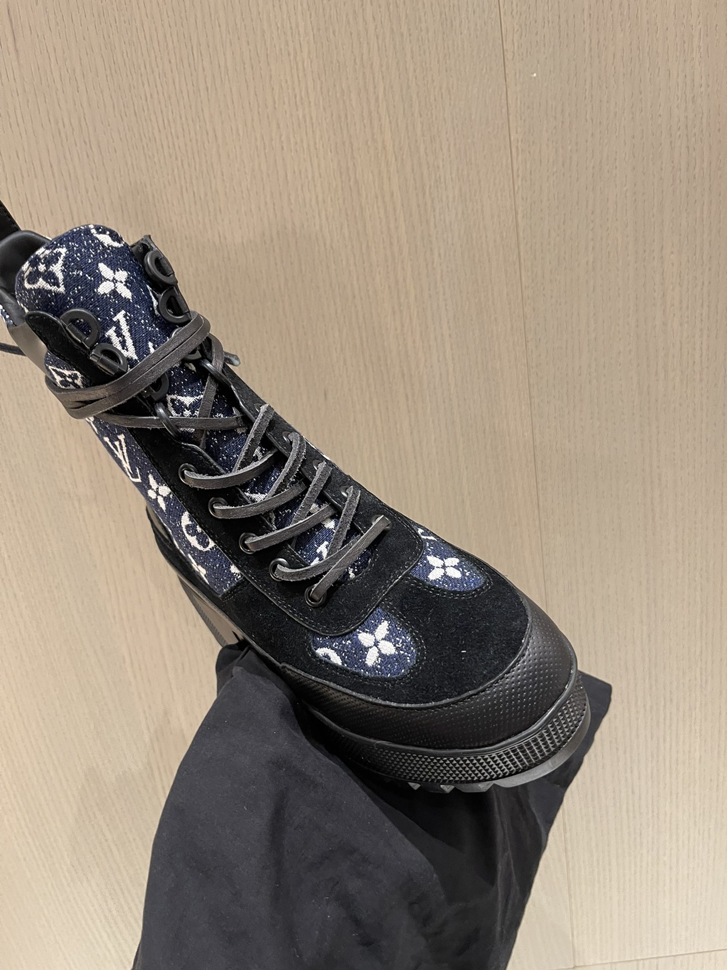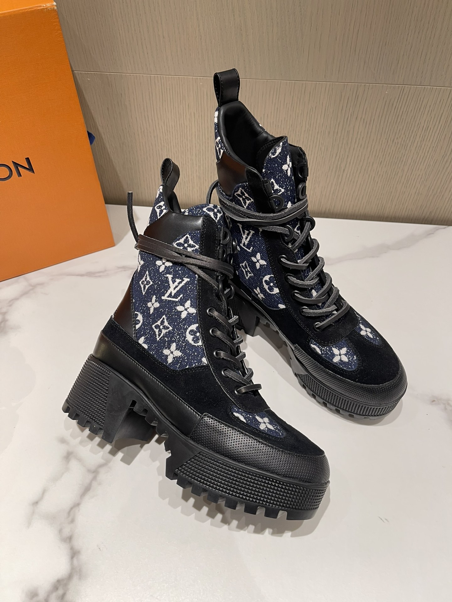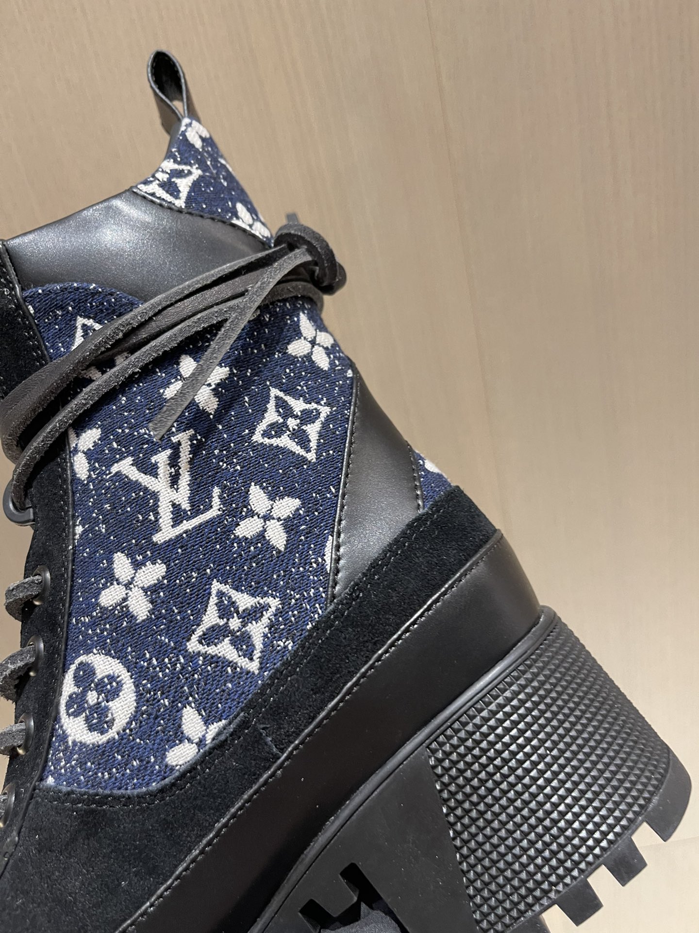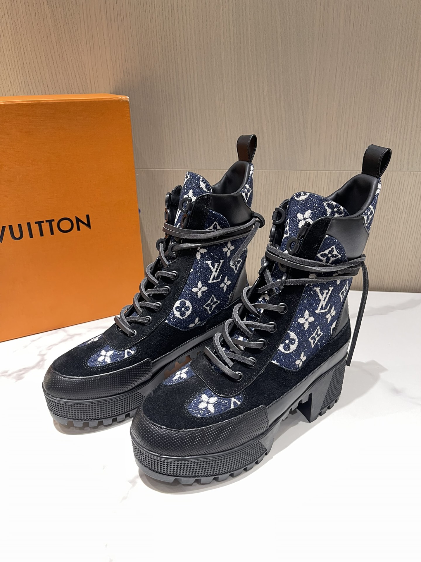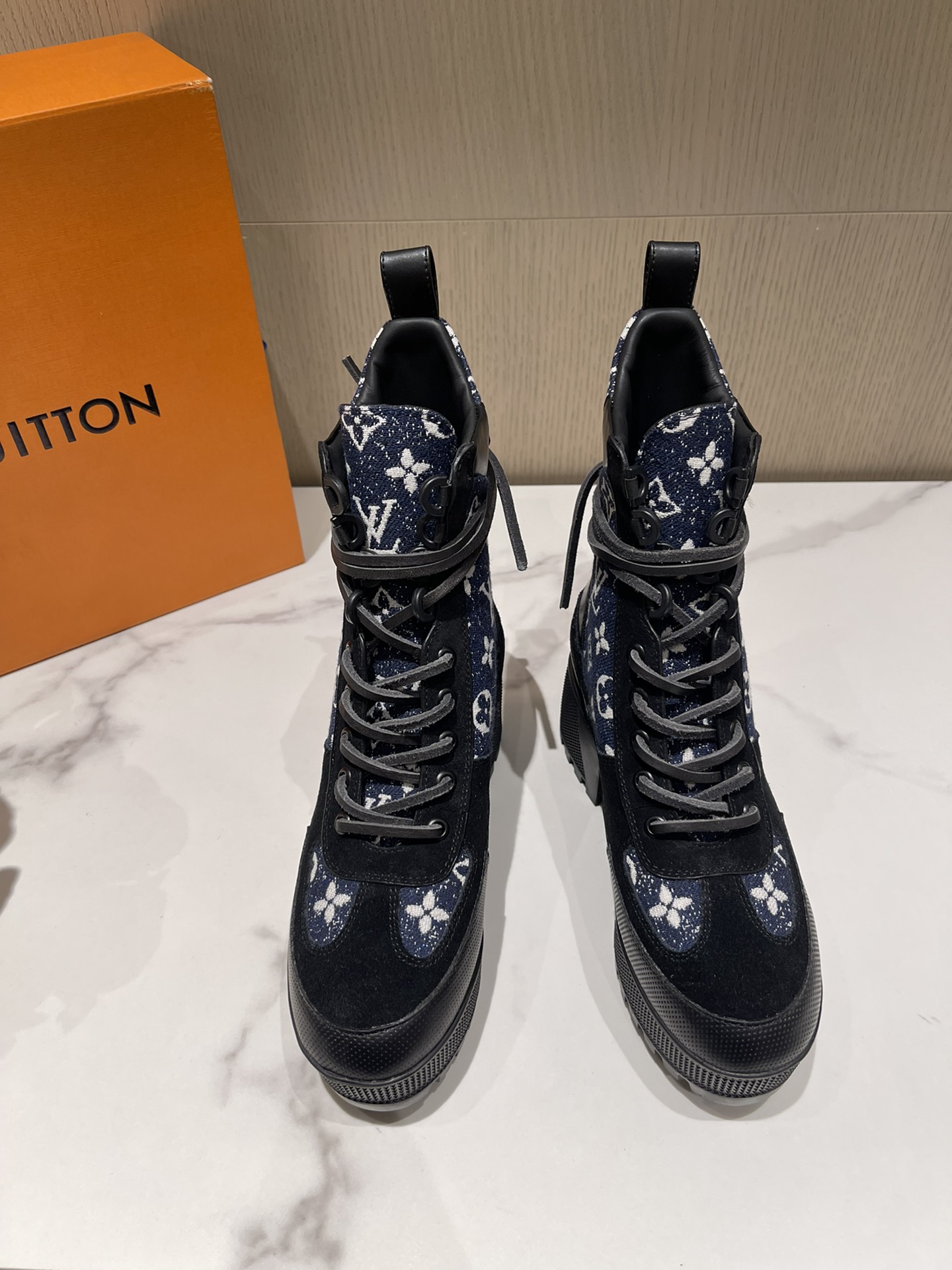 这款鞋子是AAAAA 1:1 质量 (非常棒). 使用了和原版一模一样的材料. 商标部分也保持了和路易威登/Louis Vuitton一样. 图片拍摄是实物鞋子拍摄, 您所收到的实物保证和我们图片一模一样.