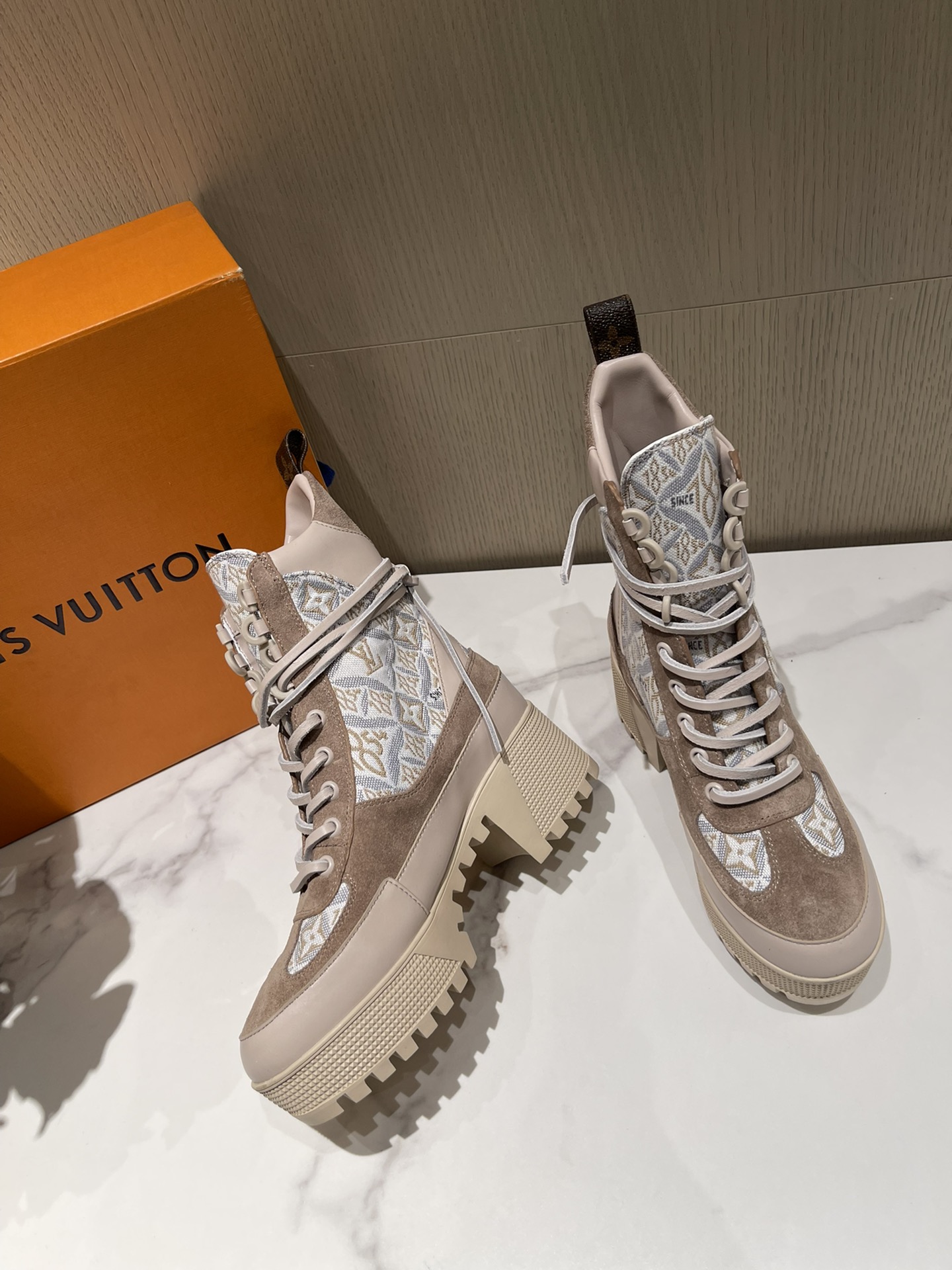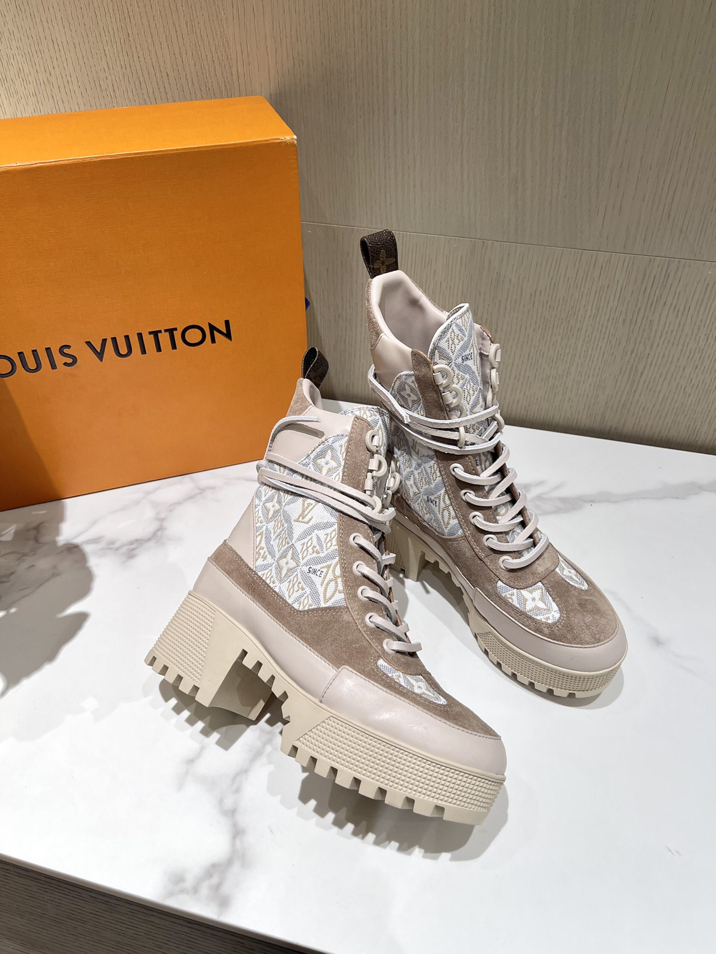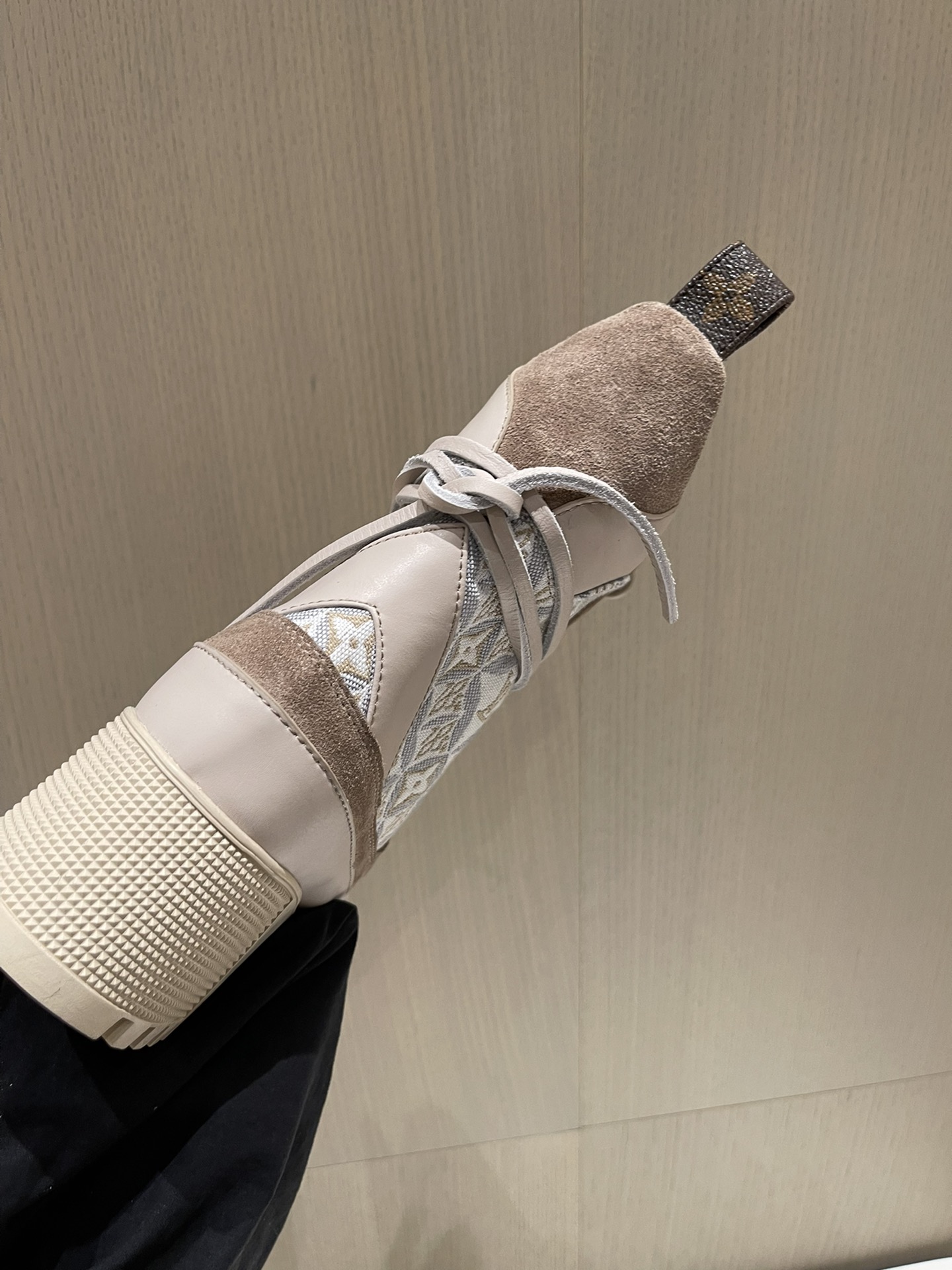 这款鞋子是AAAAA 1:1 质量 (非常棒). 使用了和原版一模一样的材料. 商标部分也保持了和路易威登/Louis Vuitton一样. 图片拍摄是实物鞋子拍摄, 您所收到的实物保证和我们图片一模一样.