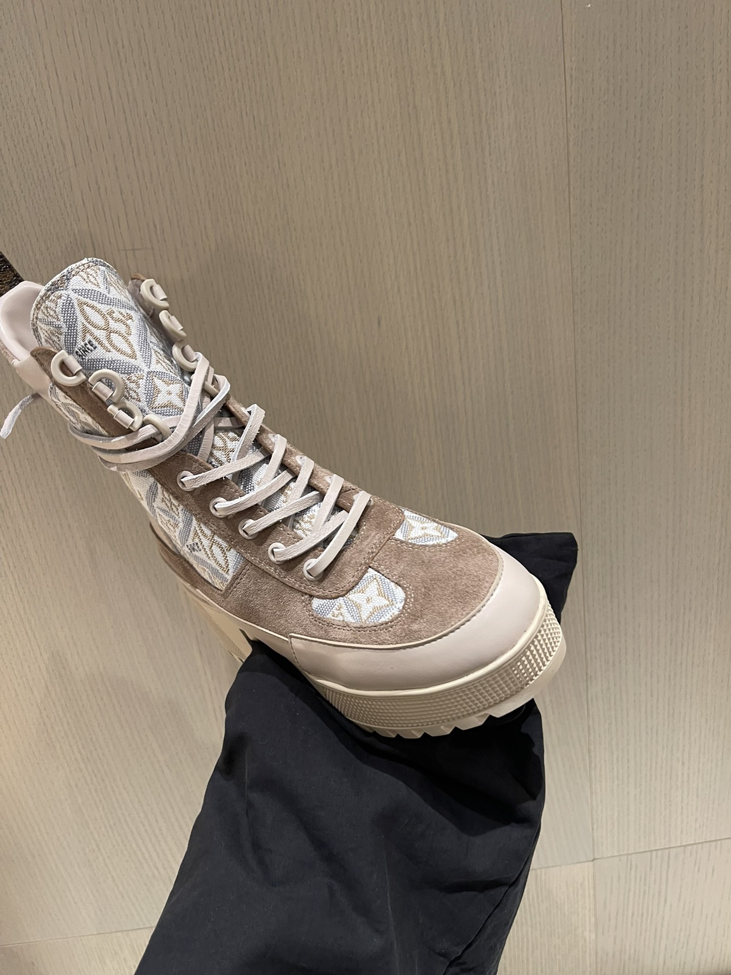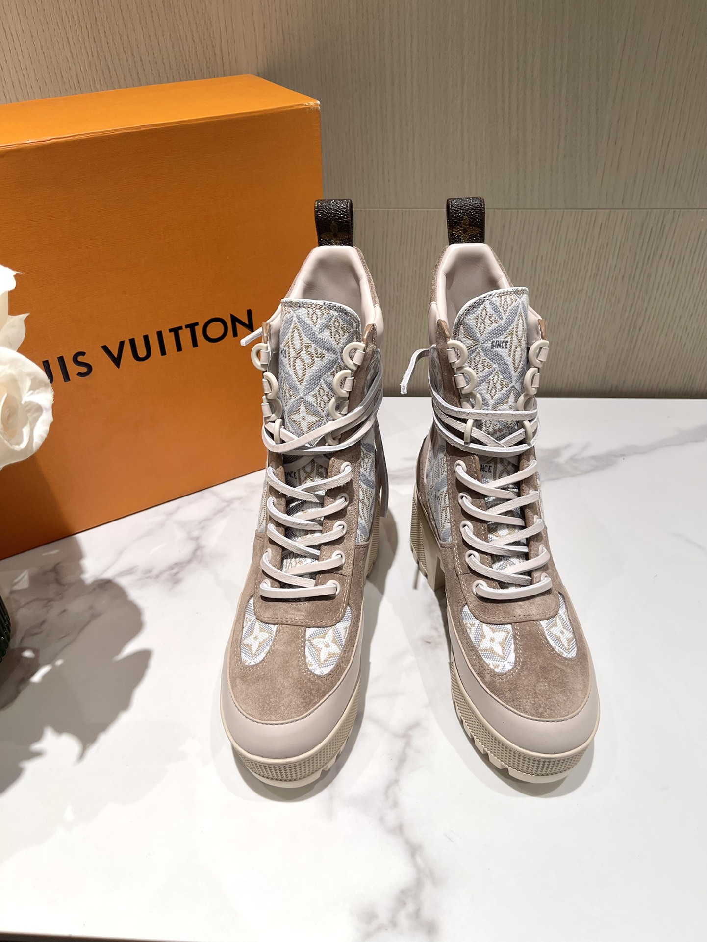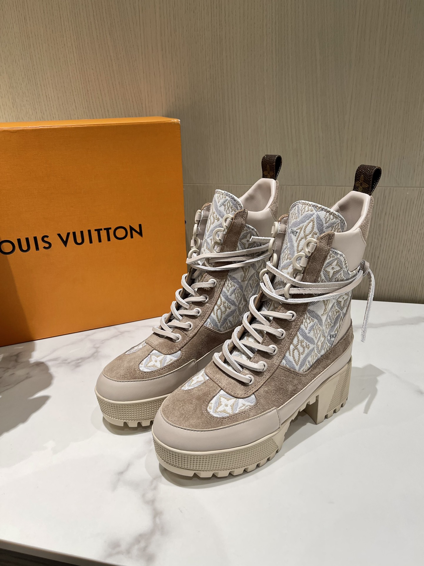 这款鞋子是AAAAA 1:1 质量 (非常棒). 使用了和原版一模一样的材料. 商标部分也保持了和路易威登/Louis Vuitton一样. 图片拍摄是实物鞋子拍摄, 您所收到的实物保证和我们图片一模一样.