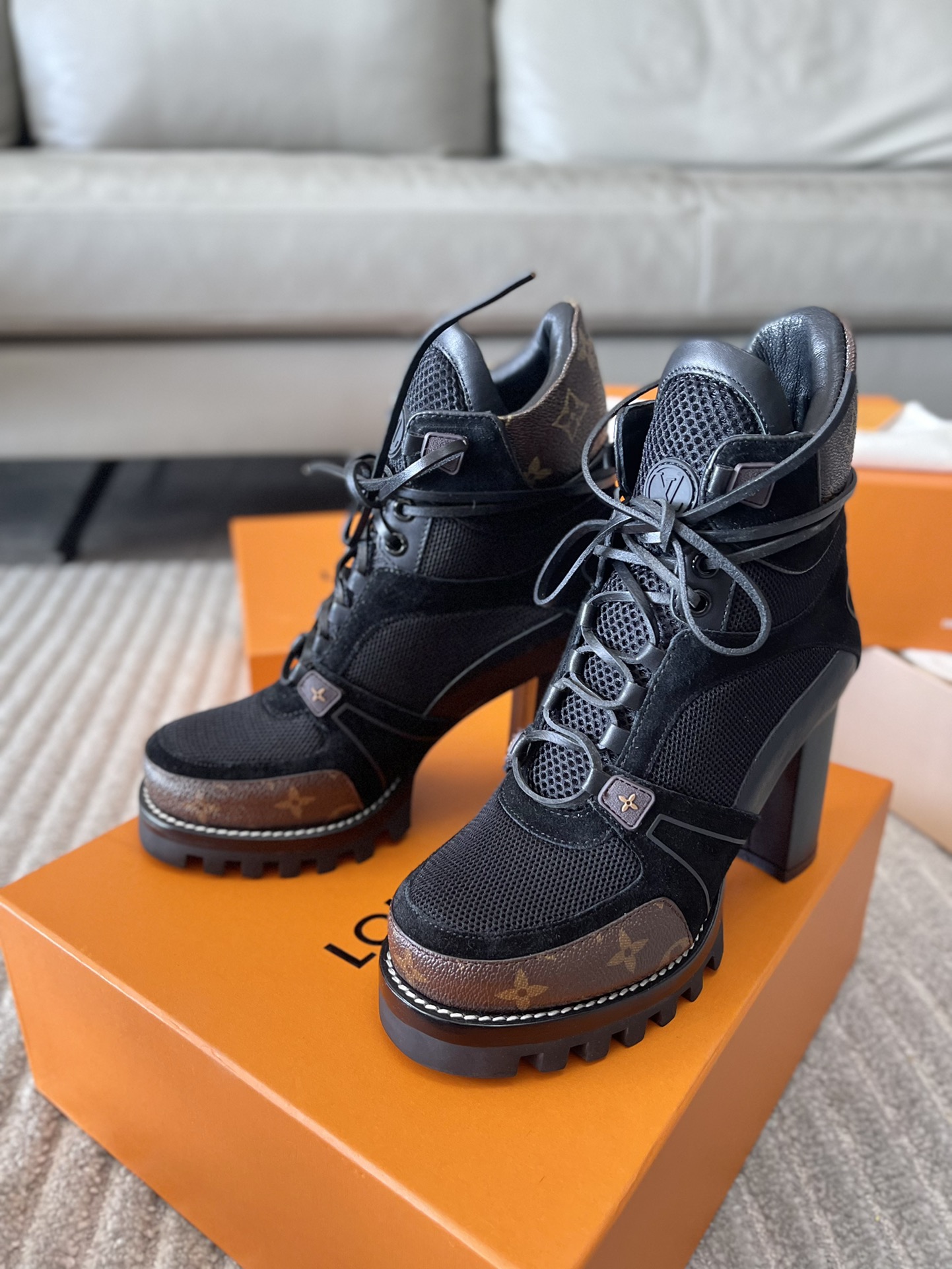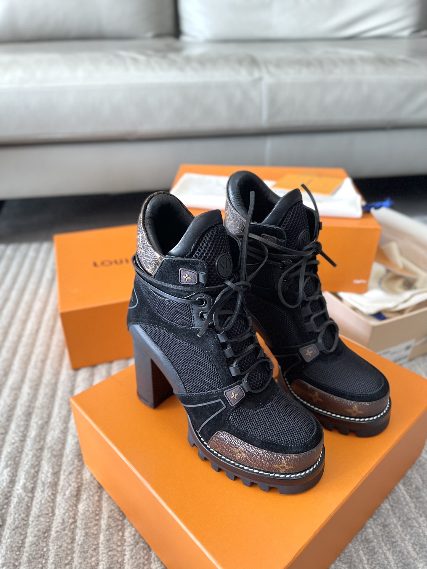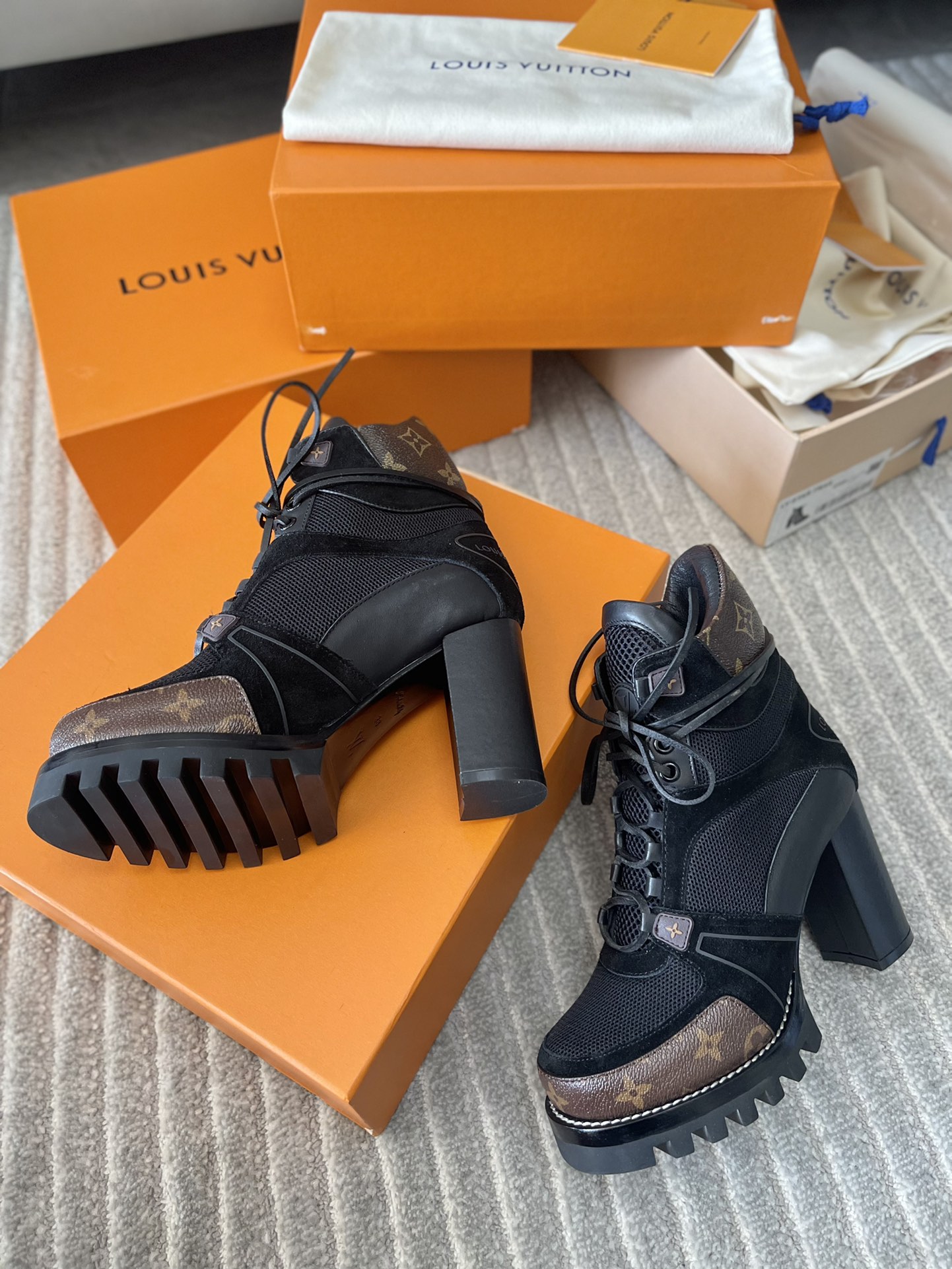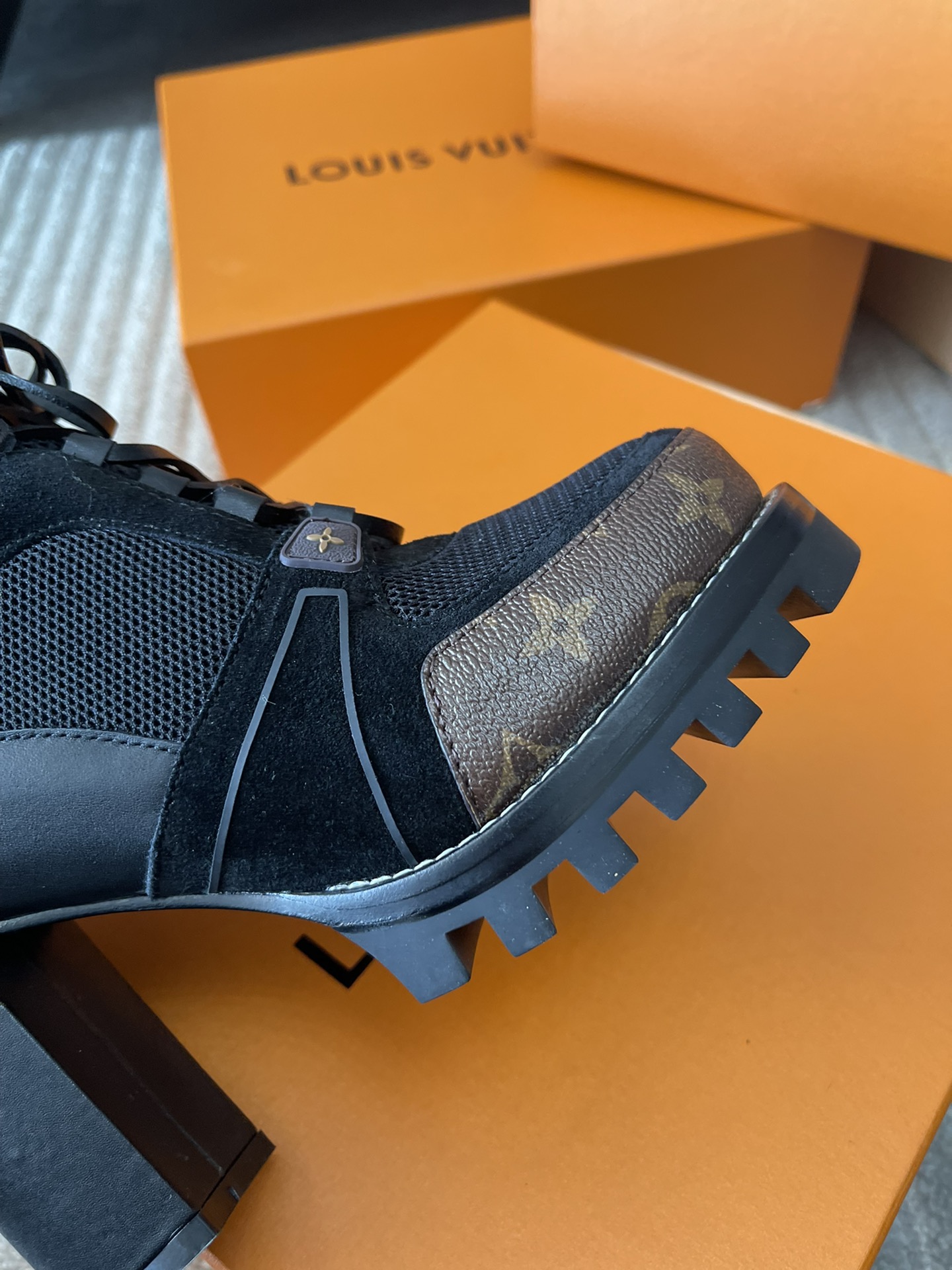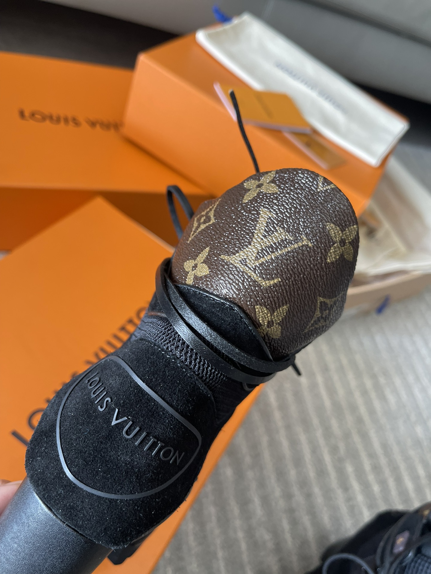这款鞋子是AAAAA 1:1 质量 (非常棒). 使用了和原版一模一样的材料. 商标部分也保持了和路易威登/Louis Vuitton一样. 图片拍摄是实物鞋子拍摄, 您所收到的实物保证和我们图片一模一样.