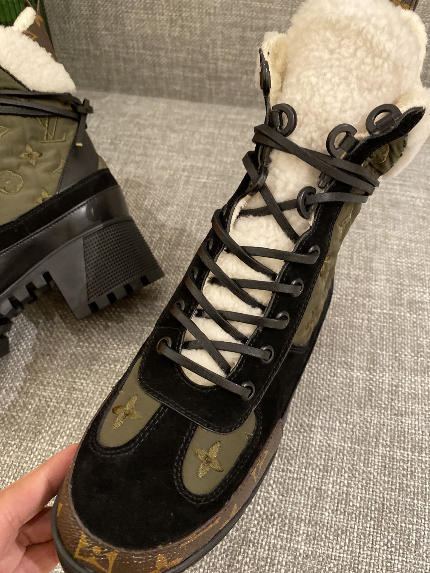 这款鞋子是AAAAA 1:1 质量 (非常棒). 使用了和原版一模一样的材料. 商标部分也保持了和路易威登/Louis Vuitton一样. 图片拍摄是实物鞋子拍摄, 您所收到的实物保证和我们图片一模一样.