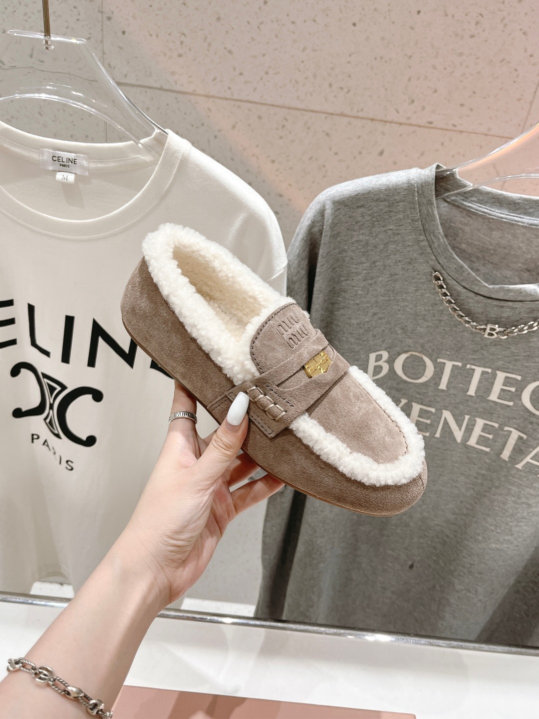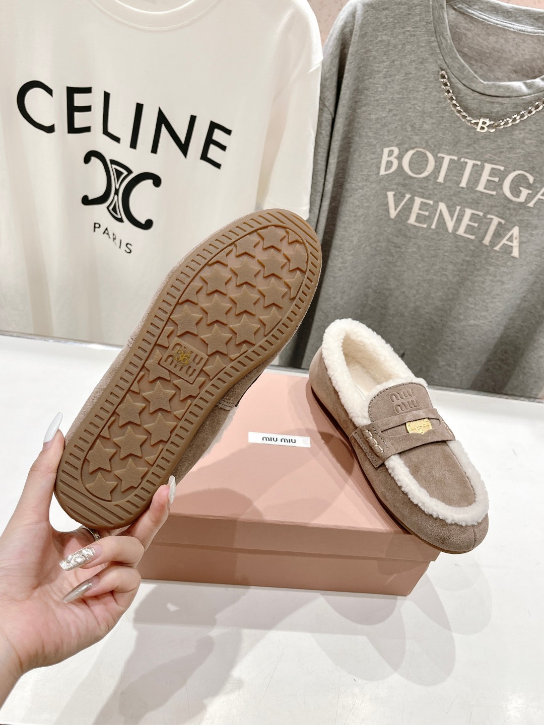 这款鞋子是AAAAA 1:1 质量 (非常棒). 使用了和原版一模一样的材料. 商标部分也保持了和缪缪/Miu Miu一样. 图片拍摄是实物鞋子拍摄, 您所收到的实物保证和我们图片一模一样.