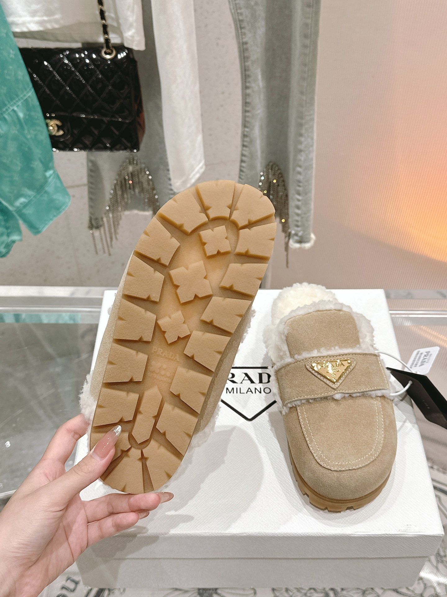 这款鞋子是AAAAA 1:1 质量 (非常棒). 使用了和原版一模一样的材料. 商标部分也保持了和普拉达/Prada一样. 图片拍摄是实物鞋子拍摄, 您所收到的实物保证和我们图片一模一样.
