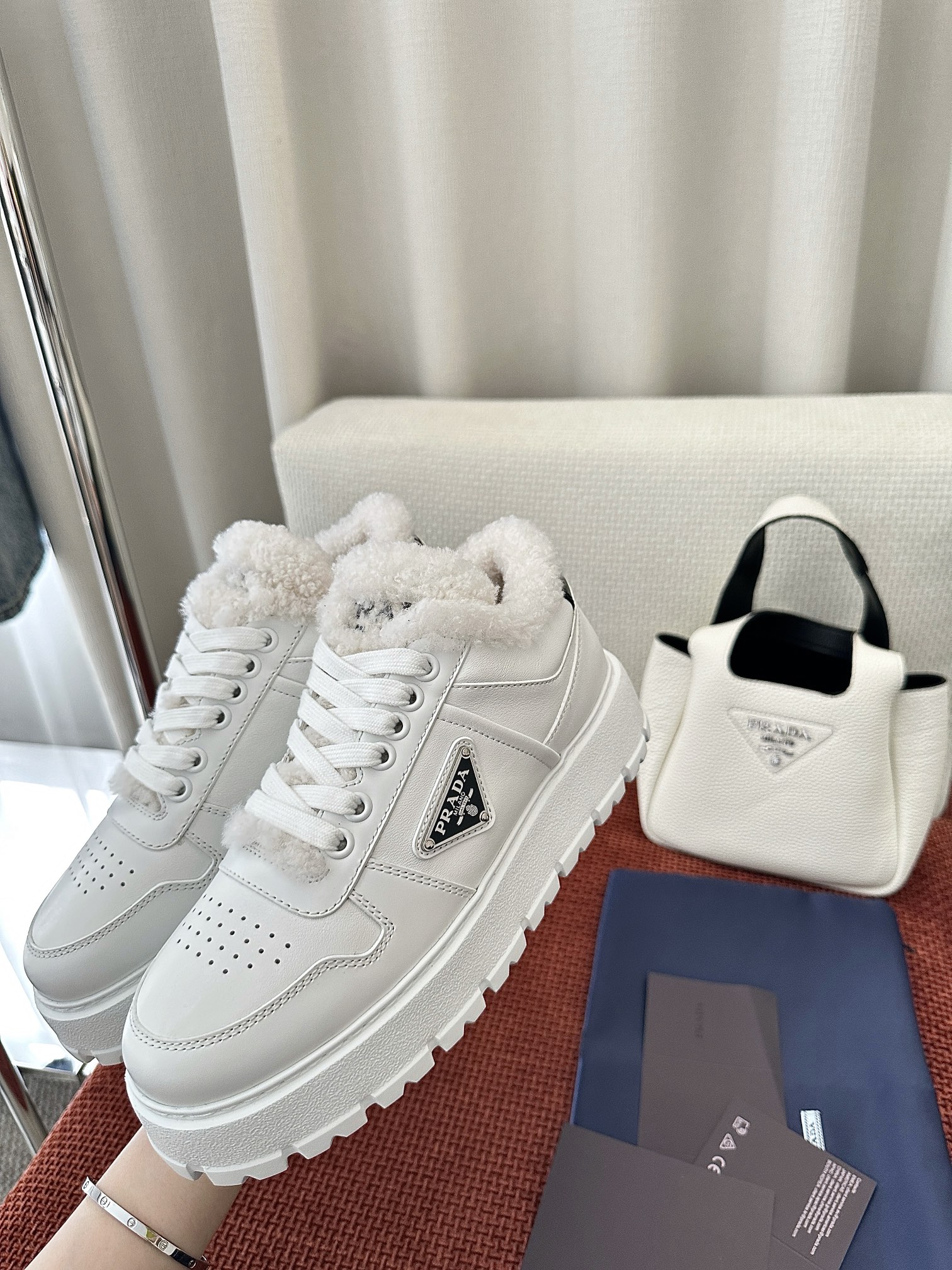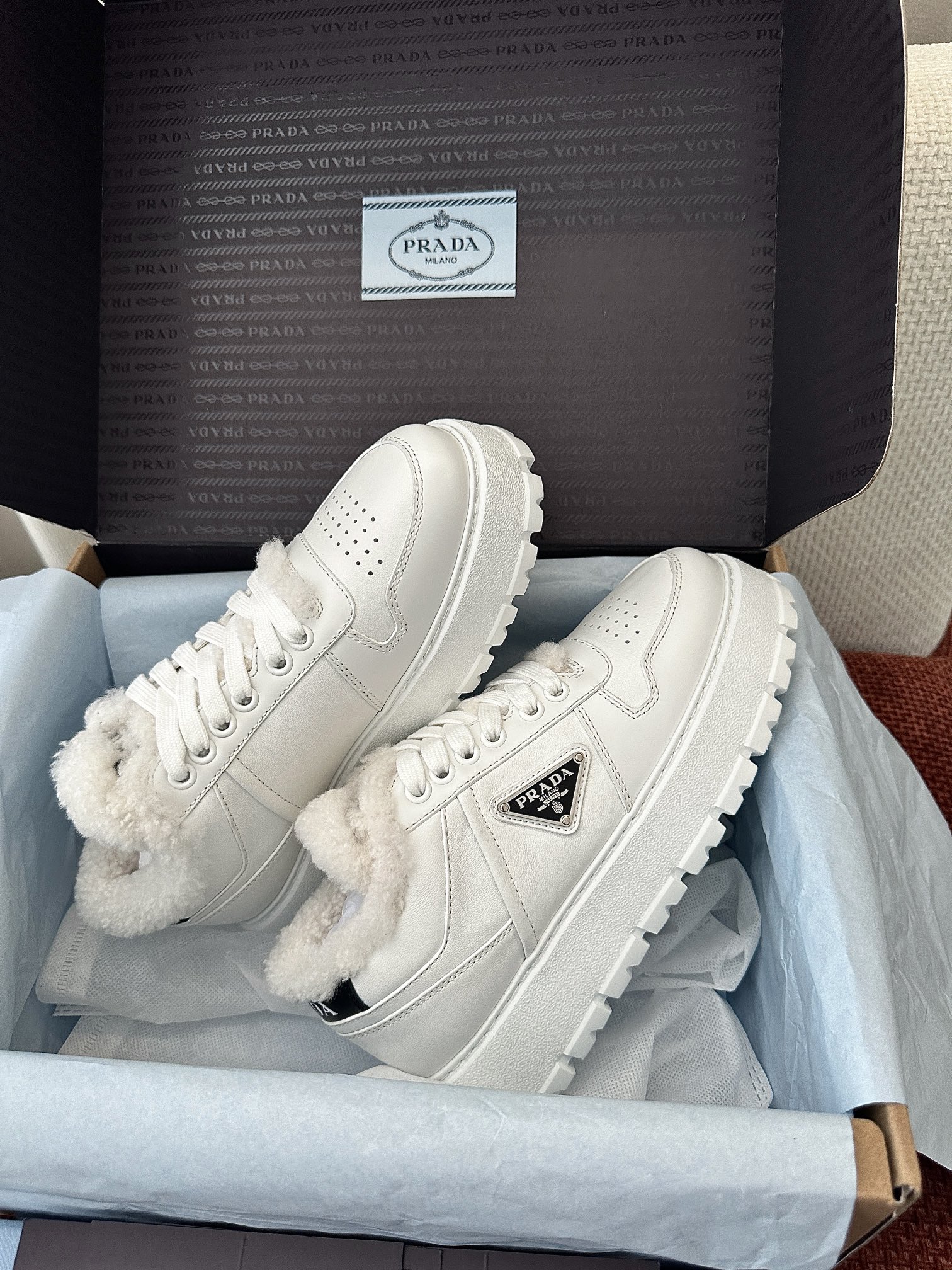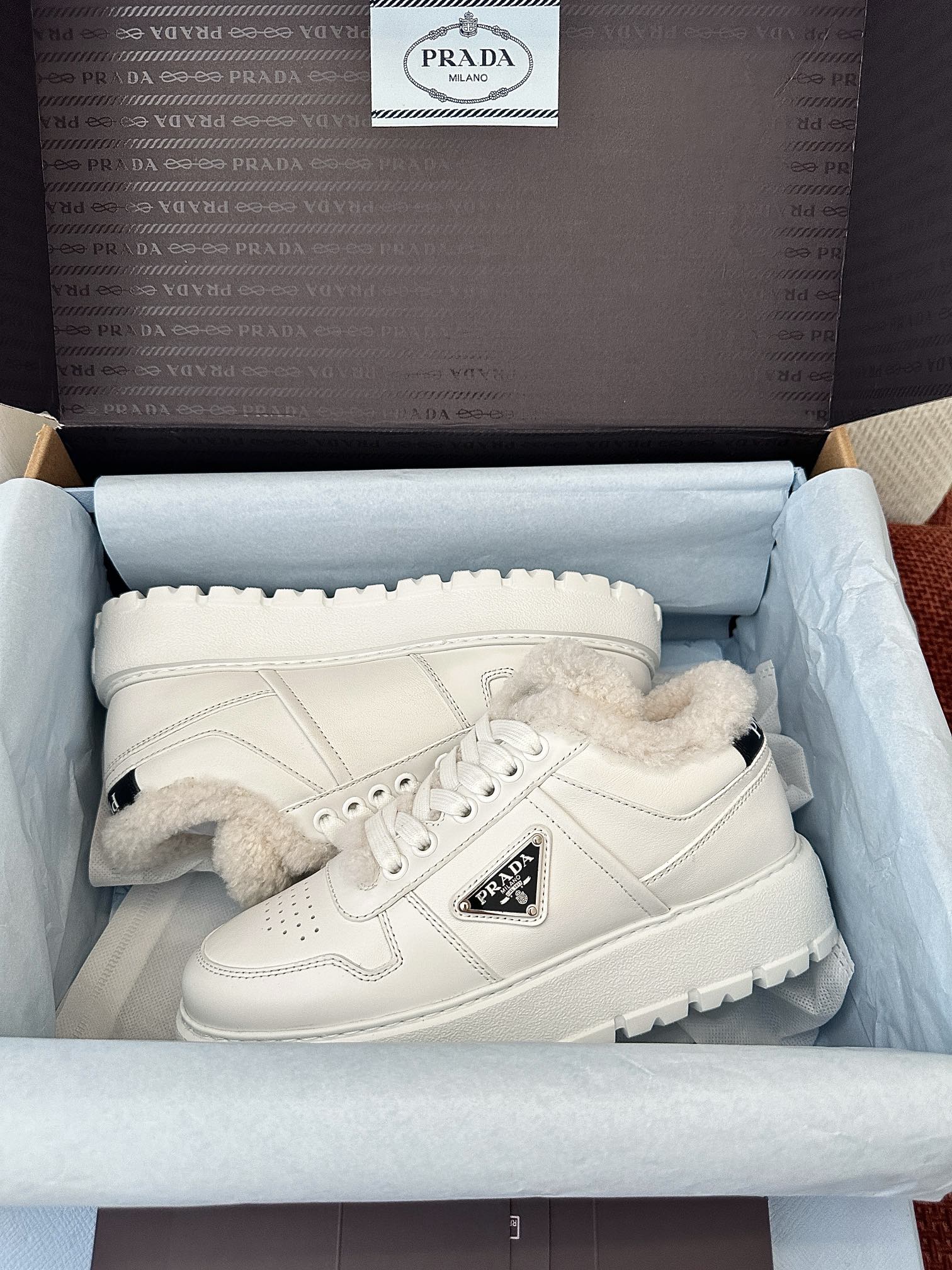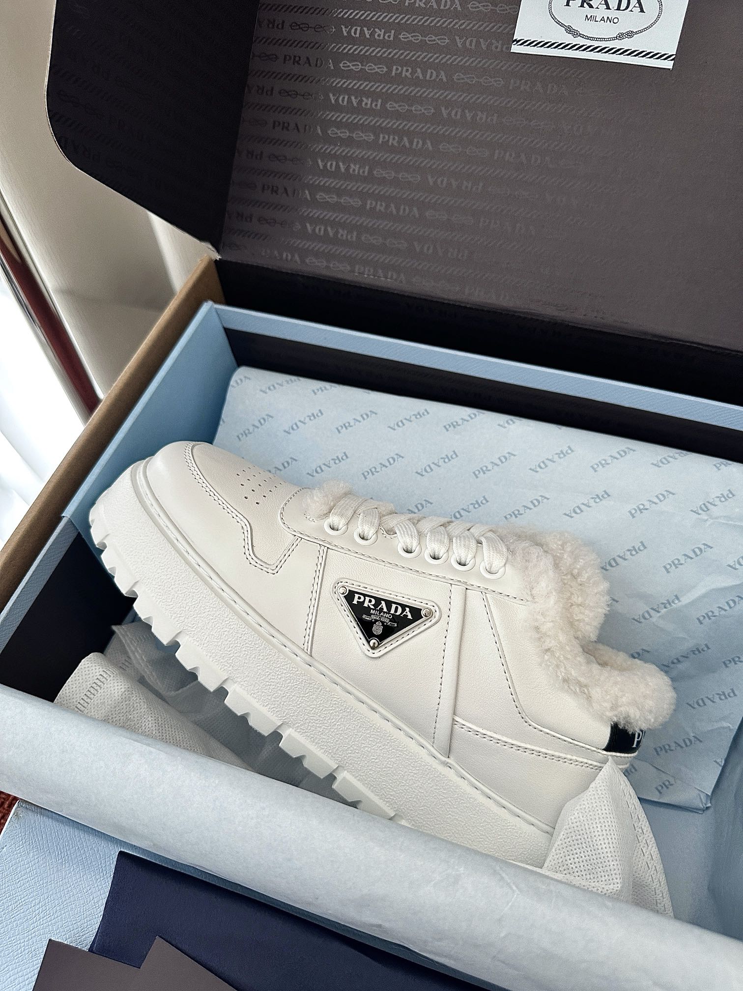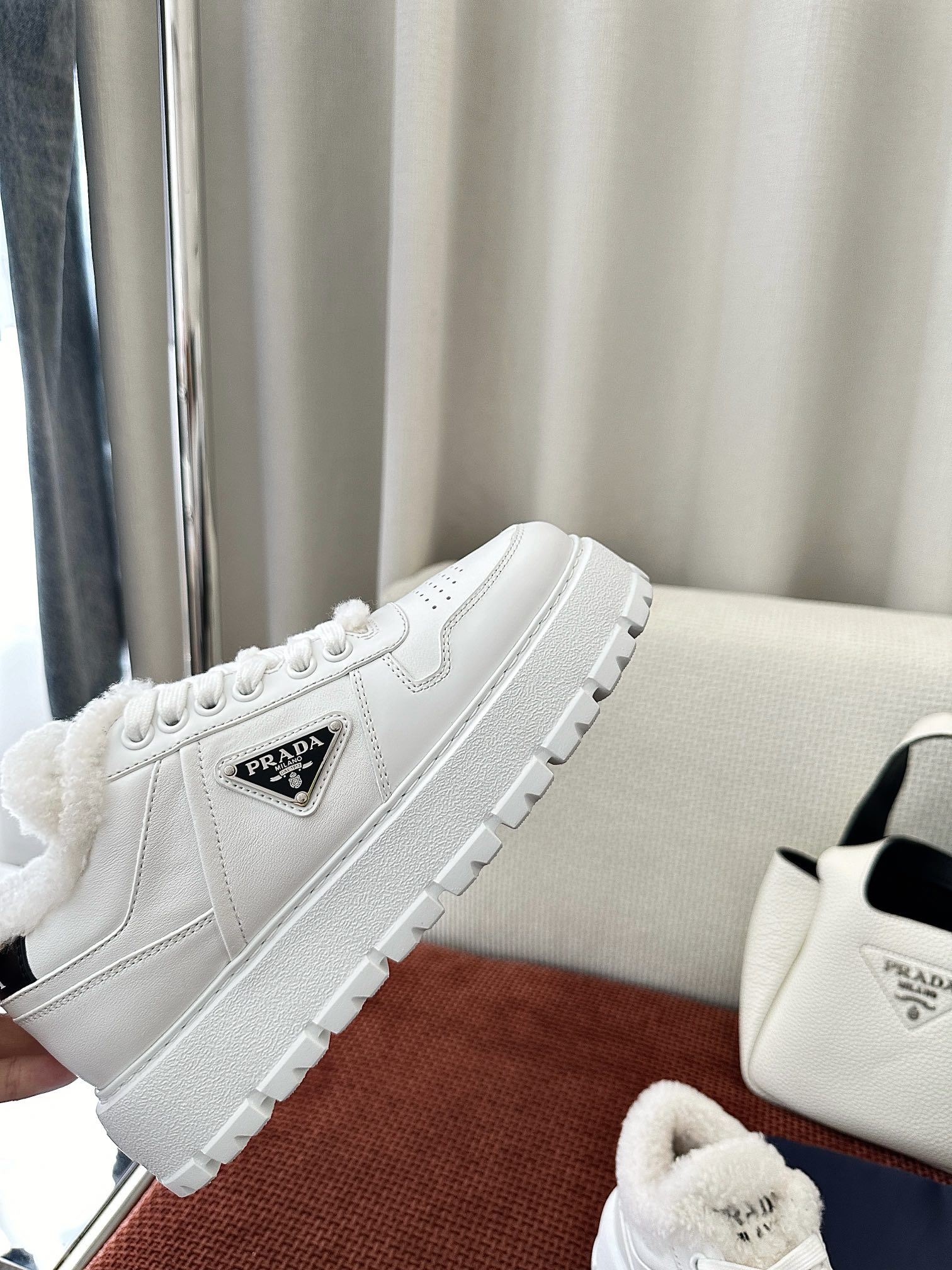 这款鞋子是AAAAA 1:1 质量 (非常棒). 使用了和原版一模一样的材料. 商标部分也保持了和普拉达/Prada一样. 图片拍摄是实物鞋子拍摄, 您所收到的实物保证和我们图片一模一样.
