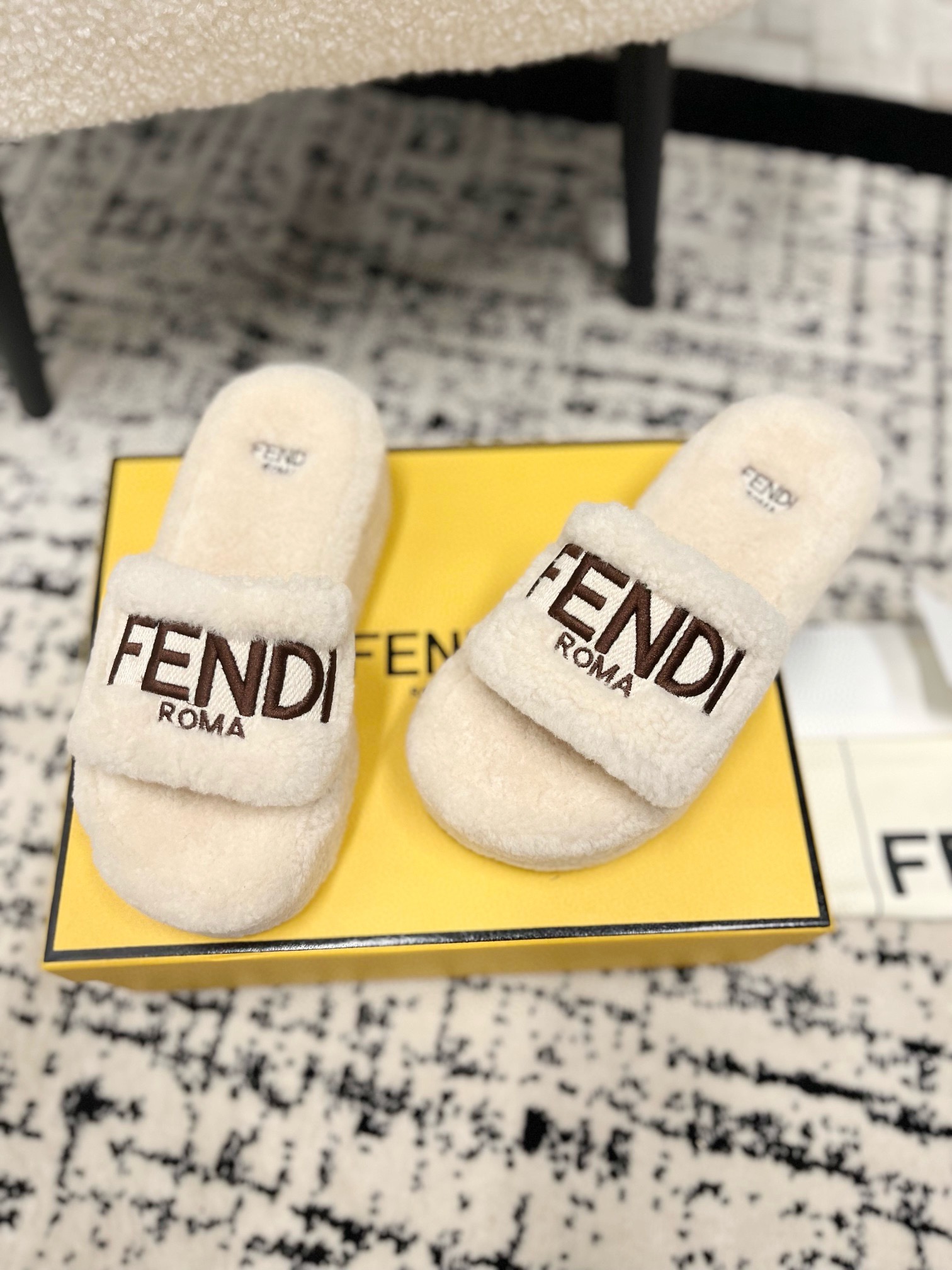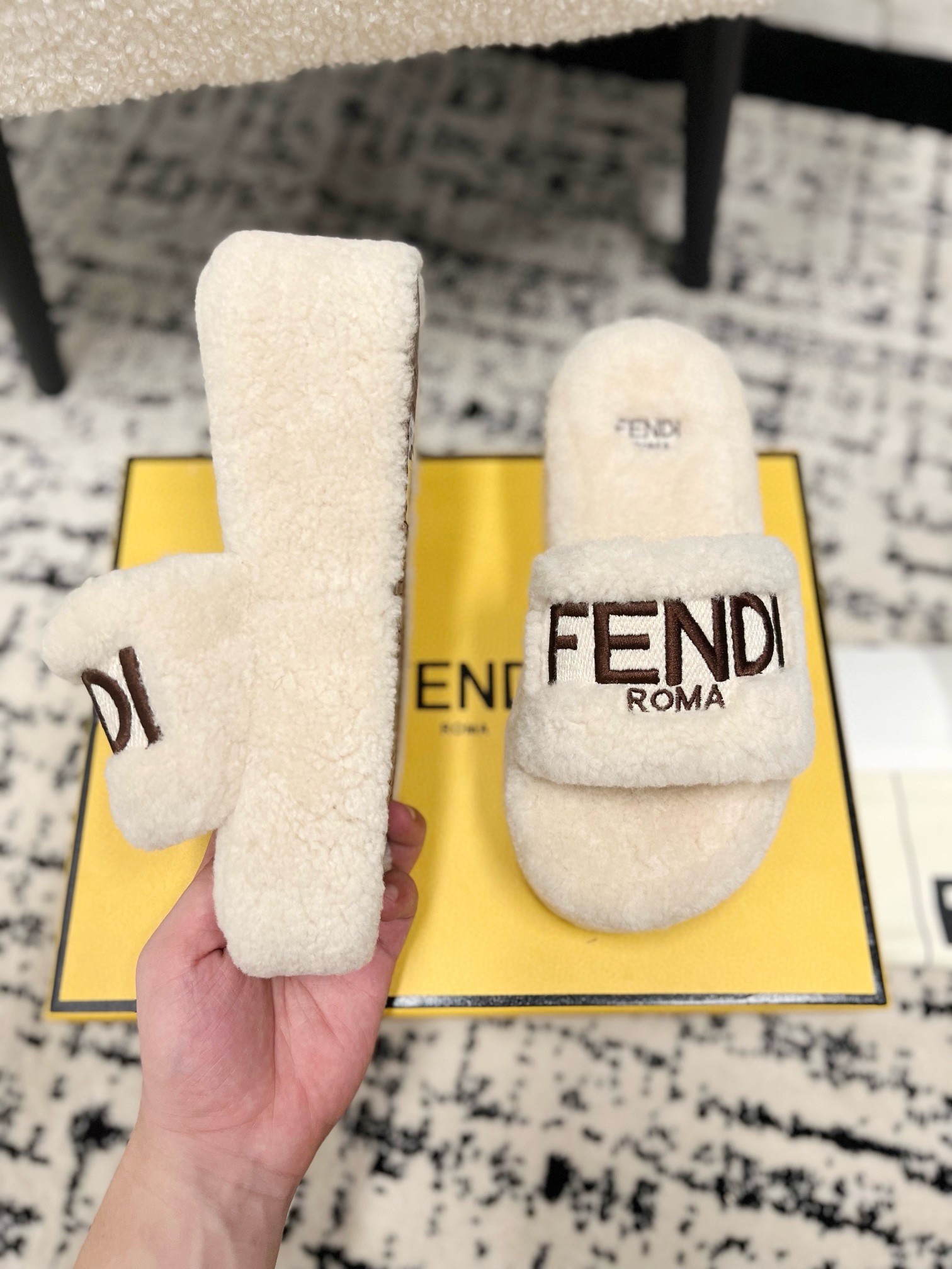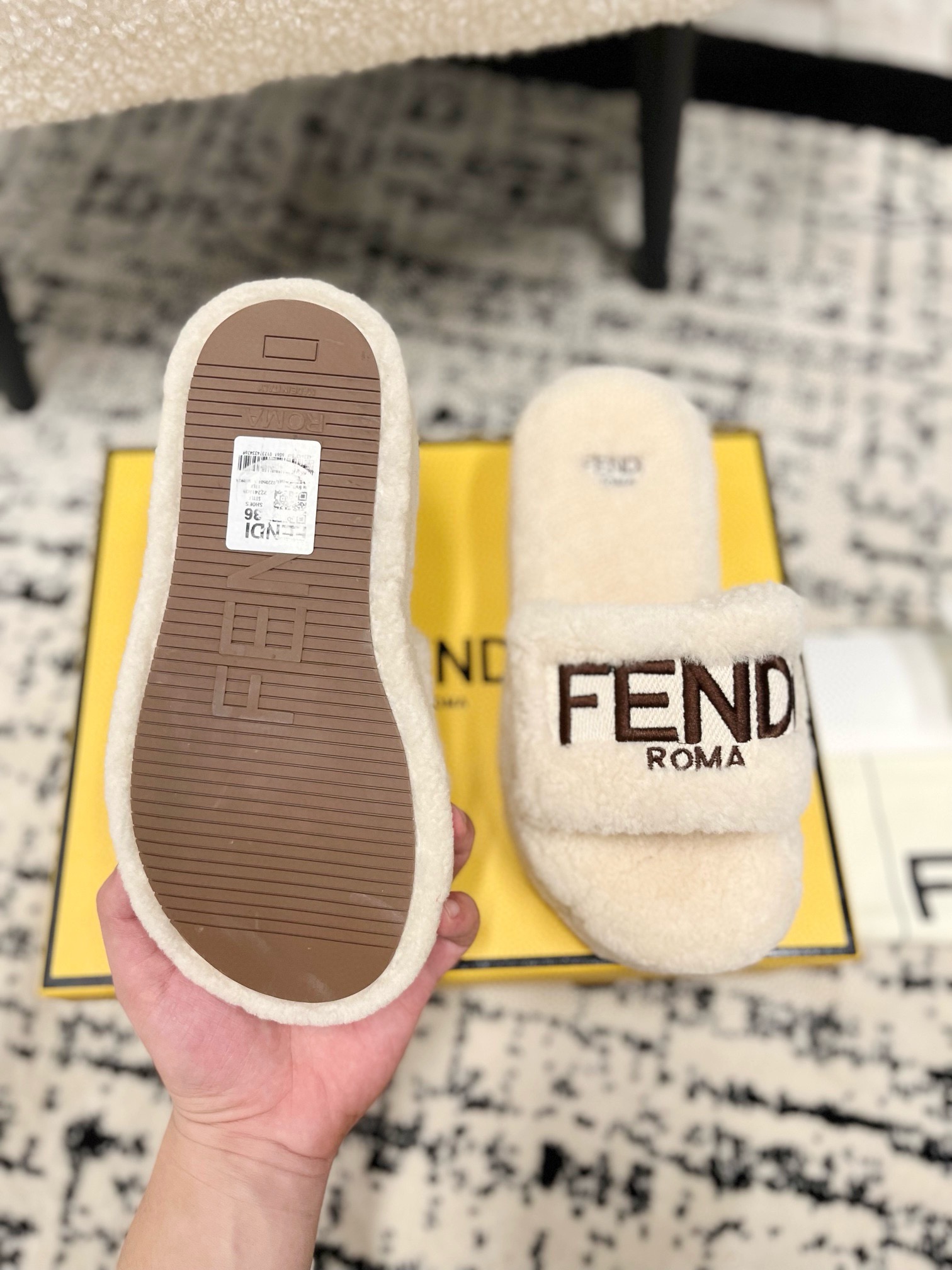 这款鞋子是AAAAA 1:1 质量 (非常棒). 使用了和原版一模一样的材料. 商标部分也保持了和芬迪/Fendi一样. 图片拍摄是实物鞋子拍摄, 您所收到的实物保证和我们图片一模一样.