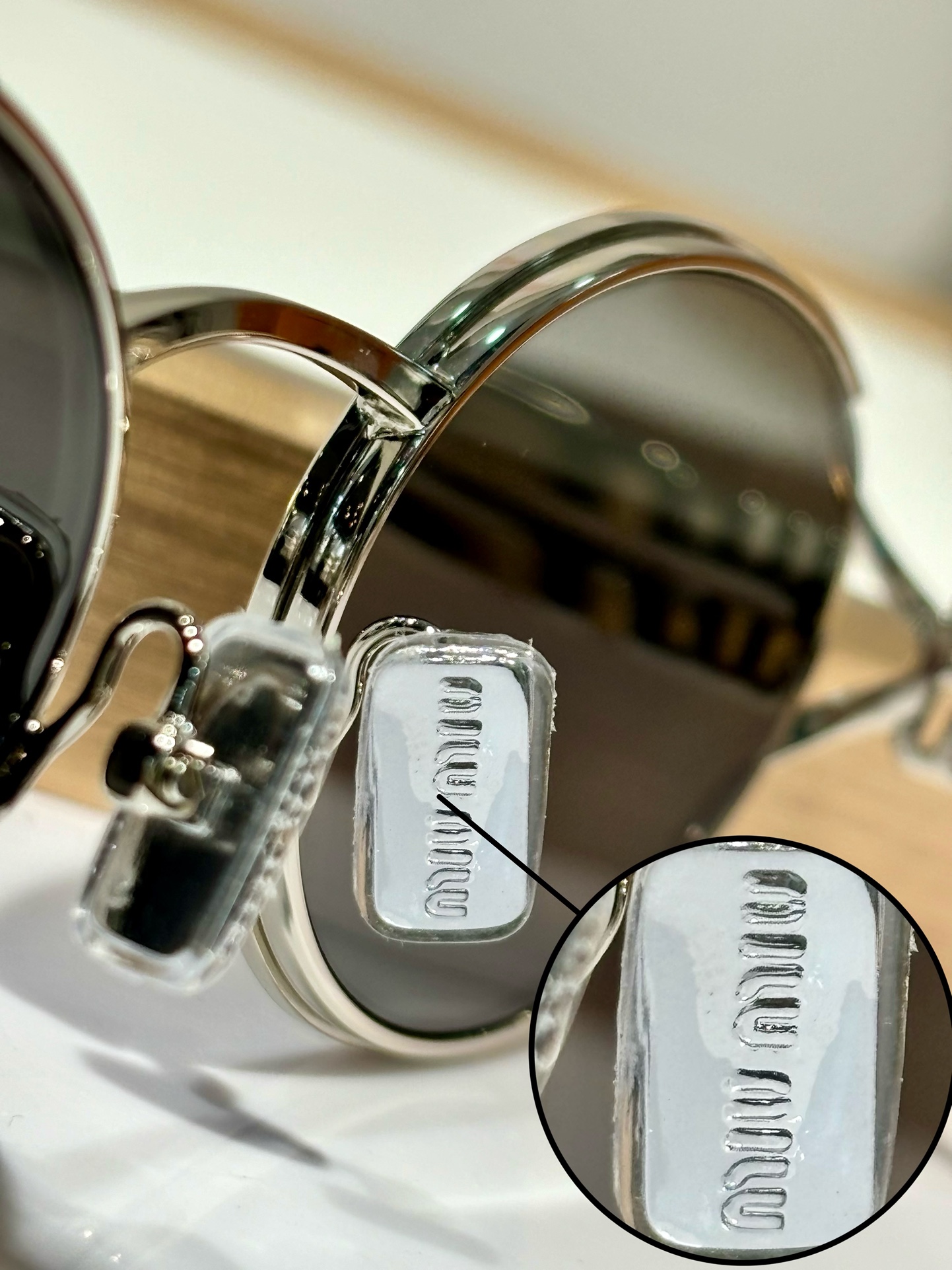 这款太阳眼镜是AAAAA 1:1 质量 (非常棒). 使用了和原版一模一样的材料. 商标部分也保持了和缪缪/Miu Miu一样. 图片拍摄是实物太阳眼镜拍摄, 您所收到的实物保证和我们图片一模一样.