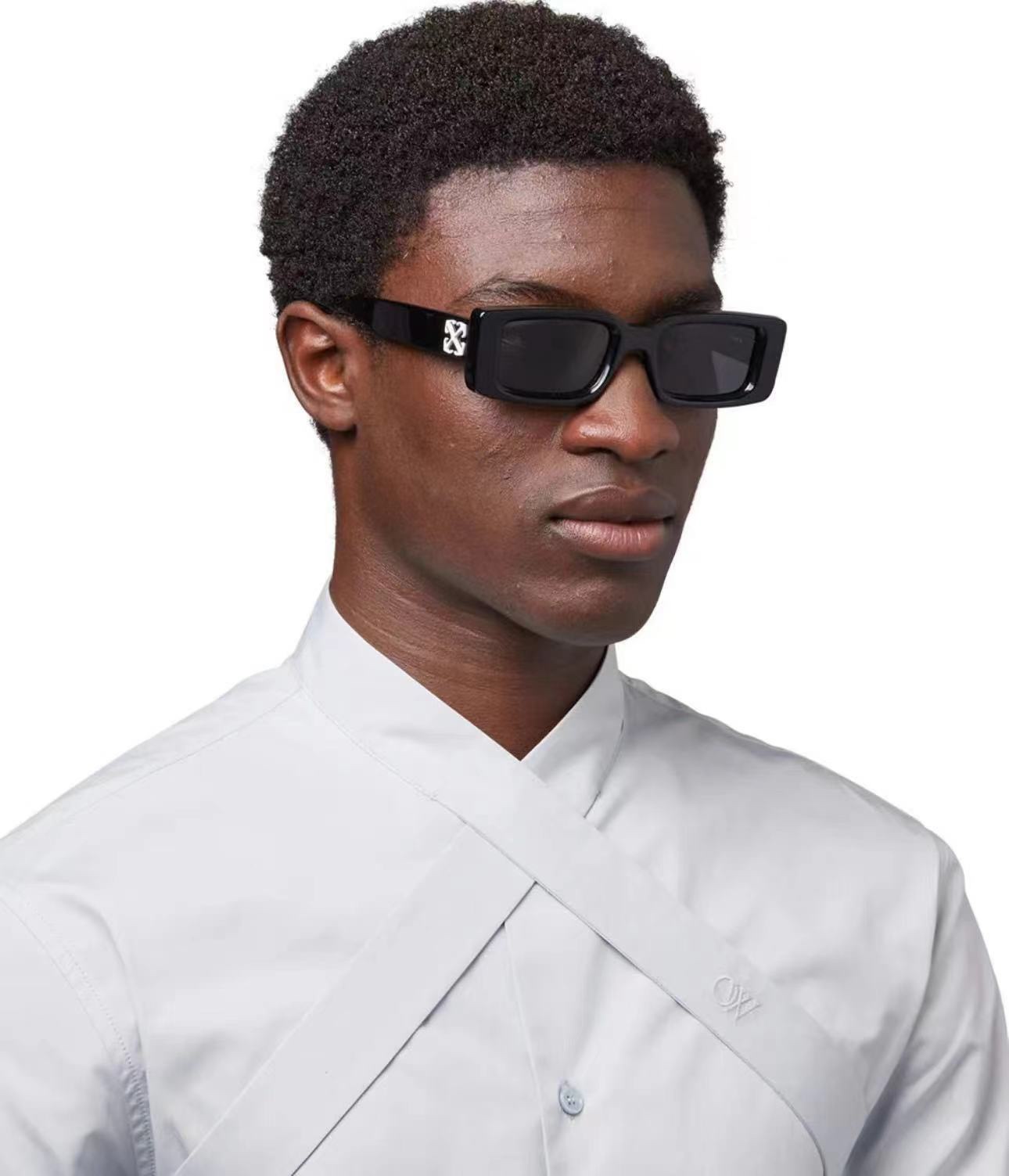 这款太阳眼镜是AAAAA 1:1 质量 (非常棒). 使用了和原版一模一样的材料. 商标部分也保持了和OFF WHITE一样. 图片拍摄是实物太阳眼镜拍摄, 您所收到的实物保证和我们图片一模一样.