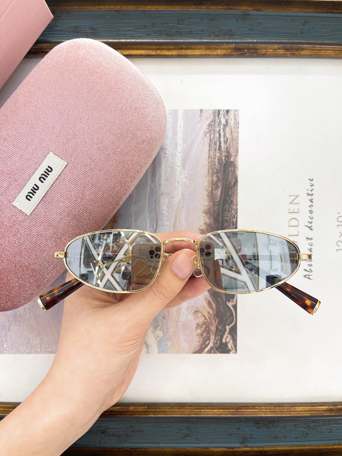 这款太阳眼镜是AAAAA 1:1 质量 (非常棒). 使用了和原版一模一样的材料. 商标部分也保持了和缪缪/Miu Miu一样. 图片拍摄是实物太阳眼镜拍摄, 您所收到的实物保证和我们图片一模一样.