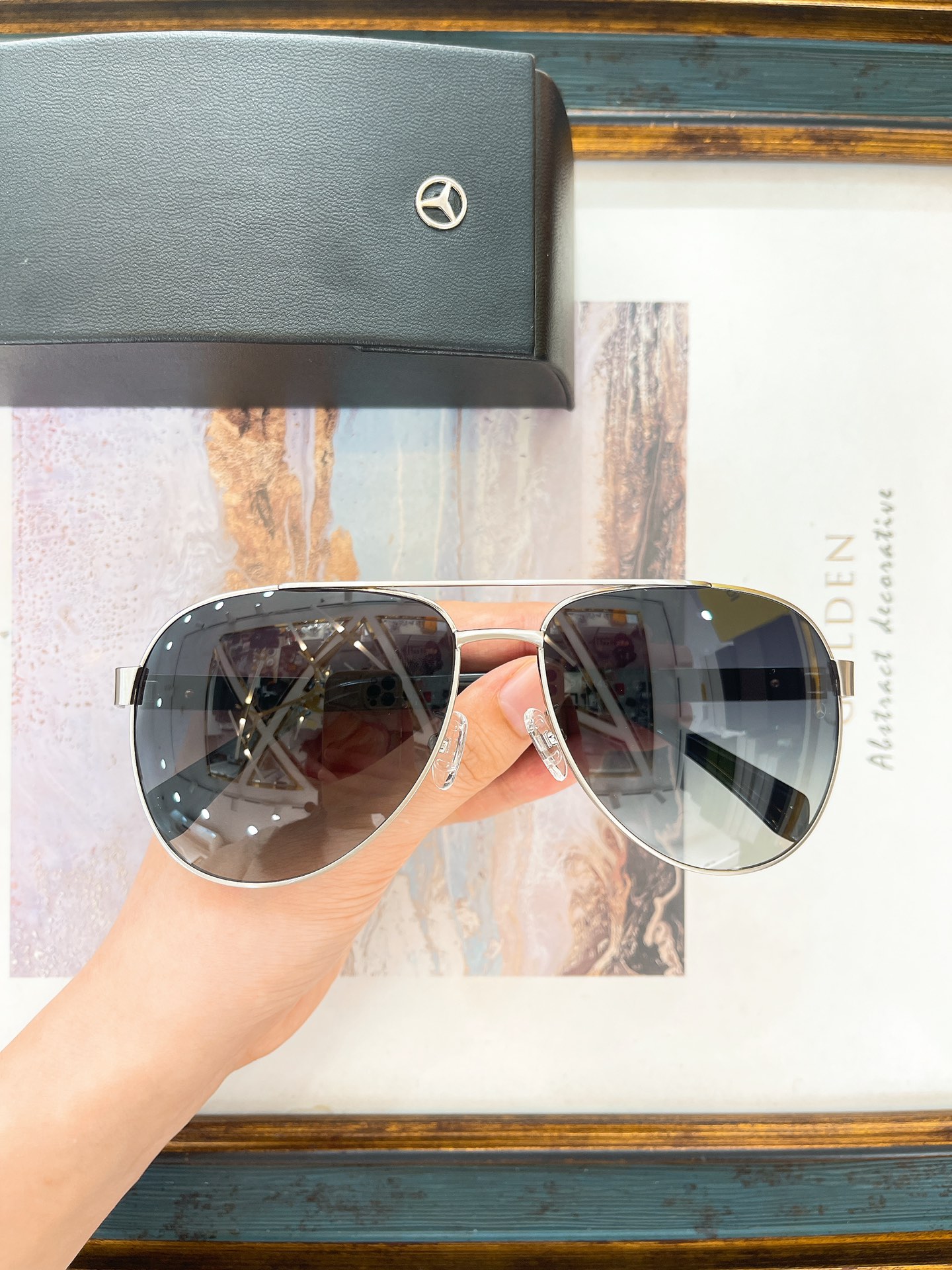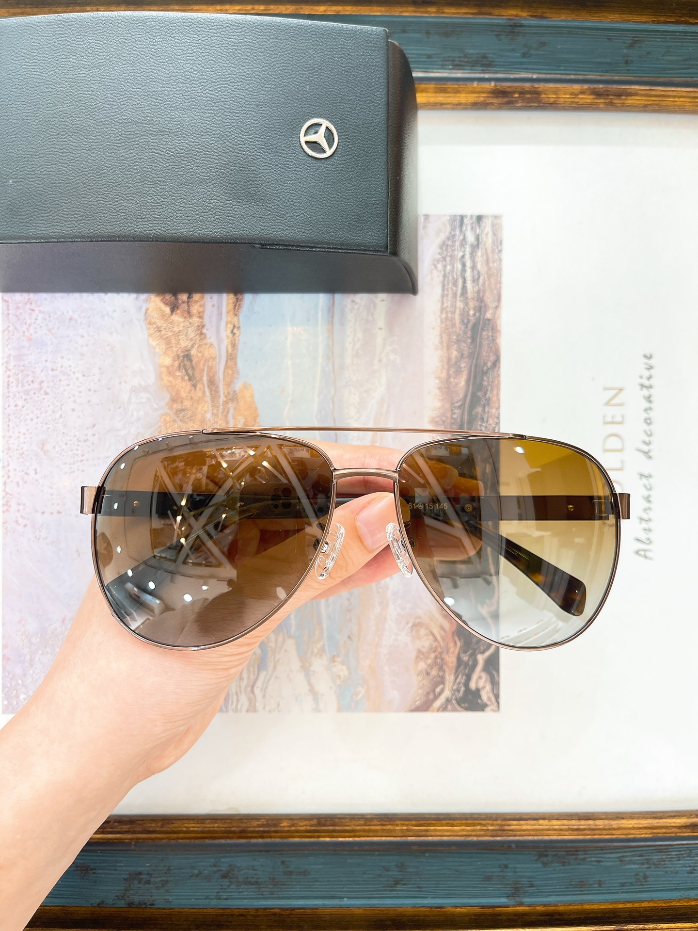 这款太阳眼镜是AAAAA 1:1 质量 (非常棒). 使用了和原版一模一样的材料. 商标部分也保持了和一样. 图片拍摄是实物太阳眼镜拍摄, 您所收到的实物保证和我们图片一模一样.