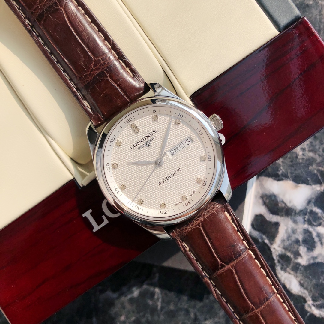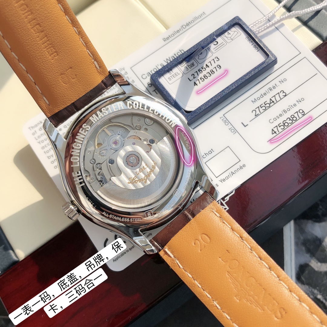 这款手表是AAAAA 1:1 质量 (非常棒). 使用了和原版一模一样的材料. 商标部分也保持了和浪琴/Longines一样. 图片拍摄是实物手表拍摄, 您所收到的实物保证和我们图片一模一样.