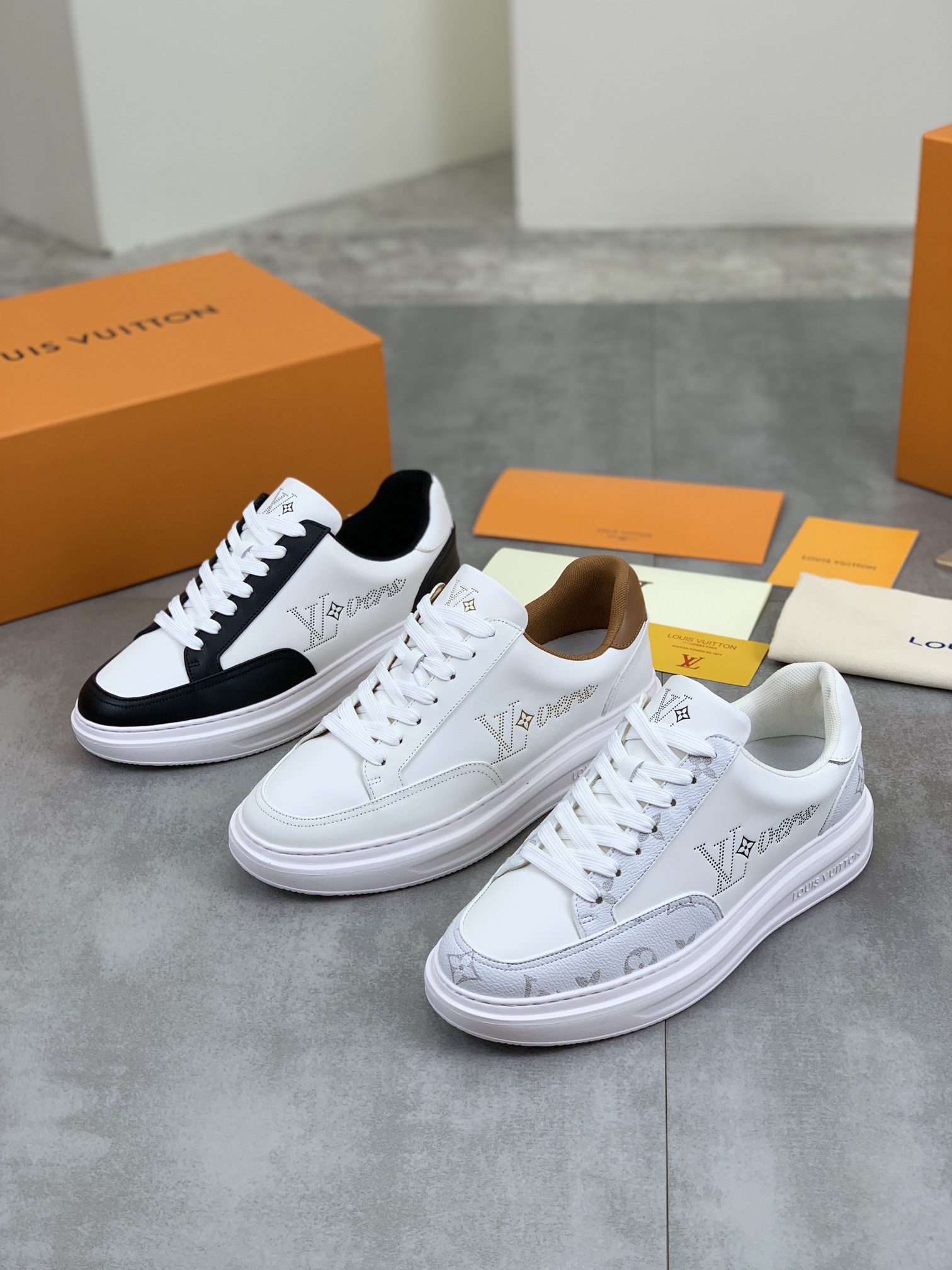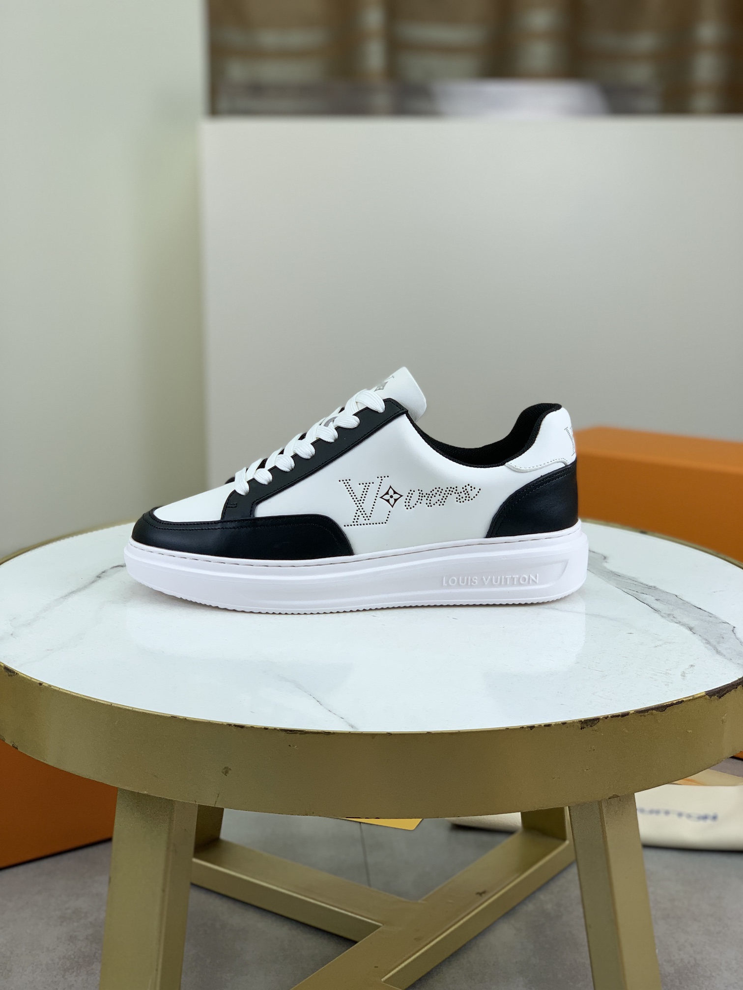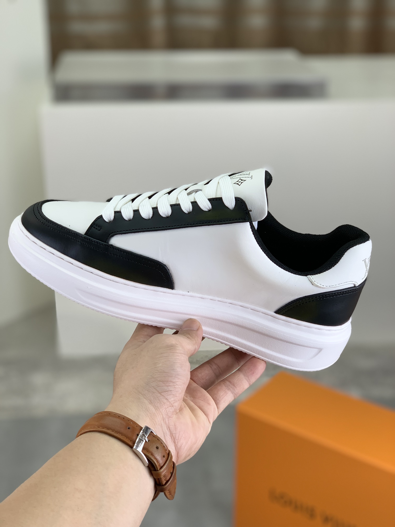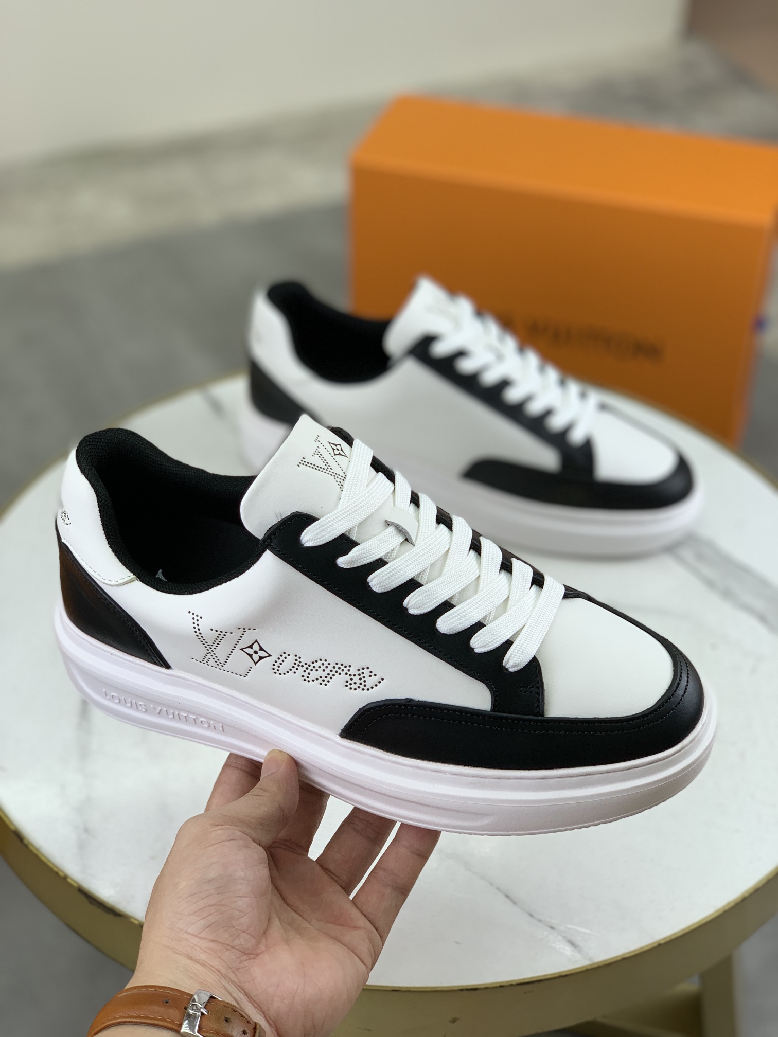 这款鞋子是AAAAA 1:1 质量 (非常棒). 使用了和原版一模一样的材料. 商标部分也保持了和路易威登/Louis Vuitton一样. 图片拍摄是实物鞋子拍摄, 您所收到的实物保证和我们图片一模一样.