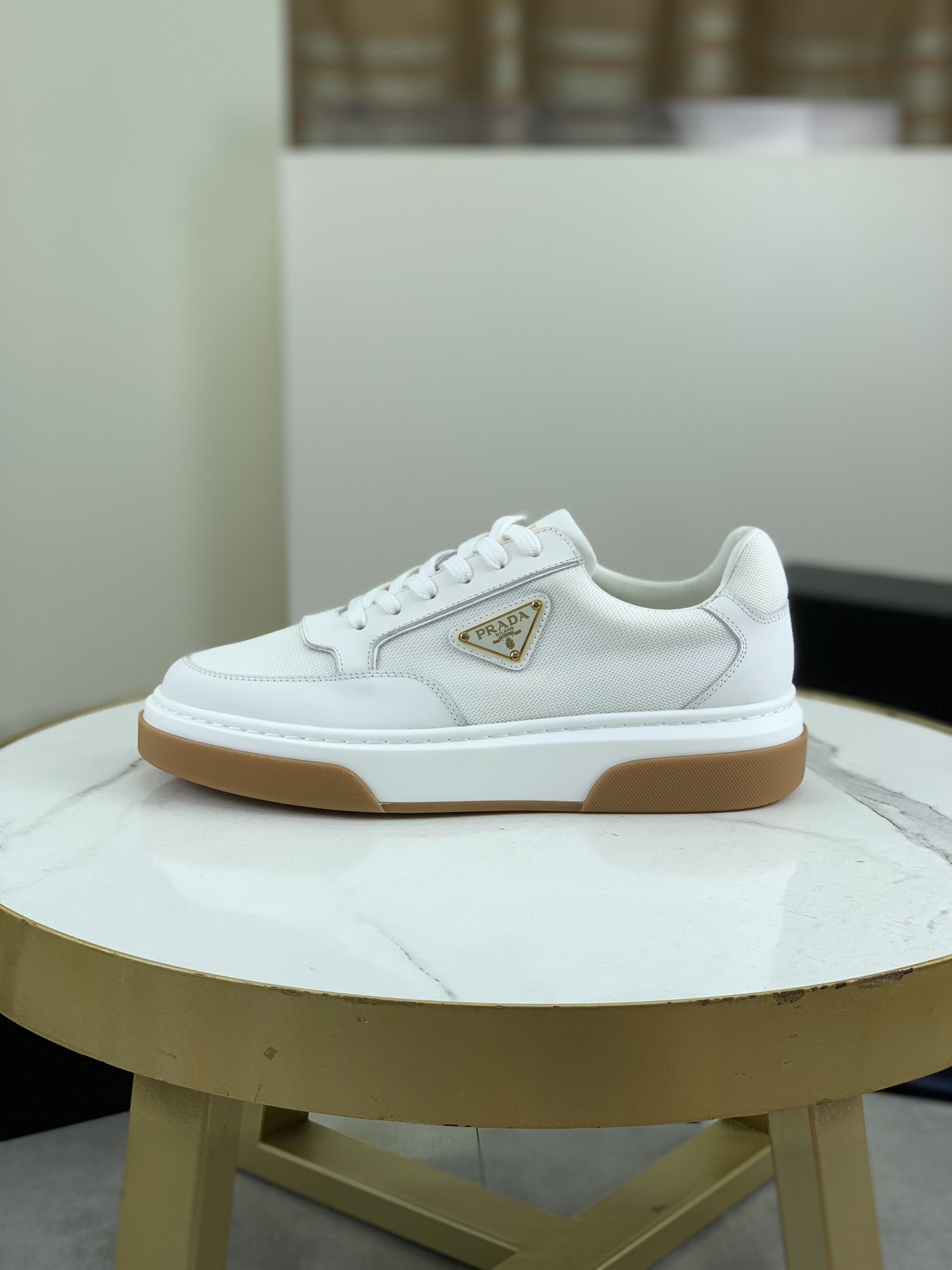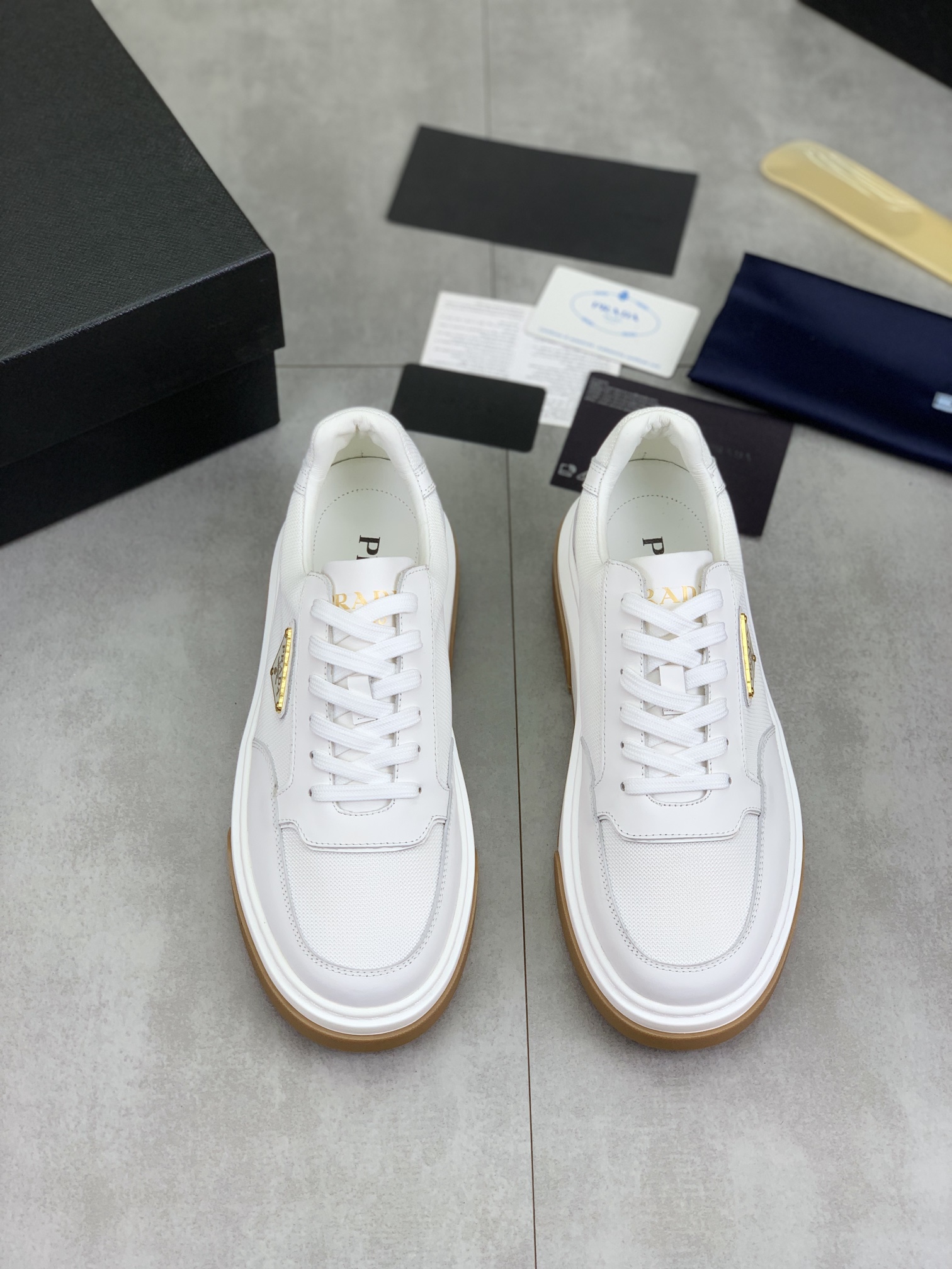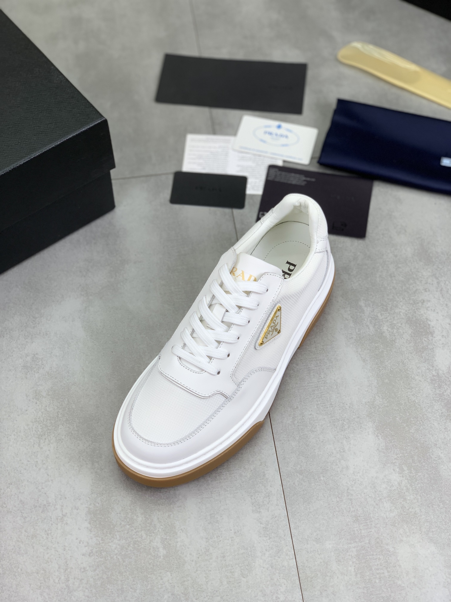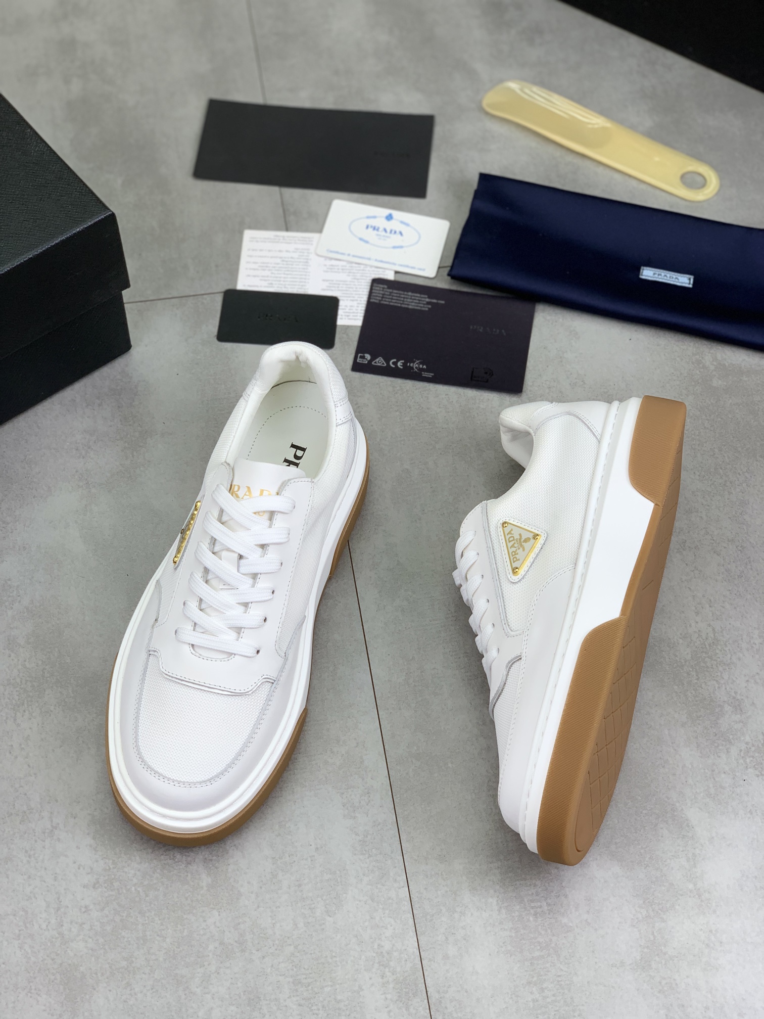 这款鞋子是AAAAA 1:1 质量 (非常棒). 使用了和原版一模一样的材料. 商标部分也保持了和普拉达/Prada一样. 图片拍摄是实物鞋子拍摄, 您所收到的实物保证和我们图片一模一样.