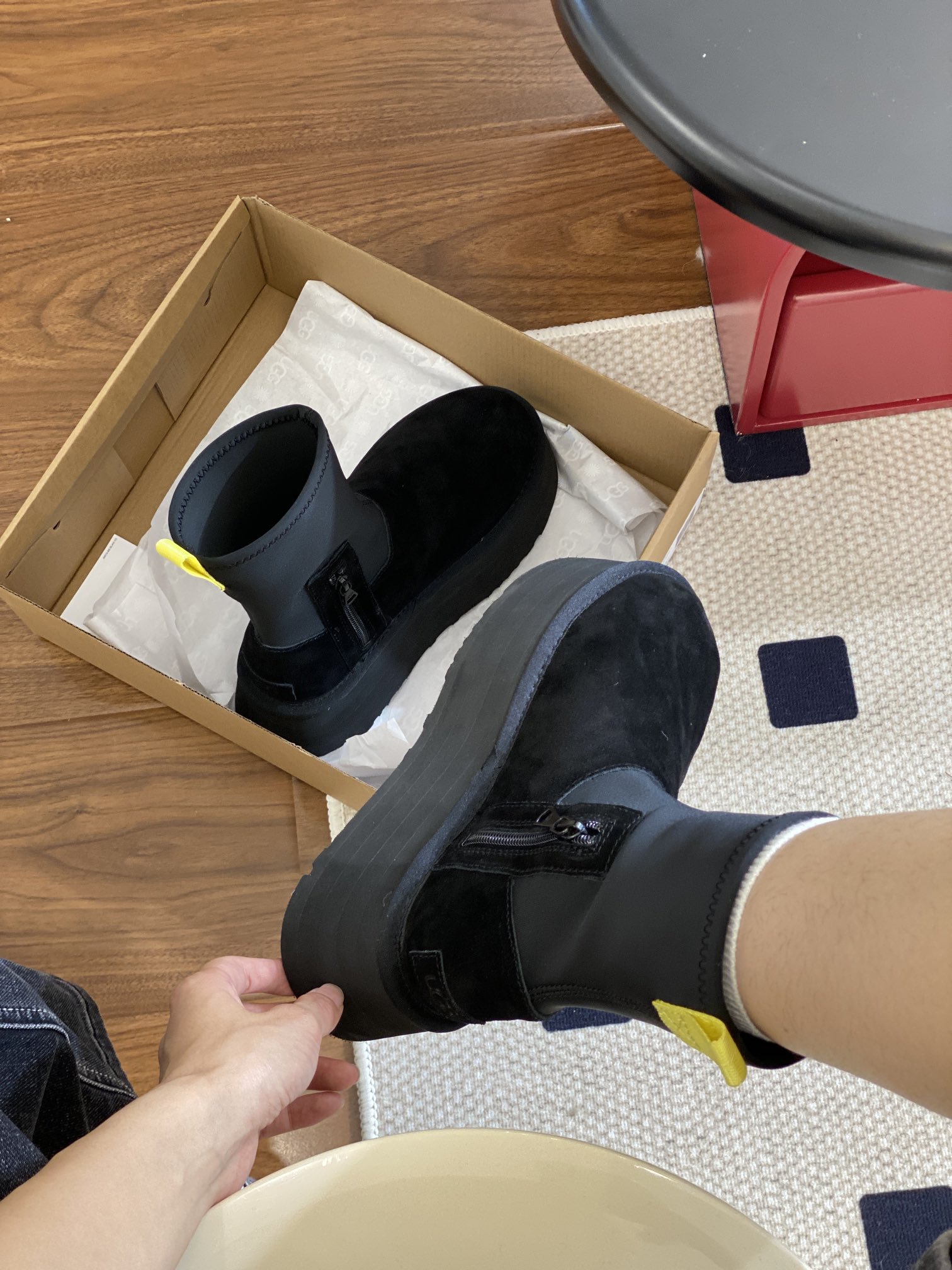 这款鞋子是AAAAA 1:1 质量 (非常棒). 使用了和原版一模一样的材料. 商标部分也保持了和UGG雪地靴一样. 图片拍摄是实物鞋子拍摄, 您所收到的实物保证和我们图片一模一样.