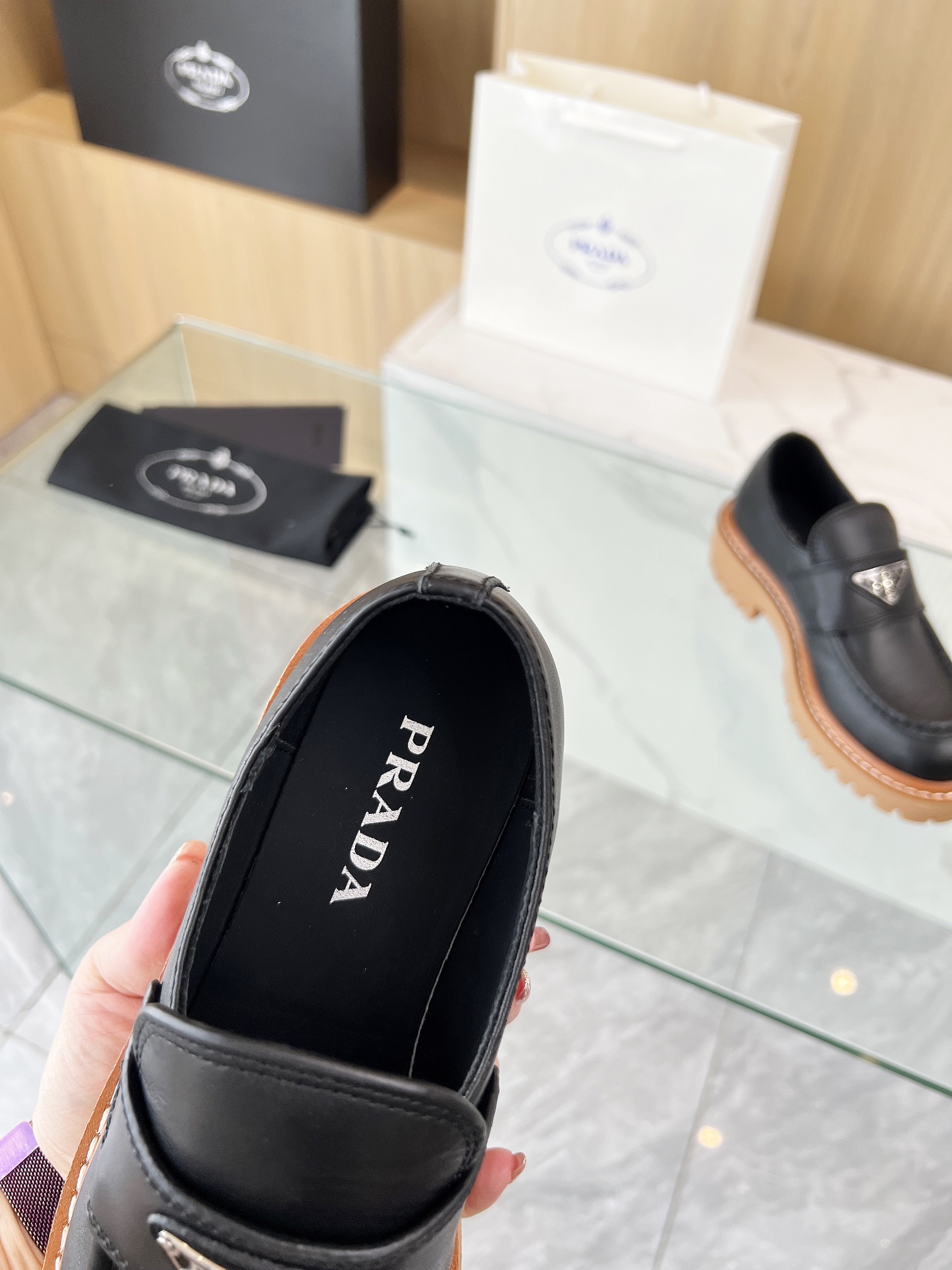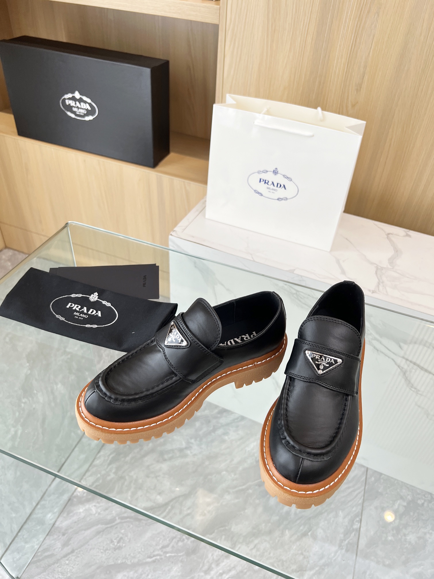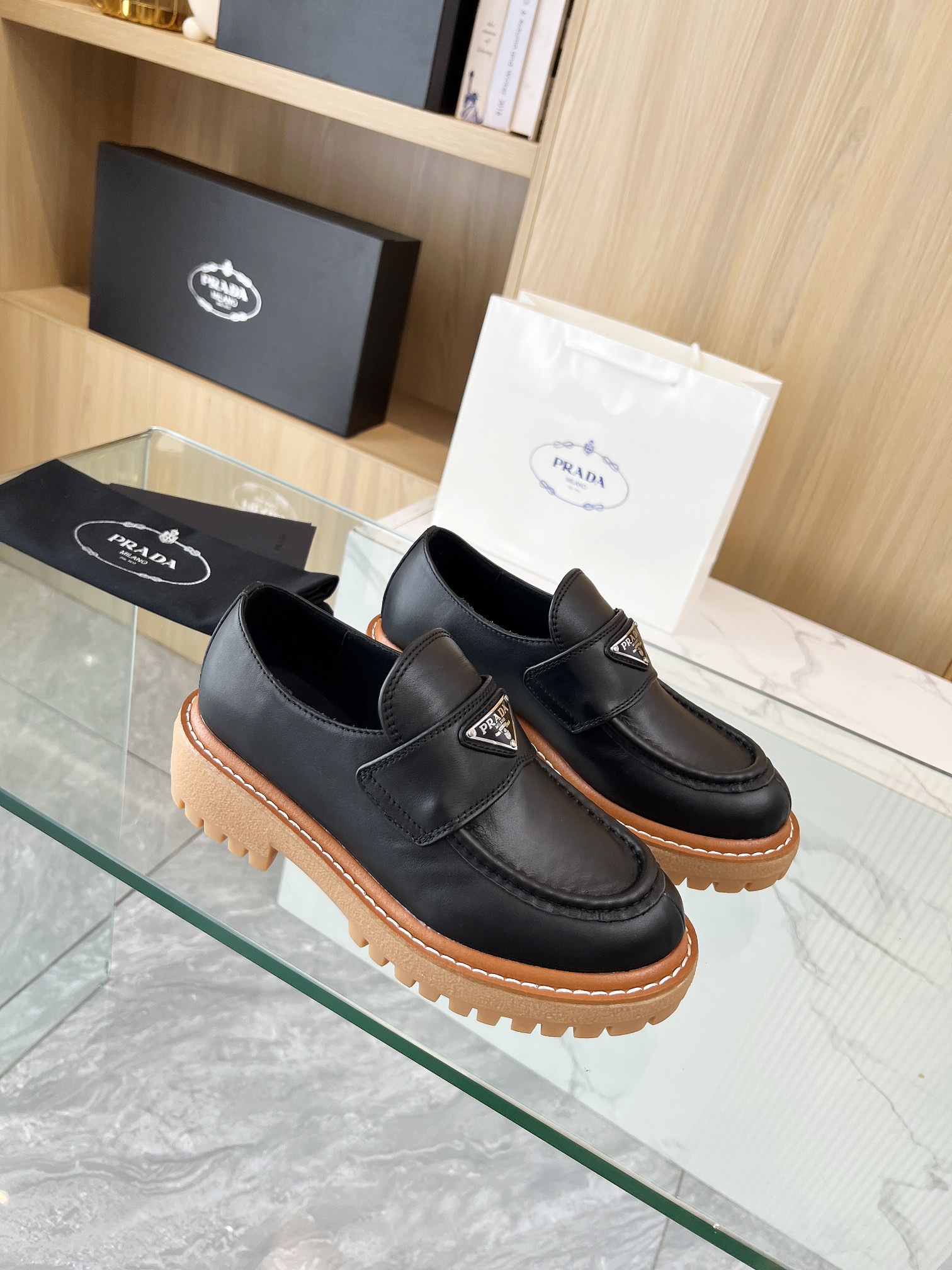 这款鞋子是AAAAA 1:1 质量 (非常棒). 使用了和原版一模一样的材料. 商标部分也保持了和普拉达/Prada一样. 图片拍摄是实物鞋子拍摄, 您所收到的实物保证和我们图片一模一样.