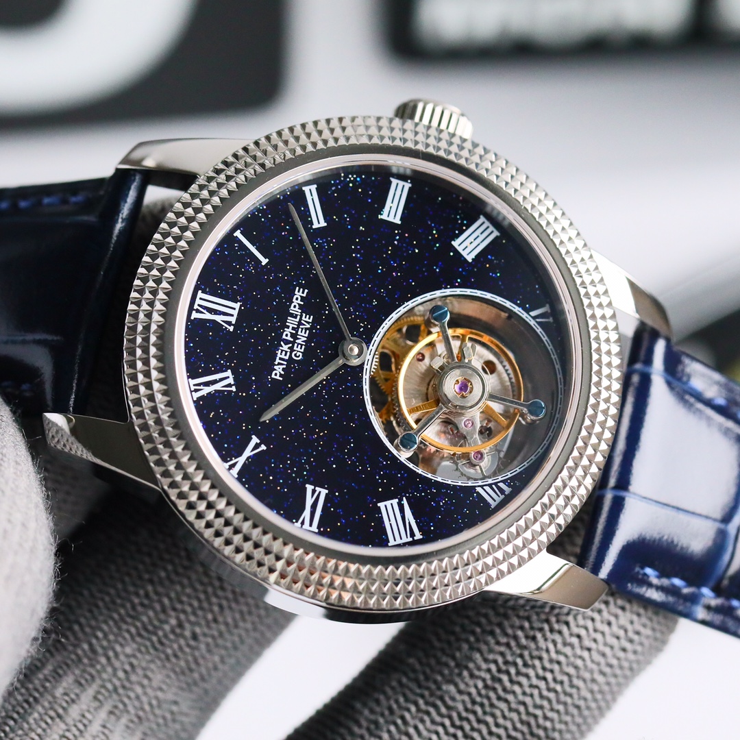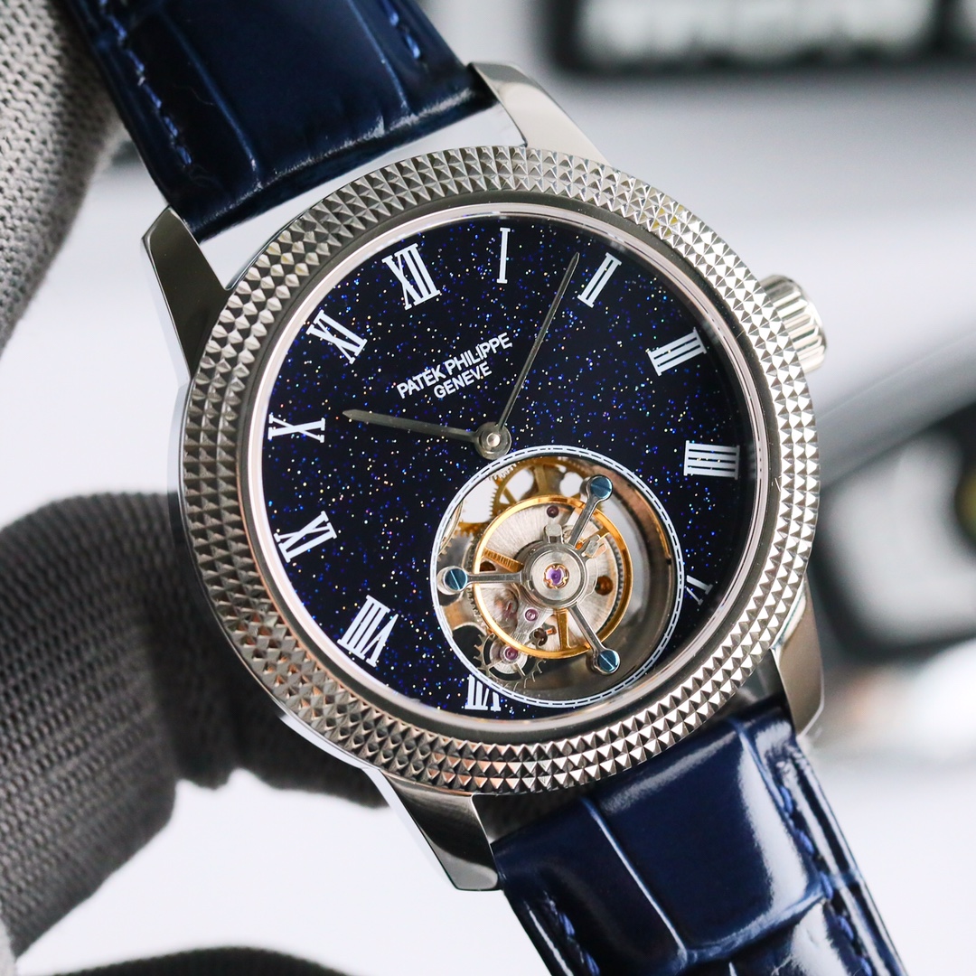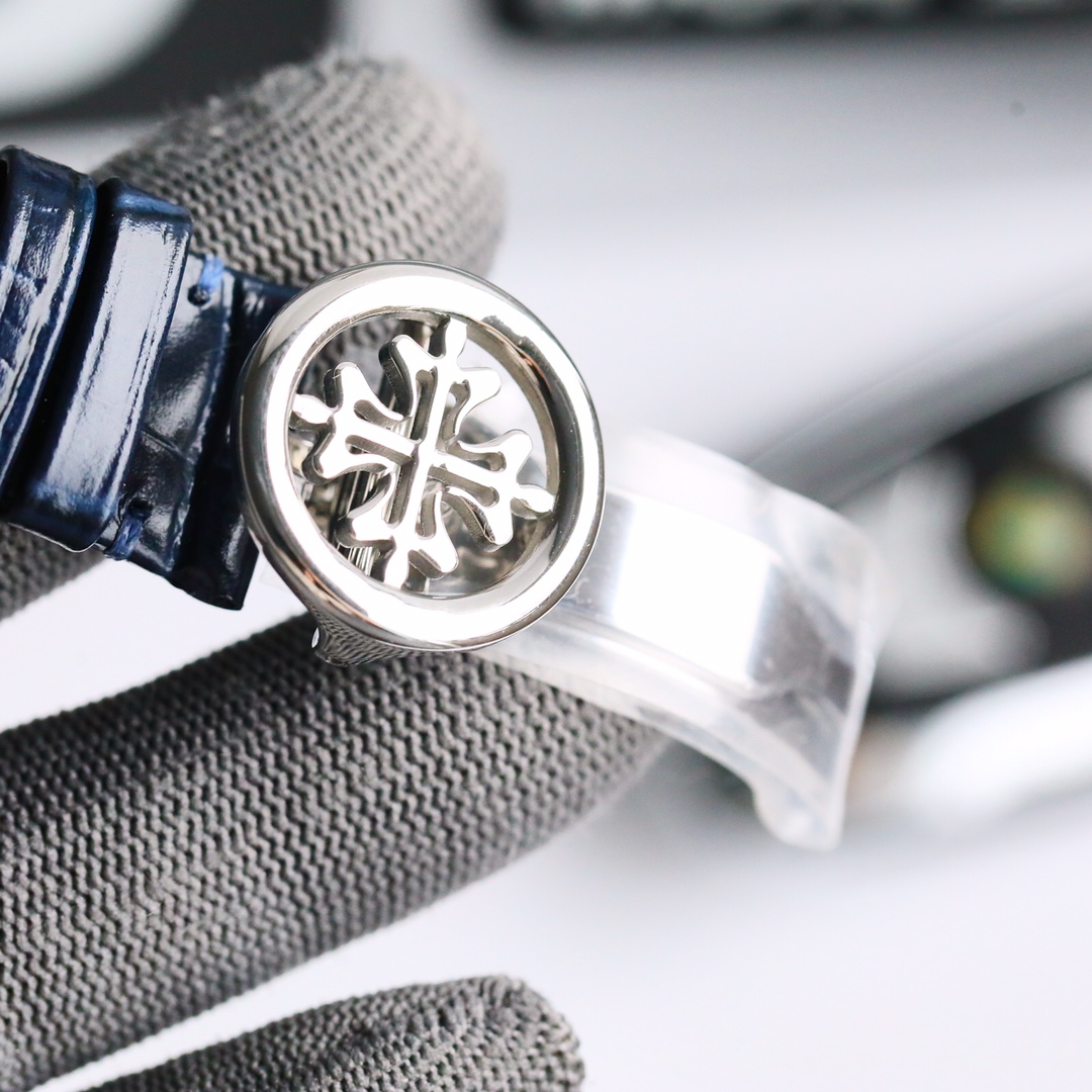 这款手表是AAAAA 1:1 质量 (非常棒). 使用了和原版一模一样的材料. 商标部分也保持了和百达翡丽/Patek Philippe一样. 图片拍摄是实物手表拍摄, 您所收到的实物保证和我们图片一模一样.