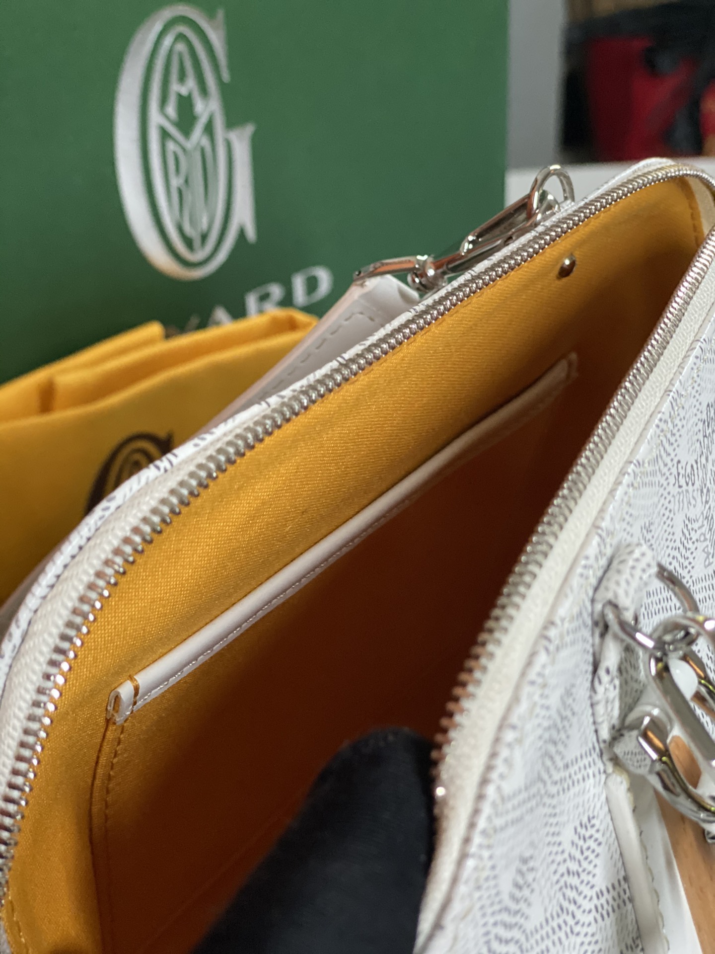 这款包包是AAAAA 1:1 质量 (非常棒). 使用了和原版一模一样的材料. 商标部分也保持了和Goyard一样. 图片拍摄是实物包包拍摄, 您所收到的实物保证和我们图片一模一样.