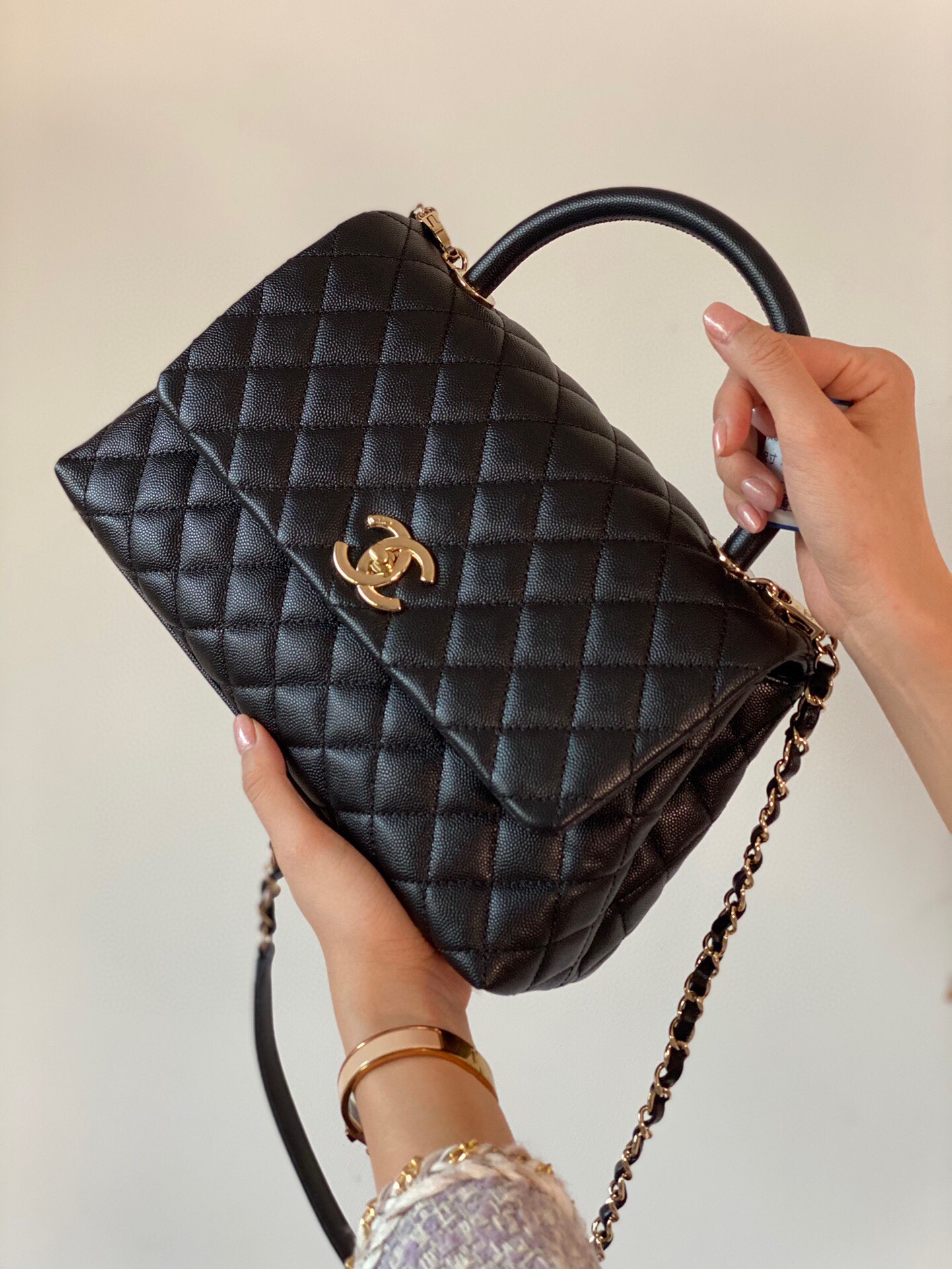 这款包包是AAAAA 1:1 质量 (非常棒). 使用了和原版一模一样的材料. 商标部分也保持了和香奈儿/Chanel一样. 图片拍摄是实物包包拍摄, 您所收到的实物保证和我们图片一模一样.