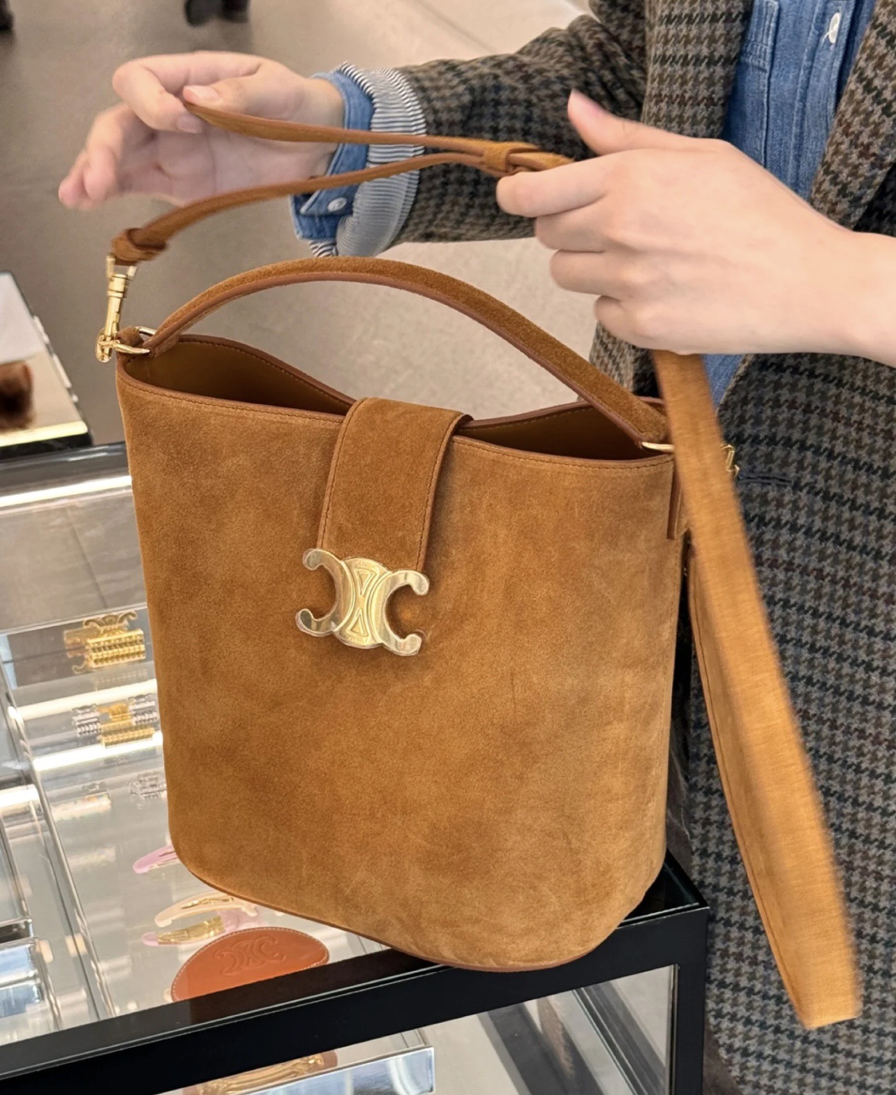 这款包包是AAAAA 1:1 质量 (非常棒). 使用了和原版一模一样的材料. 商标部分也保持了和思琳/Celine一样. 图片拍摄是实物包包拍摄, 您所收到的实物保证和我们图片一模一样.