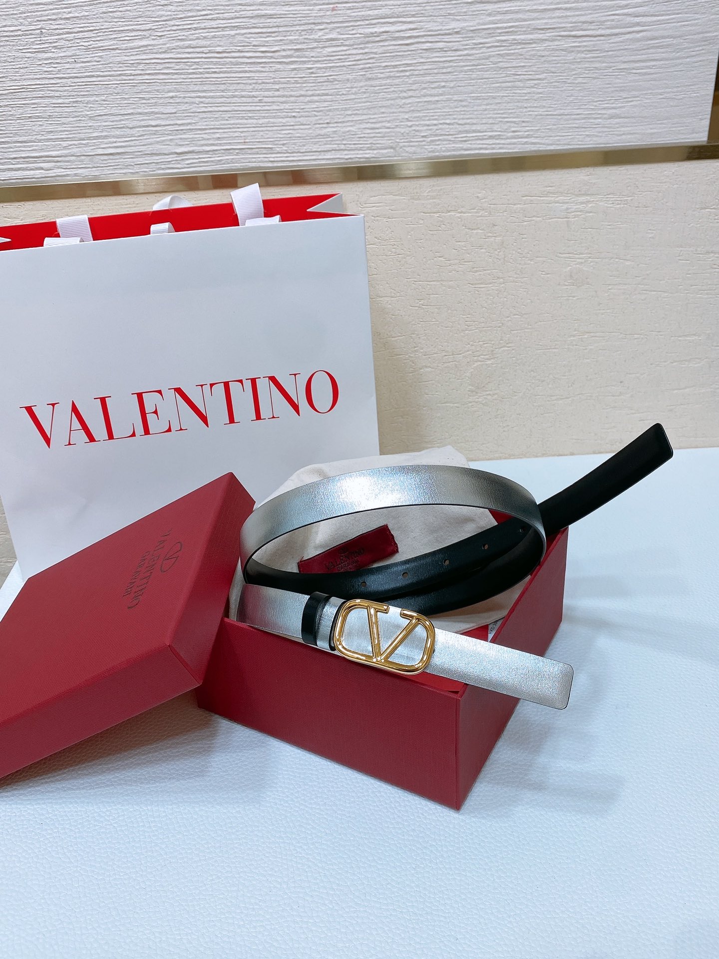 这款皮带是AAAAA 1:1 质量 (非常棒). 使用了和原版一模一样的材料. 商标部分也保持了和华伦天奴/Valentino一样. 图片拍摄是实物皮带拍摄, 您所收到的实物保证和我们图片一模一样.