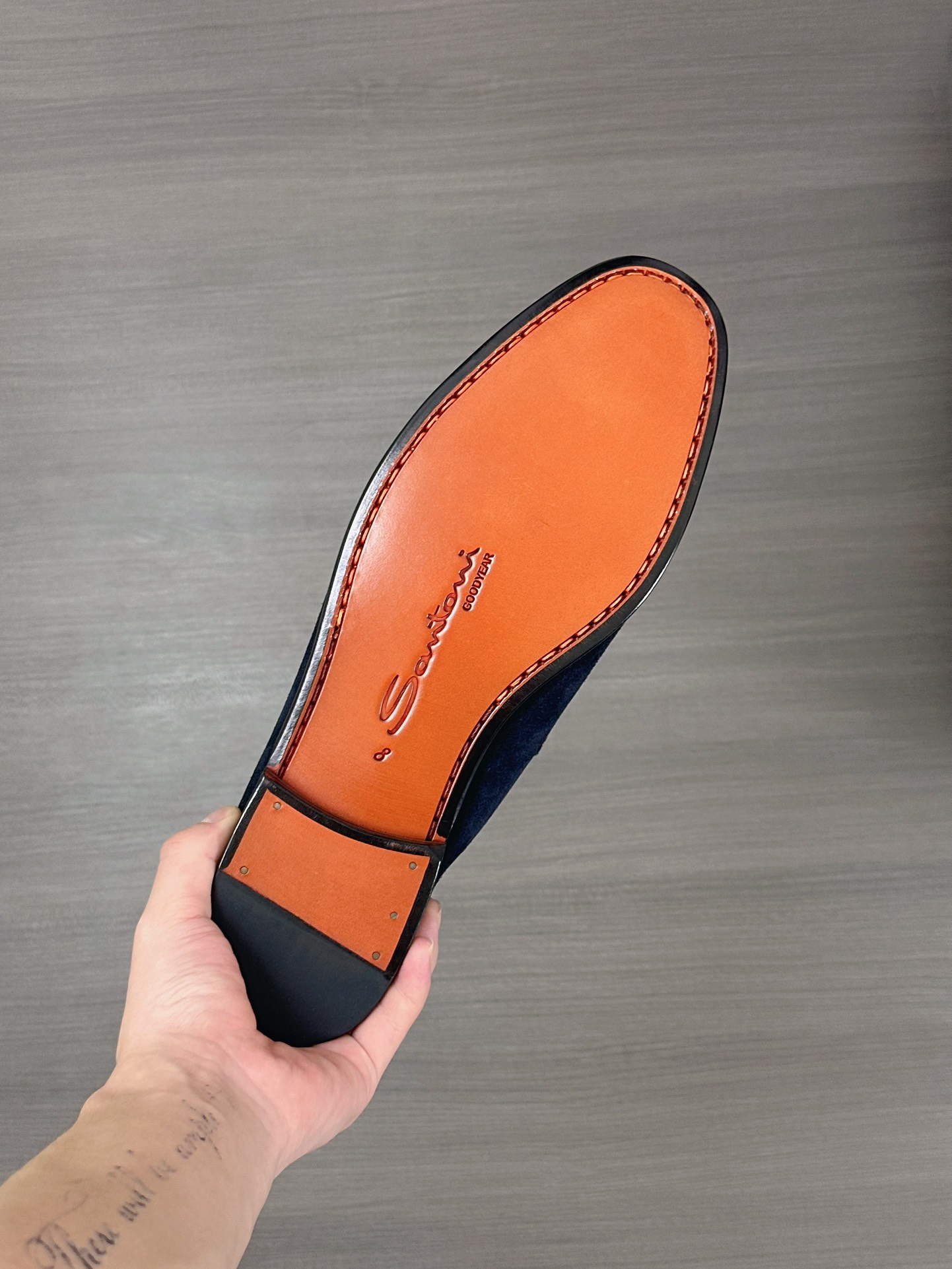 这款鞋子是AAAAA 1:1 质量 (非常棒). 使用了和原版一模一样的材料. 商标部分也保持了和Santoni一样. 图片拍摄是实物鞋子拍摄, 您所收到的实物保证和我们图片一模一样.